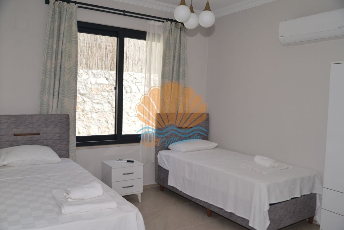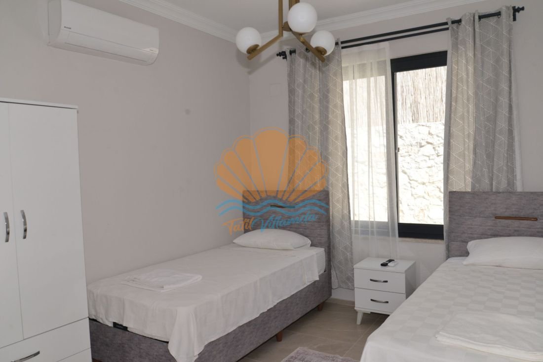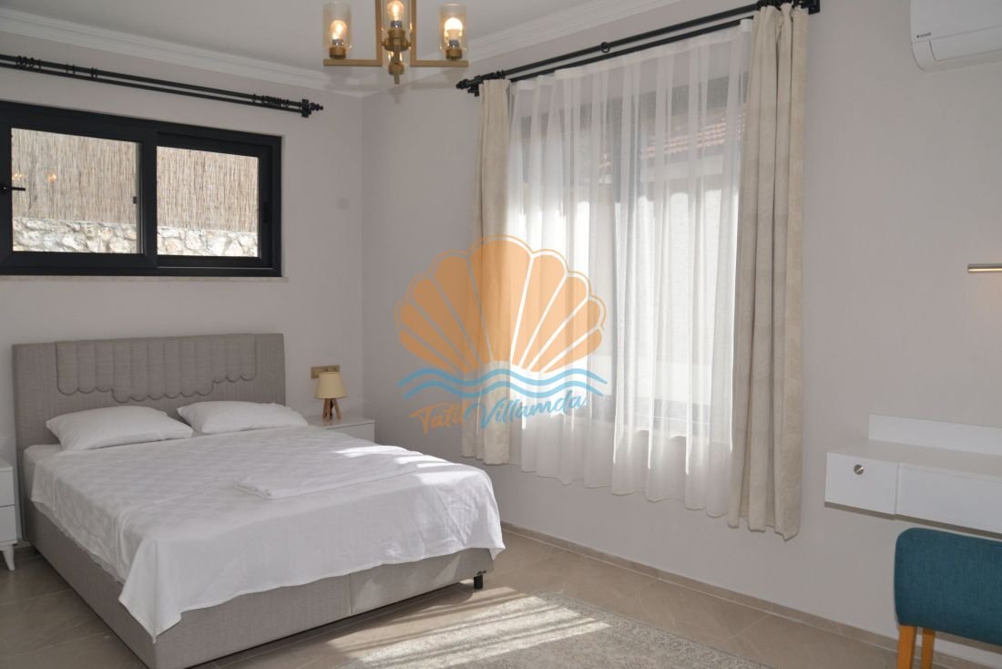 Villa Hüma, 3 yatak odasına sahip olup toplam 6 kişilik konaklama kapasitesi sunmaktadır. Tüm yatak odaları ebeveyn banyolu olarak tasarlanmıştır. Bu sayede her misafir kendi özel alanında konforlu bir konaklama deneyimi yaşar. Modern ve kullanışlı iç dizaynı, ferah yaşam alanları ve özenle seçilmiş eşyaları ile ev rahatlığını tatil ortamına taşır. Geniş salon ve donanımlı mutfak bölümü uzun süreli konaklamalar için de oldukça uygundur.