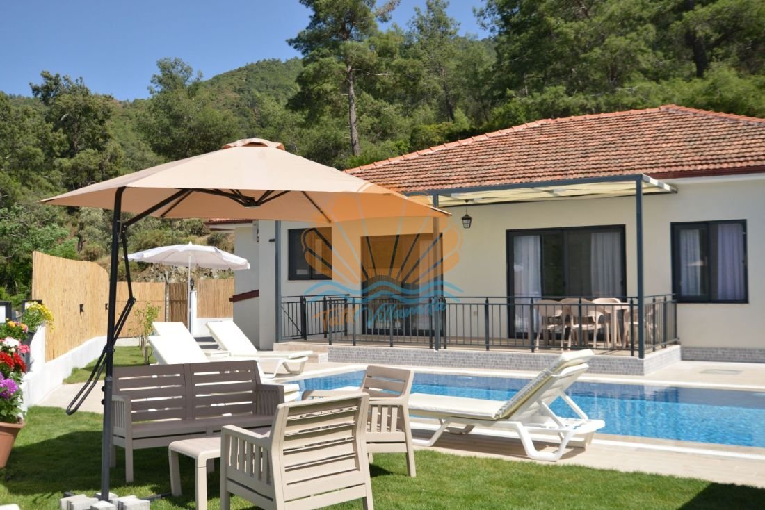 Villa bahçesinde geniş yüzme havuzu çevresinde şezlonglar ve şemsiyeler yer alır. Bahçe oturma grubu sayesinde açık havada keyifli kahvaltılar yapabilir, akşam saatlerinde dinlenme alanında sevdiklerinizle hoş sohbetler edebilirsiniz. Barbekü alanı ise tatilinize lezzetli akşam yemekleri eklemeniz için güzel bir alternatif sunar.