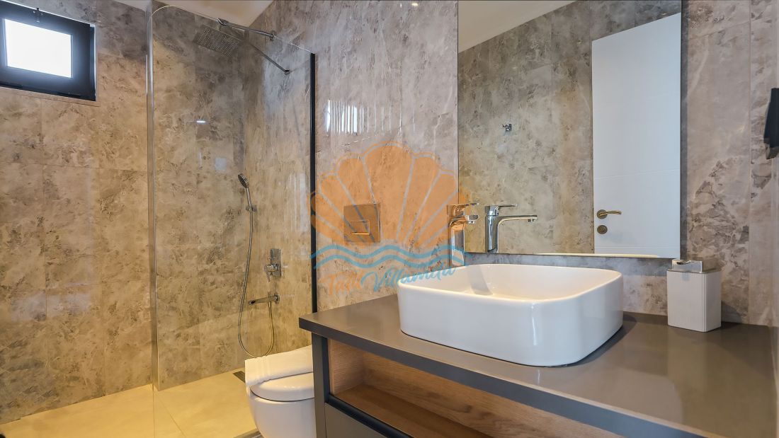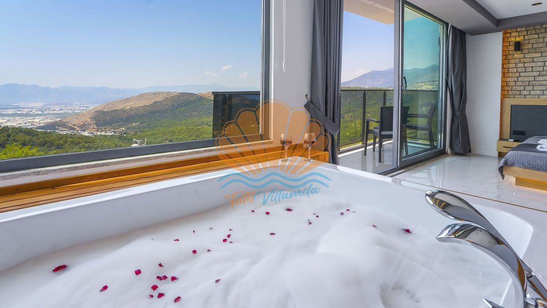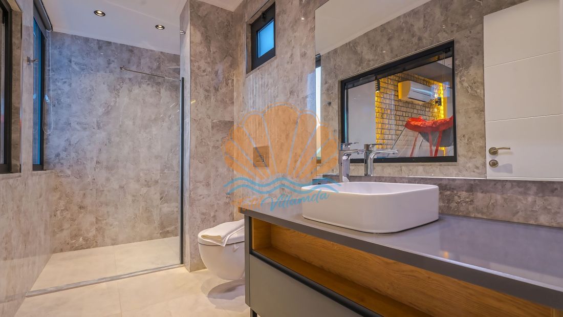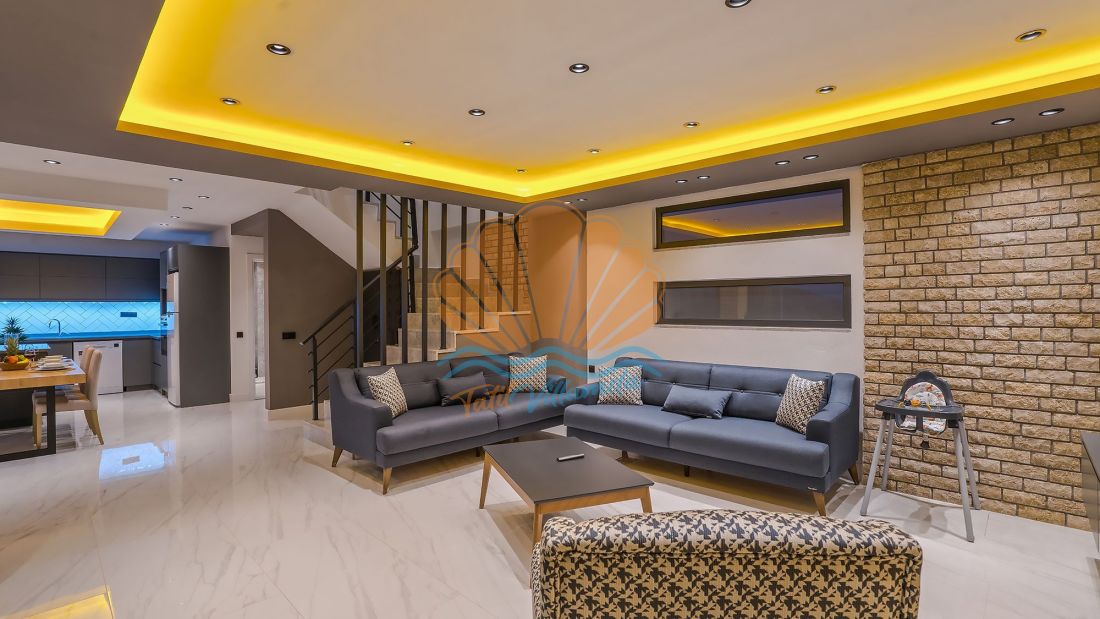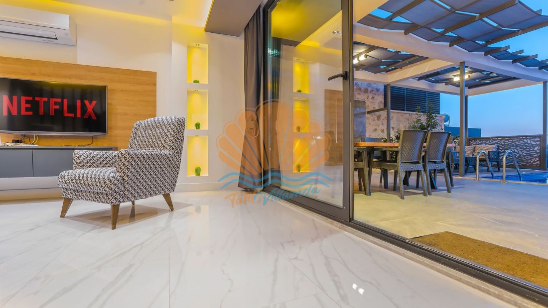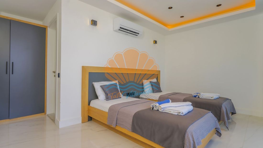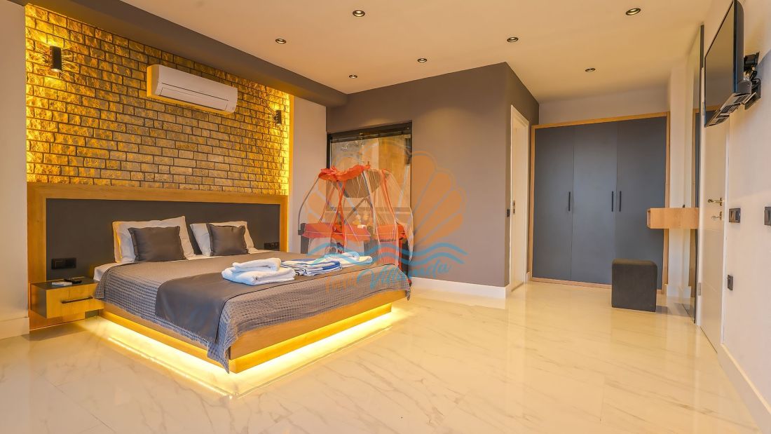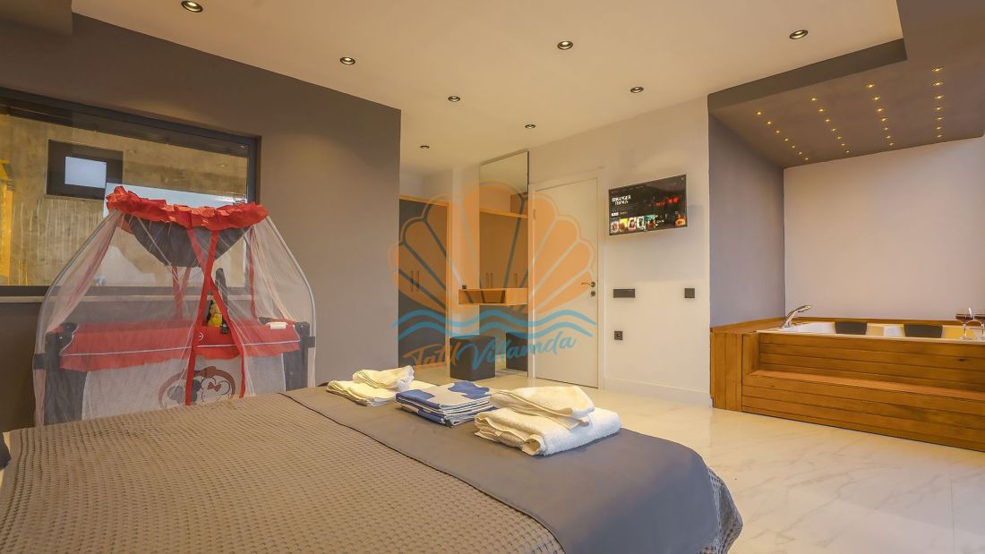 Villanın her iki yatak odası da ebeveyn banyolu olarak tasarlanmış olup, misafirlerin konforu ön planda tutulmuştur. Ayrıca villada bulunan jakuzi, günün yorgunluğunu atmanız ve tatilin keyfini doyasıya çıkarmanız için özel olarak düşünülmüştür. İç mekân tasarımında ultra lüks detaylara yer verilmiş, modern ve şık mobilyalarla donatılmıştır. Ferah yaşam alanı ve tam donanımlı mutfağı sayesinde evinizin rahatlığını aratmaz.