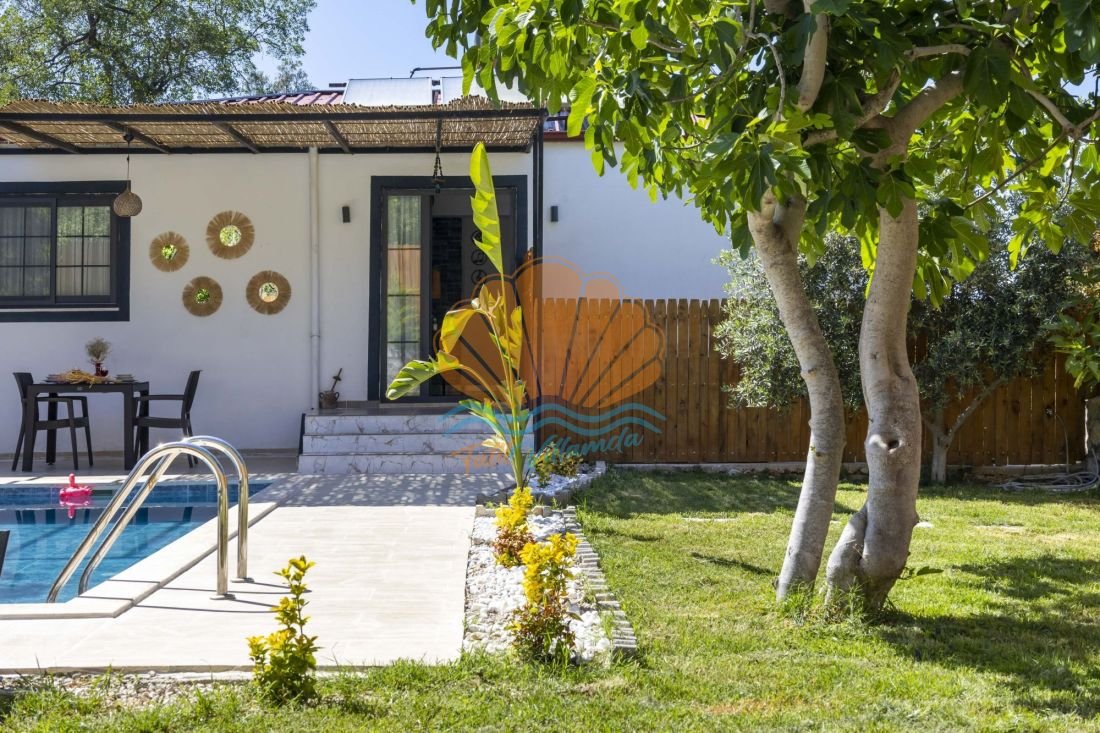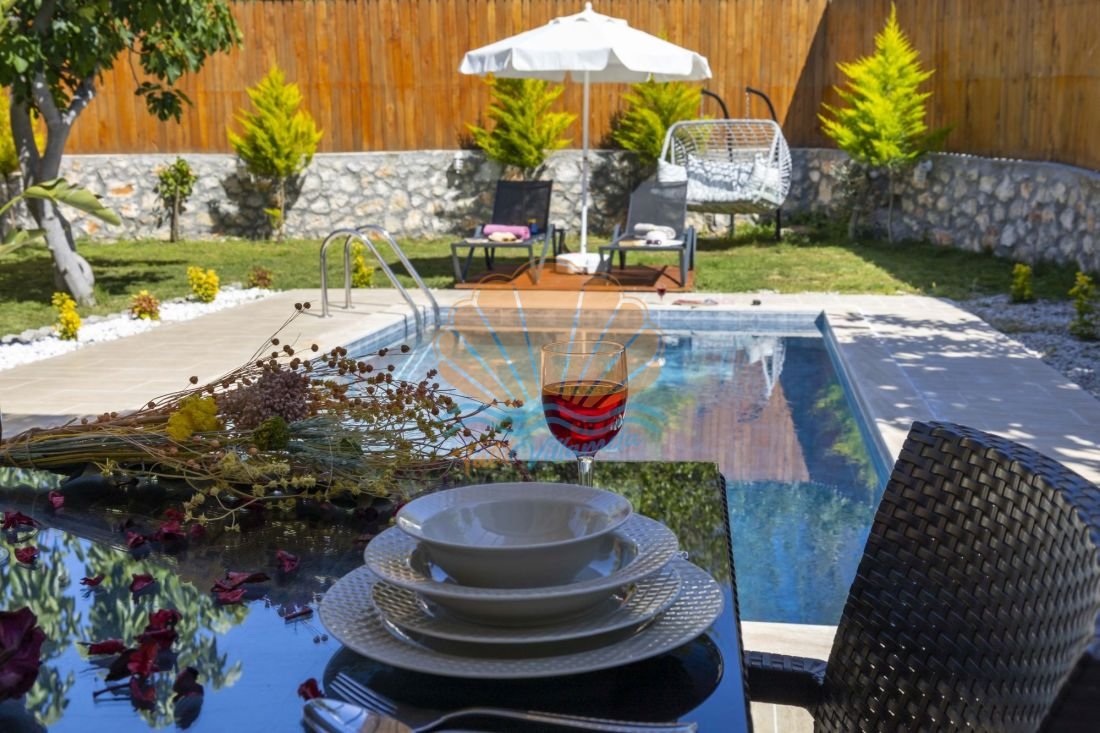 Villanın özel yüzme havuzu tamamen korunaklı olup dışarıdan görünmemektedir. Havuz başında yer alan şezlonglar, şemsiye, salıncak ve rahat oturma alanları sayesinde gün boyu keyifli vakit geçirebilirsiniz. Ayrıca bahçede bulunan masa takımı ve barbekü alanı, akşam yemeklerinizi doğa eşliğinde keyifle geçirmenize olanak sağlar.