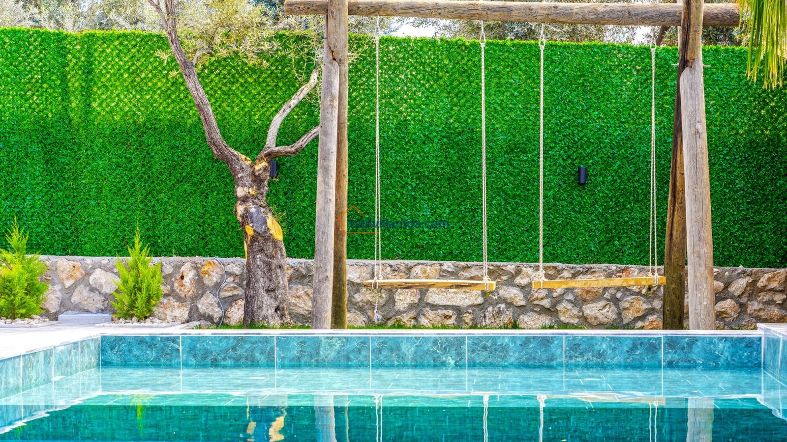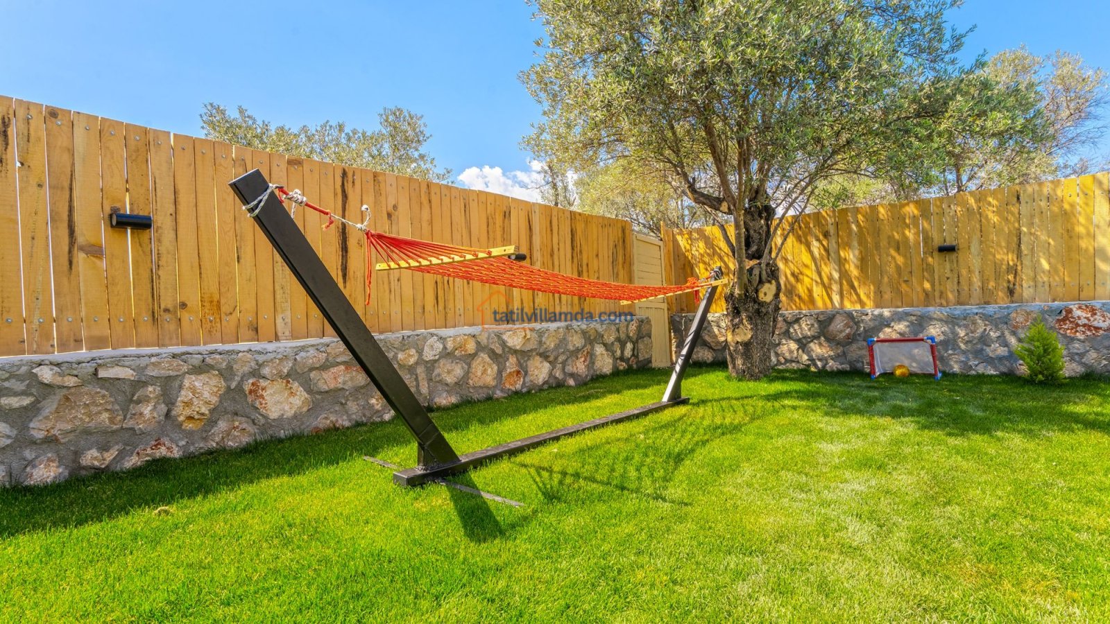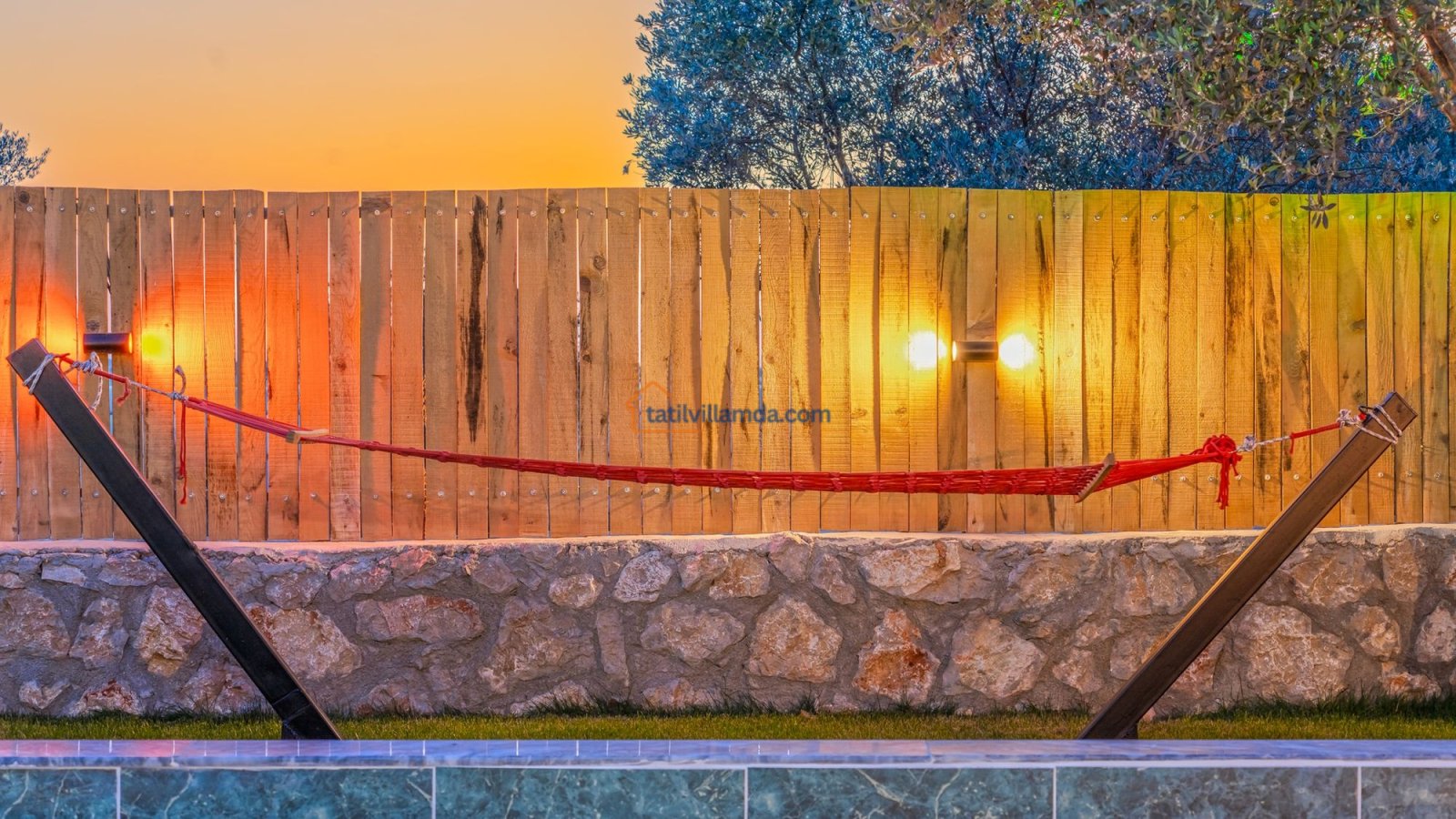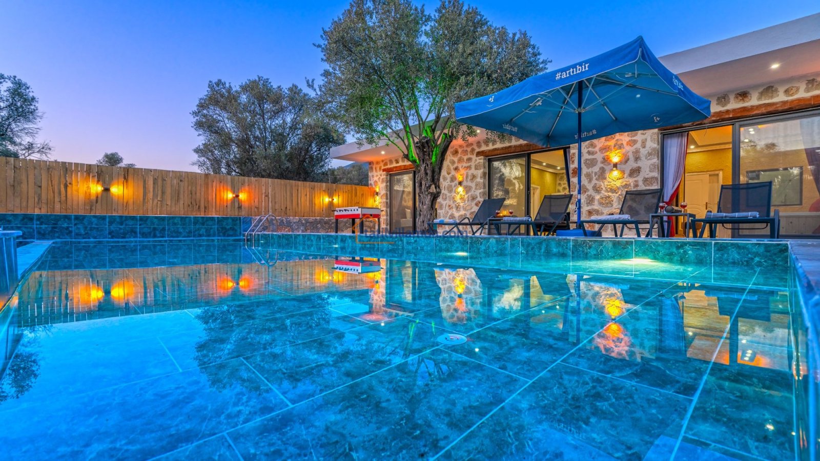 Villa Kaşlı 2’nin havuz başında şezlonglar, şemsiye, salıncak ve langırt yer almakta olup gün boyu eğlenceli ve dinlendirici vakit geçirmenizi sağlar. Bahçe alanında ise hamak, barbekü, yemek masası, çardaklı bahçe oturma grubu ve çocuklar için mini top sahası bulunmaktadır. Bu özellikleriyle hem yetişkinler hem de çocuklar için ayrı ayrı keyifli alanlar sunar. Akşamları barbekü keyfi yapabilir, gündüzleri ise havuzun ve bahçenin tadını doyasıya çıkarabilirsiniz.