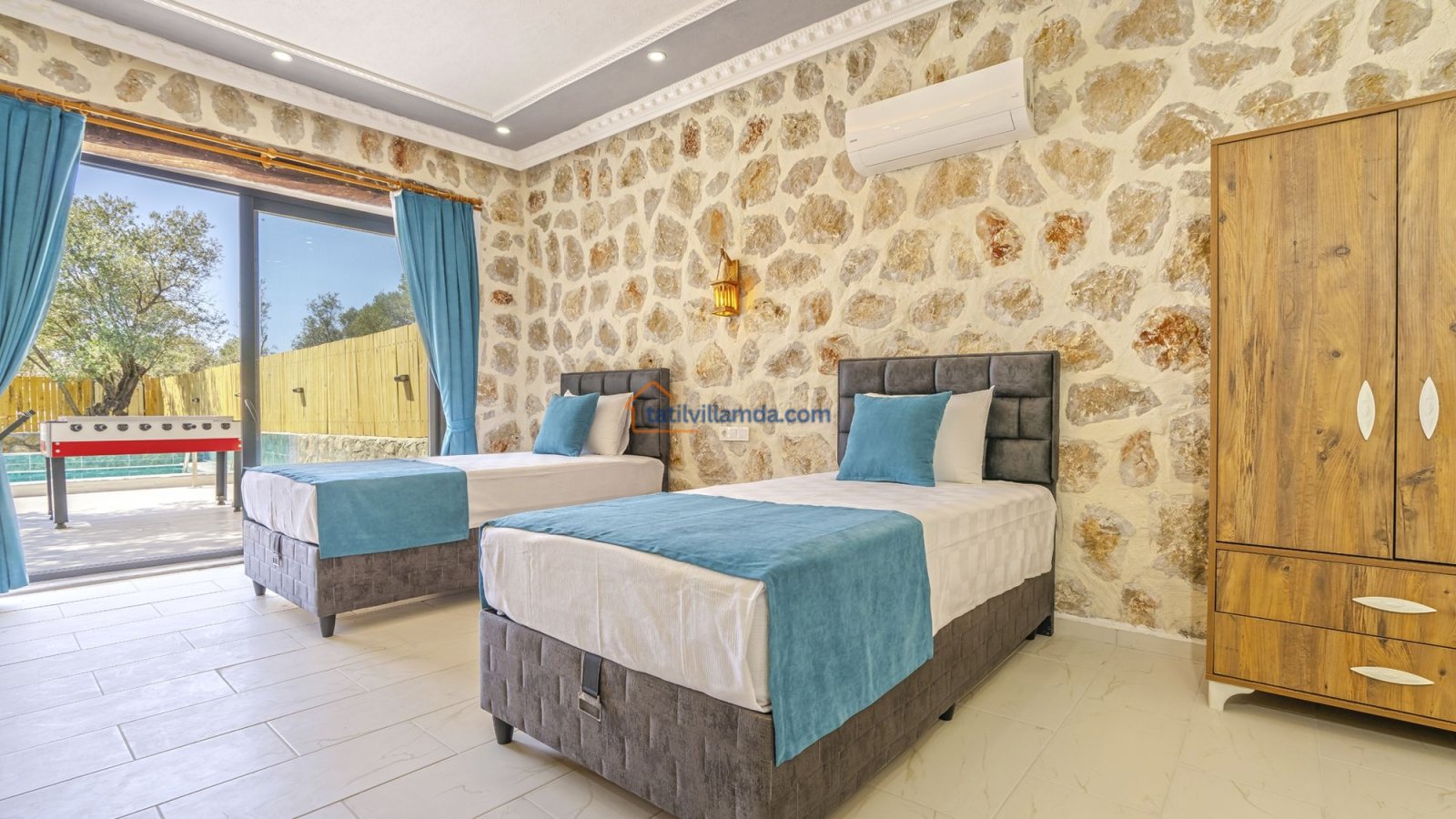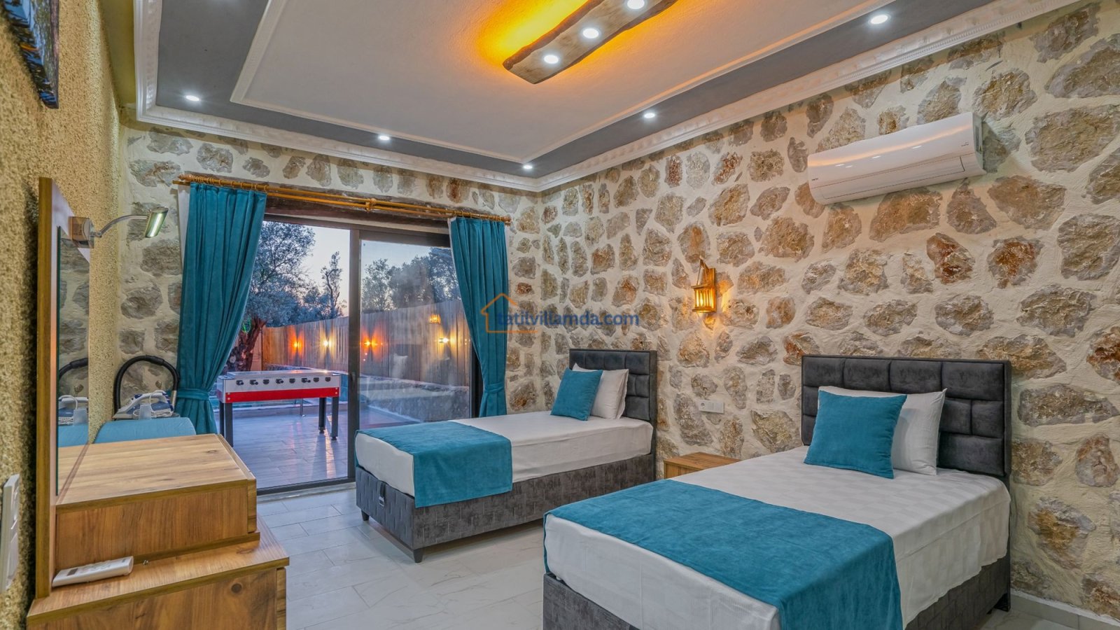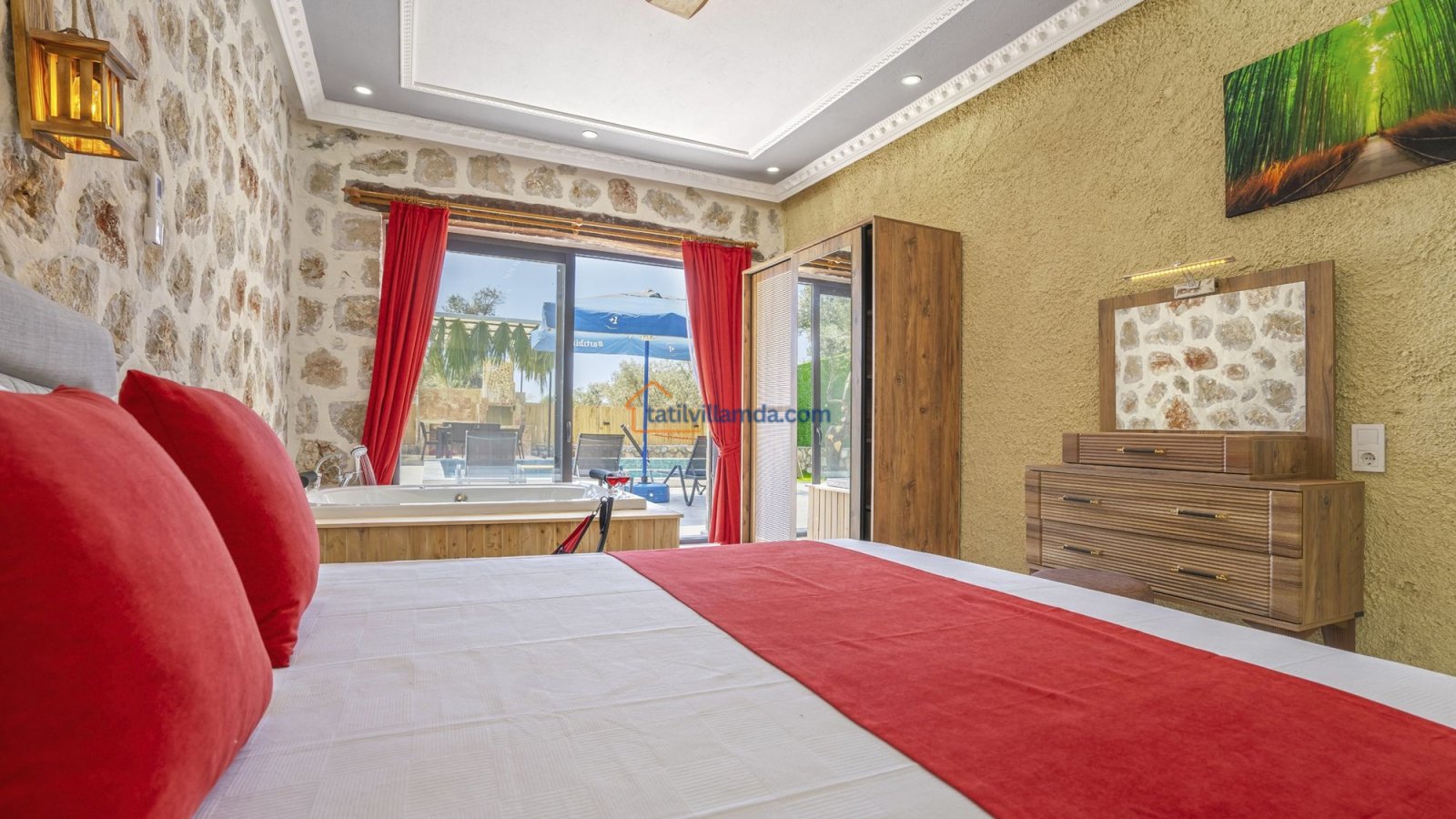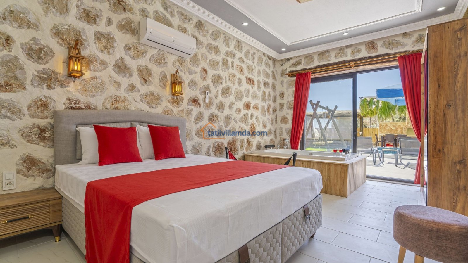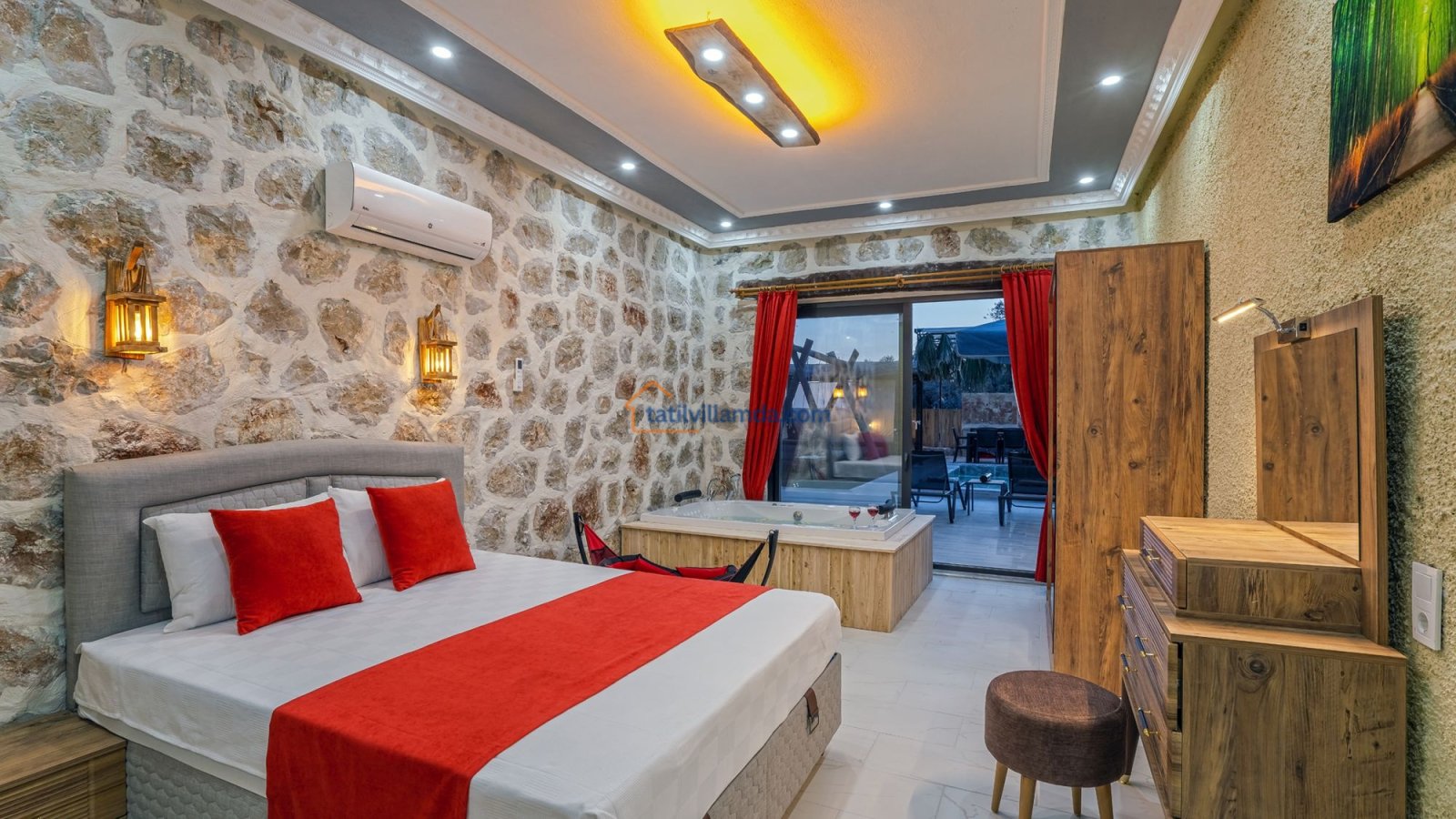 Kalkan’ın doğayla iç içe, huzurlu Çayköy mevkiinde yer alan, konfor ve mahremiyeti bir arada sunan özel bir tatil villasıdır. Korunaklı ve geniş yüzme havuzu ile dışarıdan görünmeden rahatça tatil yapma imkânı sunarken, geniş bahçesi sayesinde özellikle aileler ve arkadaş grupları için ideal bir ortam sağlar. Toplamda 2 yatak odasına sahip olan villamız, 4 kişilik konaklama kapasitesiyle hem çekirdek aileler hem de balayı çiftleri için uygundur. Her iki yatak odasında da ebeveyn banyosu bulunmakta olup, bir odada bulunan jakuzi tatilinize ekstra konfor ve keyif katar.