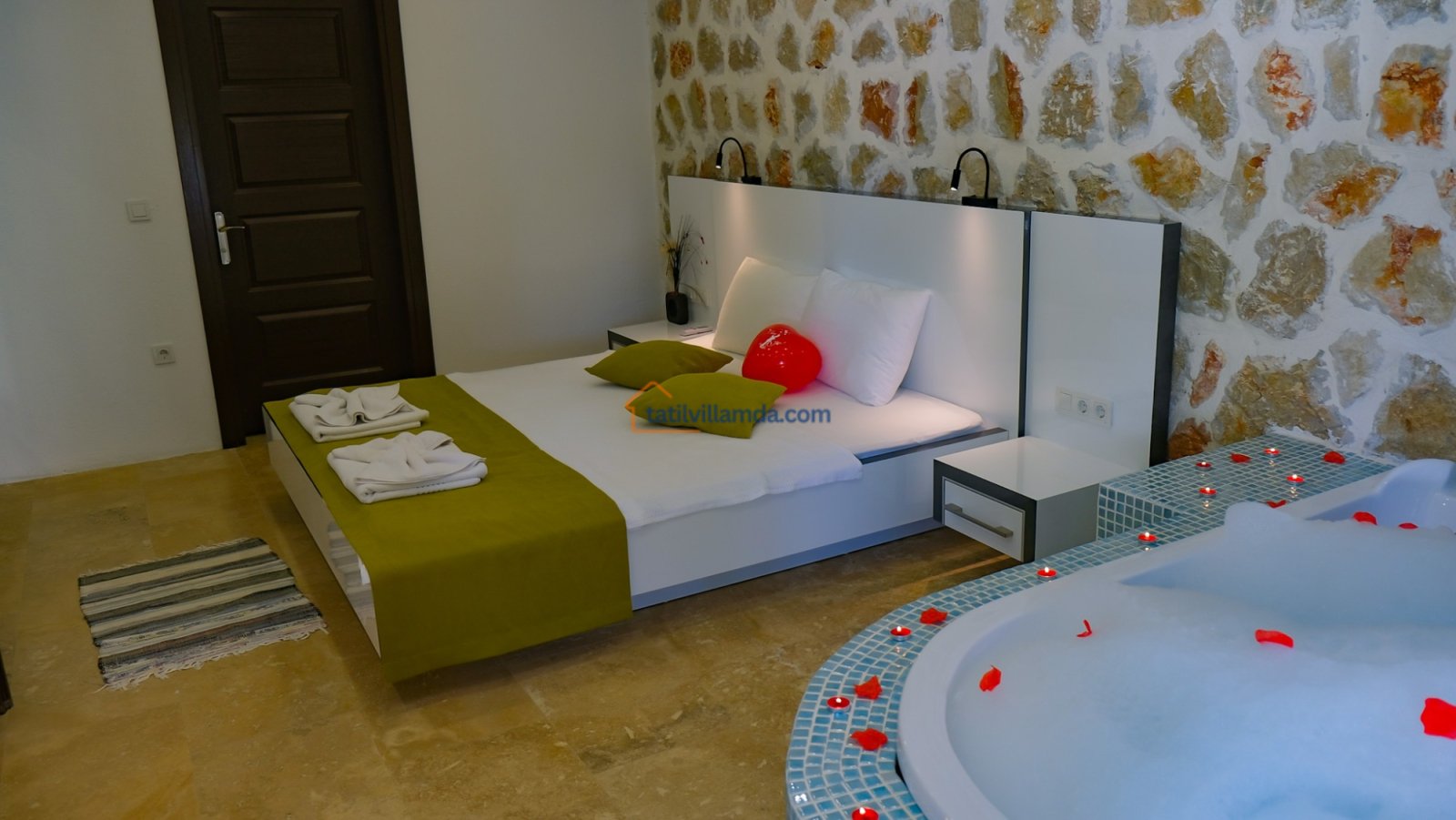 Toplam 4 yatak odası ile 8 kişilik konaklama kapasitesine sahip olan Villa Köknar Hira, hem geniş aileler hem de arkadaş grupları için ideal bir seçenektir. Yatak odalarının ikisi ebeveyn banyolu olup, diğer iki yatak odası ortak banyo ve tuvaleti kullanmaktadır. Odalardan birinde yer alan jakuzi, tatilinize keyif ve rahatlama katan özel bir detay sunar. Konforlu yataklar ve ferah yaşam alanları, misafirlerine ev sıcaklığında bir konaklama deneyimi yaşatır.