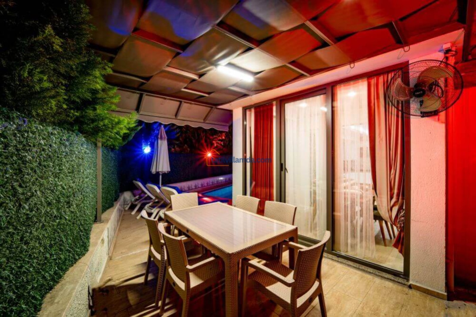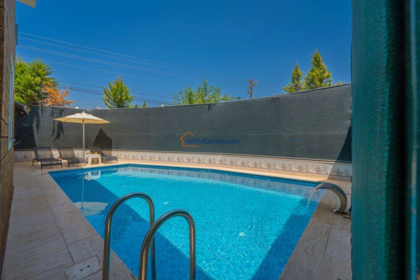 Villanın en dikkat çekici özelliklerinden biri korunaklı özel havuzu olmasıdır. Bu sayede dışarıdan görünmeyen havuzda rahatça yüzebilir, güneşin tadını çıkarabilirsiniz. Ayrıca küçük misafirler için özel olarak tasarlanmış bir çocuk havuzu da mevcuttur. Aileler için oldukça ideal bir ortam sunar.