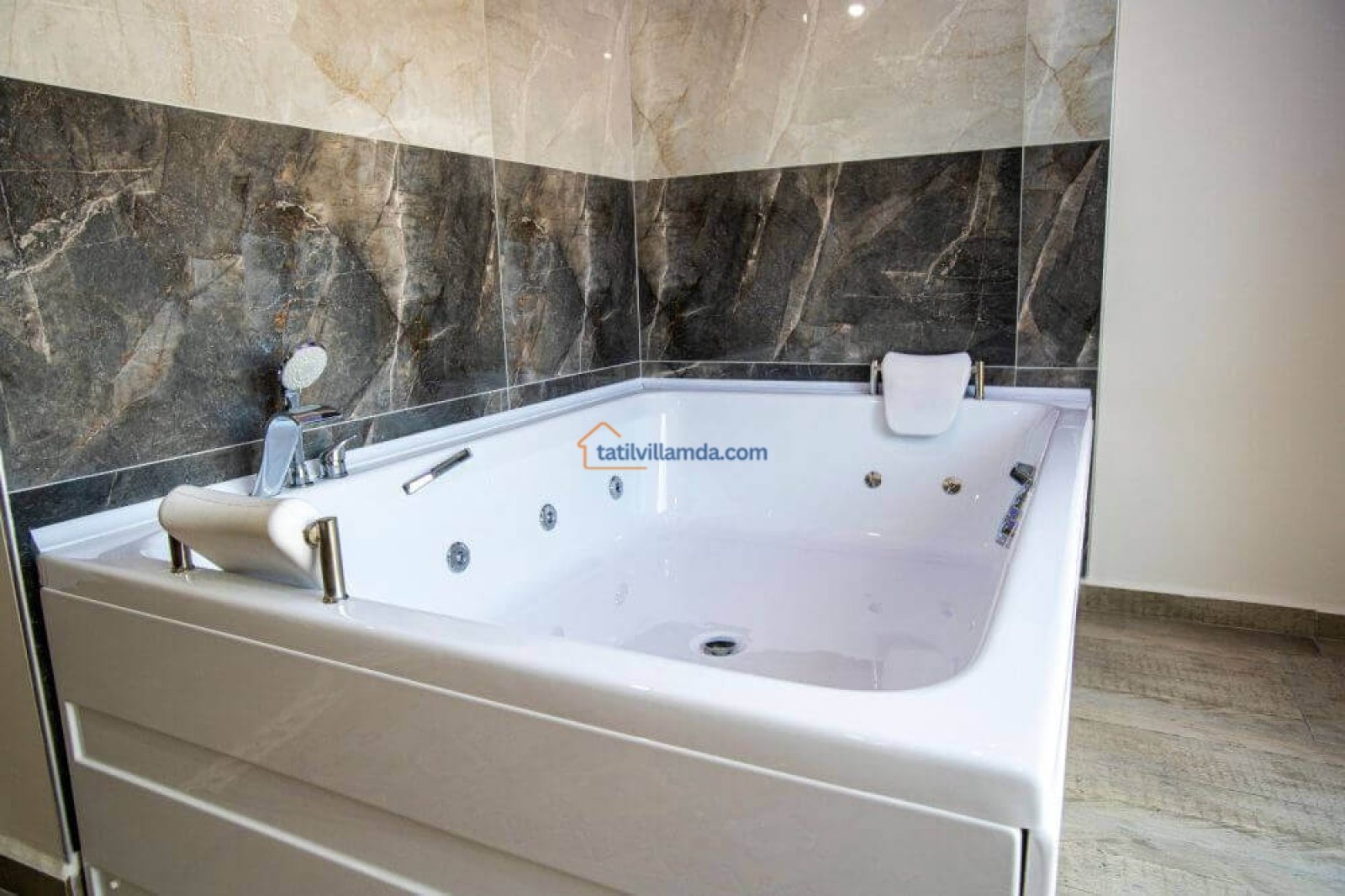 Villa Konfor Doğu, ünlü Çalış Plajı’na sadece 5 dakikalık mesafededir. Plajda gün batımını izleyebilir, deniz kenarında yürüyüş yapabilirsiniz. Villada bulunan jakuzi, tatilinize lüks ve keyif katar. Üç odalı geniş yapısıyla, hem aileler hem de arkadaş grupları için uygundur.