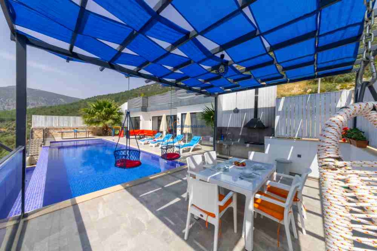 Villa Kont, Kalkan’ın Üzümlü mevkiinde yer alan doğayla iç içe, huzurlu bir tatil villasıdır. Özel ve korunaklı havuzu sayesinde mahremiyete önem veren misafirler için idealdir. Muhteşem doğa ve deniz manzarasına sahip olan villa, konforlu bir tatil geçirmek isteyenler için özenle tasarlanmıştır.