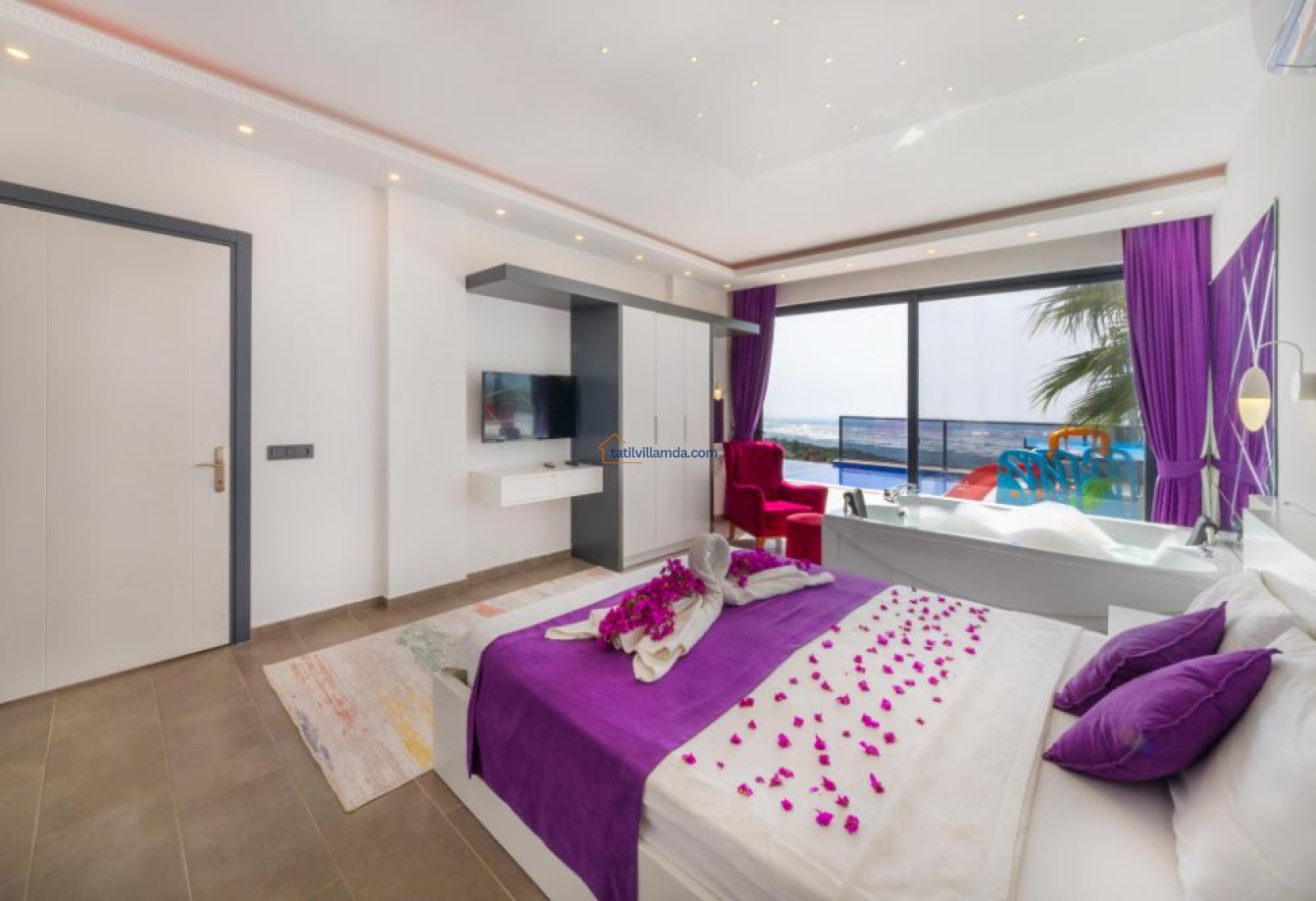 Villa, 2 yatak odası ve 1 salondan oluşmakta olup toplamda 5 kişilik konaklama kapasitesine sahiptir. Odalardan biri çift kişilik yatak içerirken, diğerinde 3 adet tek kişilik yatak bulunmaktadır. Modern ve şık tasarımıyla dikkat çeken villada ayrıca konforlu bir jakuzi bulunmaktadır.