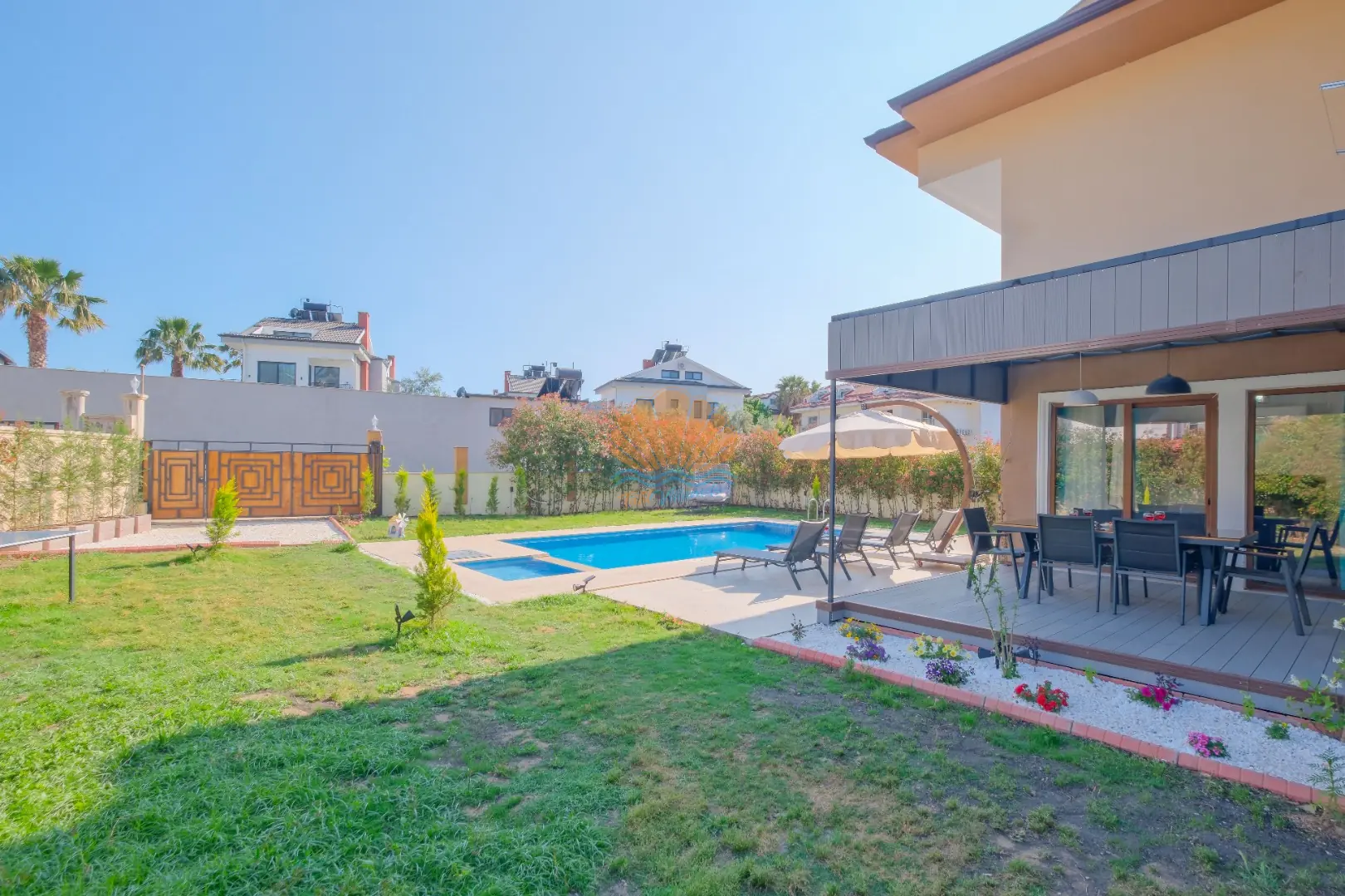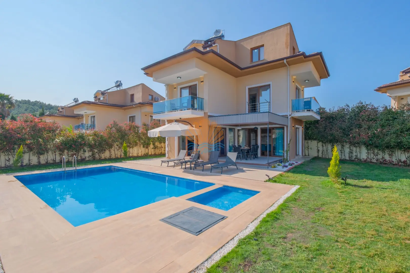 Fethiye’nin en gözde tatil bölgelerinden Ölüdeniz Hisarönü mevkiinde konumlanan, konforlu ve keyifli bir tatil için özenle hazırlanmış özel bir villadır. Geniş ve tamamen size ait yüzme havuzu ile misafirlerine huzurlu bir konaklama deneyimi sunan villamız, özellikle aileler ve arkadaş grupları için ideal bir seçenektir. Ayrıca çocuklu aileler için düşünülmüş ayrı çocuk havuzu sayesinde minik misafirler de güvenle tatilin tadını çıkarabilir.