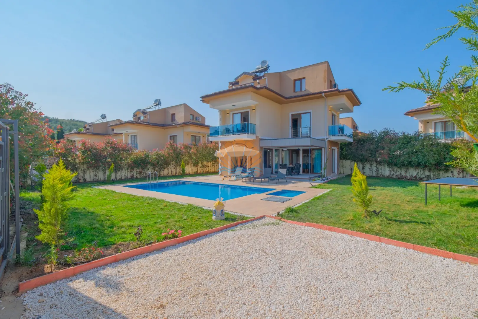 Villamızın hemen yanında aynı özelliklere sahip 7 adet villa daha bulunmaktadır. Bu özelliği sayesinde kalabalık aileler, arkadaş grupları veya özel organizasyonlar için birden fazla villa kiralama imkânı sunarak birlikte ama ayrı konaklama avantajı sağlar. Villa Lavanta 2, huzurlu, eğlenceli ve unutulmaz bir tatil için sizleri bekliyor.