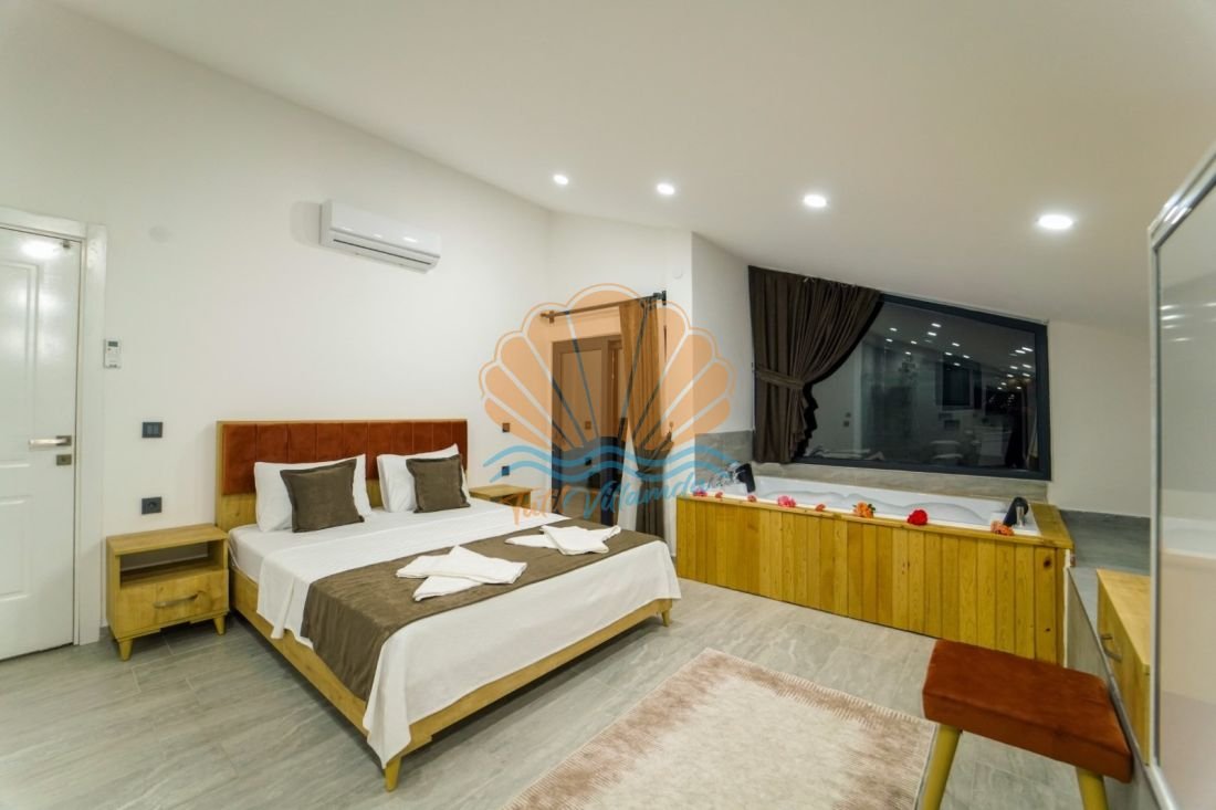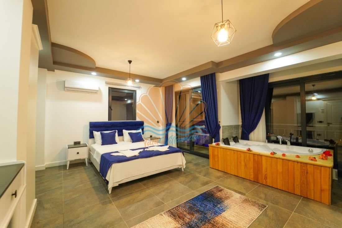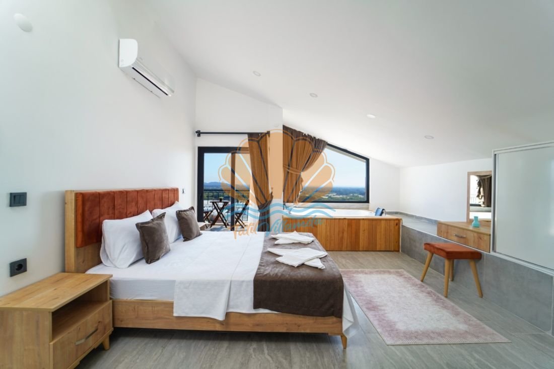 Doğanın huzur veren atmosferiyle öne çıkan Seydikemer Kumluova mevkiinde konumlanmış, lüks detayları ve geniş yaşam alanlarıyla dikkat çeken özel bir tatil villasıdır. Toplam 4 yatak odasına sahip olan villa, 8 kişilik konaklama kapasitesiyle kalabalık aileler ve arkadaş grupları için ideal bir seçenek sunmaktadır. Tüm yatak odalarının ebeveyn banyolu olması, misafirlere konforlu ve ayrıcalıklı bir konaklama deneyimi sağlar. Ayrıca 3 yatak odasında bulunan jakuziler, günün yorgunluğunu atmanız için keyifli bir ortam sunar.