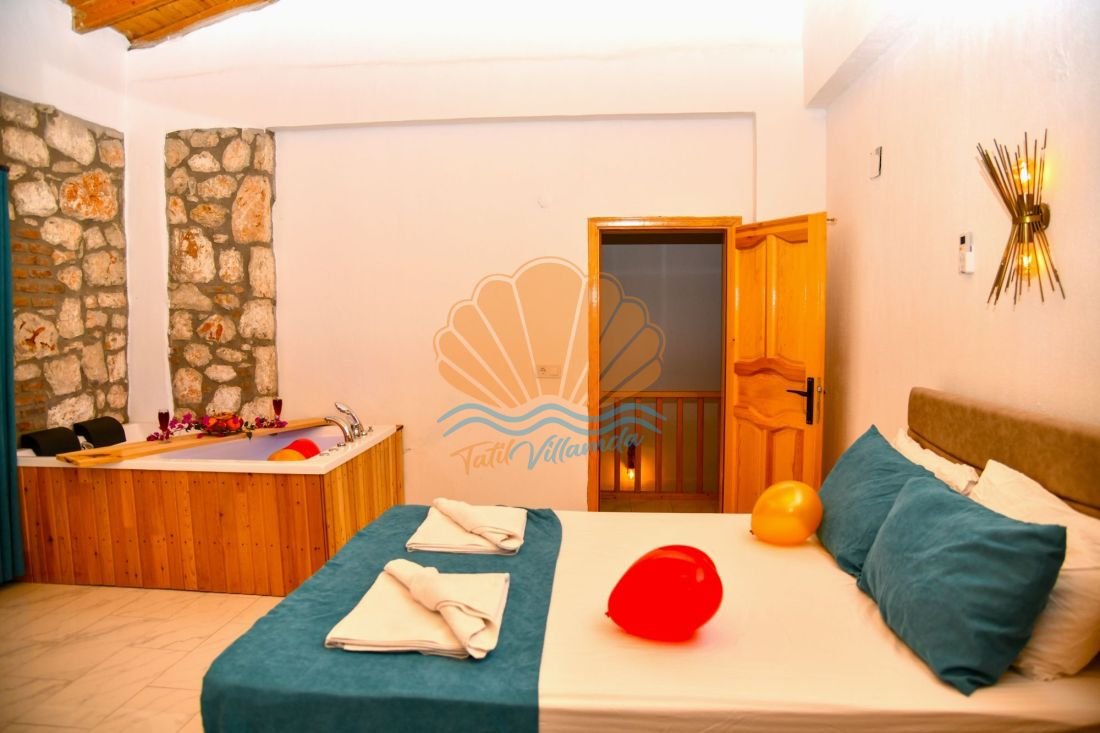 Toplam 2 yatak odasına sahip olan Villa Letolikya 2, 4 kişilik konaklama kapasitesi ile rahat ve konforlu bir kullanım sunar. Modern ve şık şekilde dekore edilmiş odalarda konfor ön planda tutulmuştur. Villada bulunan jakuzi, tatilinize ekstra keyif ve rahatlama katar. Günün yorgunluğunu jakuzide atabilir, sakinliğin tadını çıkarabilirsiniz.