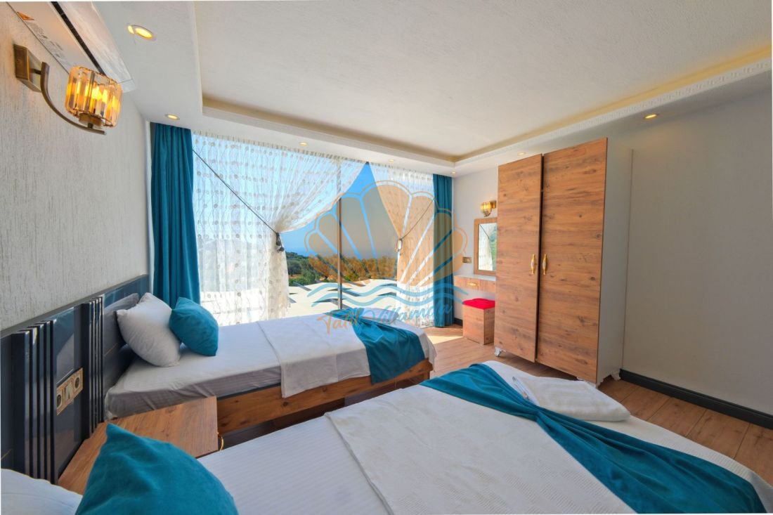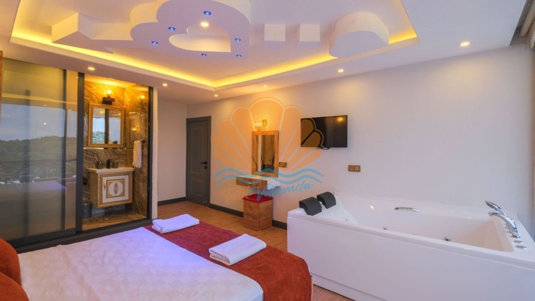 Toplamda 2 yatak odasına sahip olan Villa Leyla, 4 kişilik konaklama kapasitesiyle çekirdek aileler ve balayı çiftleri için oldukça uygundur. Her iki yatak odasında da ebeveyn banyosu bulunmakta olup, misafirlere maksimum mahremiyet ve rahatlık sağlanmaktadır. Ayrıca villada yer alan jakuzi, tatilinize keyif ve rahatlama katacak özel detaylardan biridir.