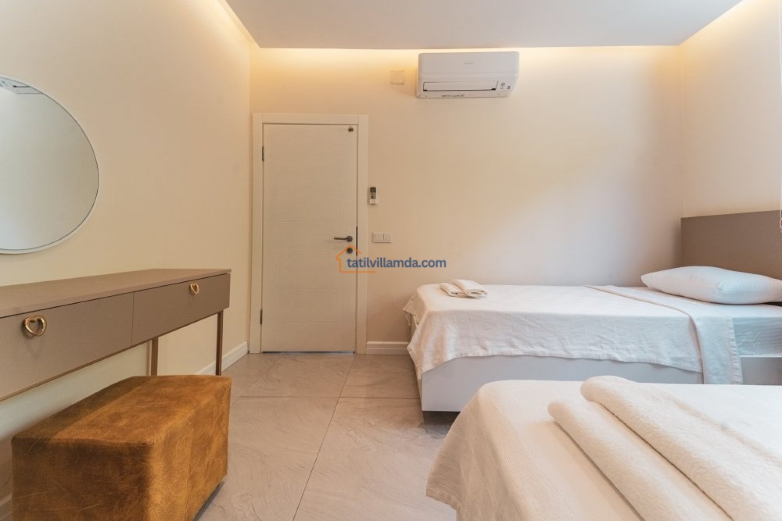 Villamız, geniş aileler ve arkadaş grupları için ideal bir konaklama sunar. Toplam 4 yatak odasıyla 8 kişiye kadar rahatlıkla konaklama imkânı sağlar. Her biri ebeveyn banyolu olan yatak odalarının 2’sinde jakuzi bulunur; bu sayede tatilinizi lüks ve konforla taçlandırabilirsiniz.