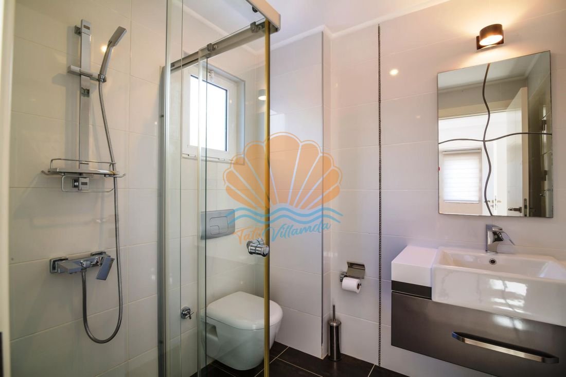 Villanın tüm yatak odaları ebeveyn banyoludur. Bu sayede her misafir için özel kullanım alanı ve maksimum konfor sağlanır. Odalardan birinde bulunan jakuzi, özellikle dinlenmek ve rahatlamak isteyen misafirler için ayrıcalıklı bir deneyim sunar. Şık ve kullanışlı salon alanı, tam donanımlı mutfak ve geniş yemek bölümü ile uzun süreli konaklamalar için de uygundur.