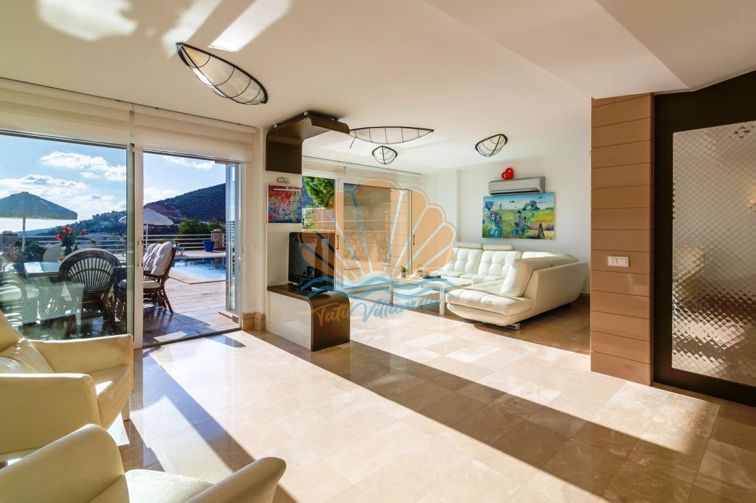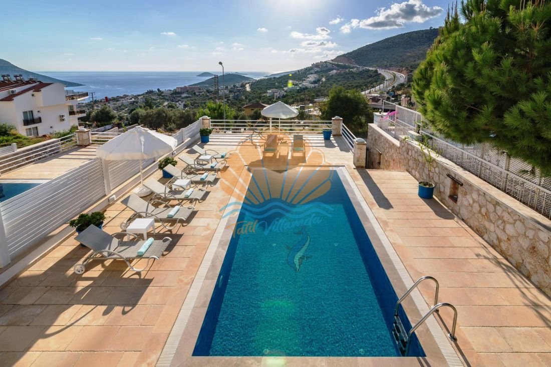 Villa Maribel’in en dikkat çekici özelliklerinden biri muhteşem deniz manzarasıdır. Teras ve havuz alanından Kalkan koyunu ve gün batımını keyifle izleyebilirsiniz. Geniş özel yüzme havuzu, güneşlenme terası ile birlikte tatiliniz boyunca size tamamen özel bir alan sunar. Havuz başında şezlonglar, güneş şemsiyeleri, barbekü ve masa takımı bulunmaktadır. Açık alanda yemek keyfi yapmak ve sevdiklerinizle hoş akşamlar geçirmek için ideal bir ortam sağlar.