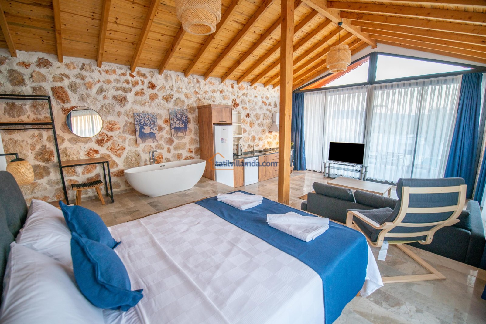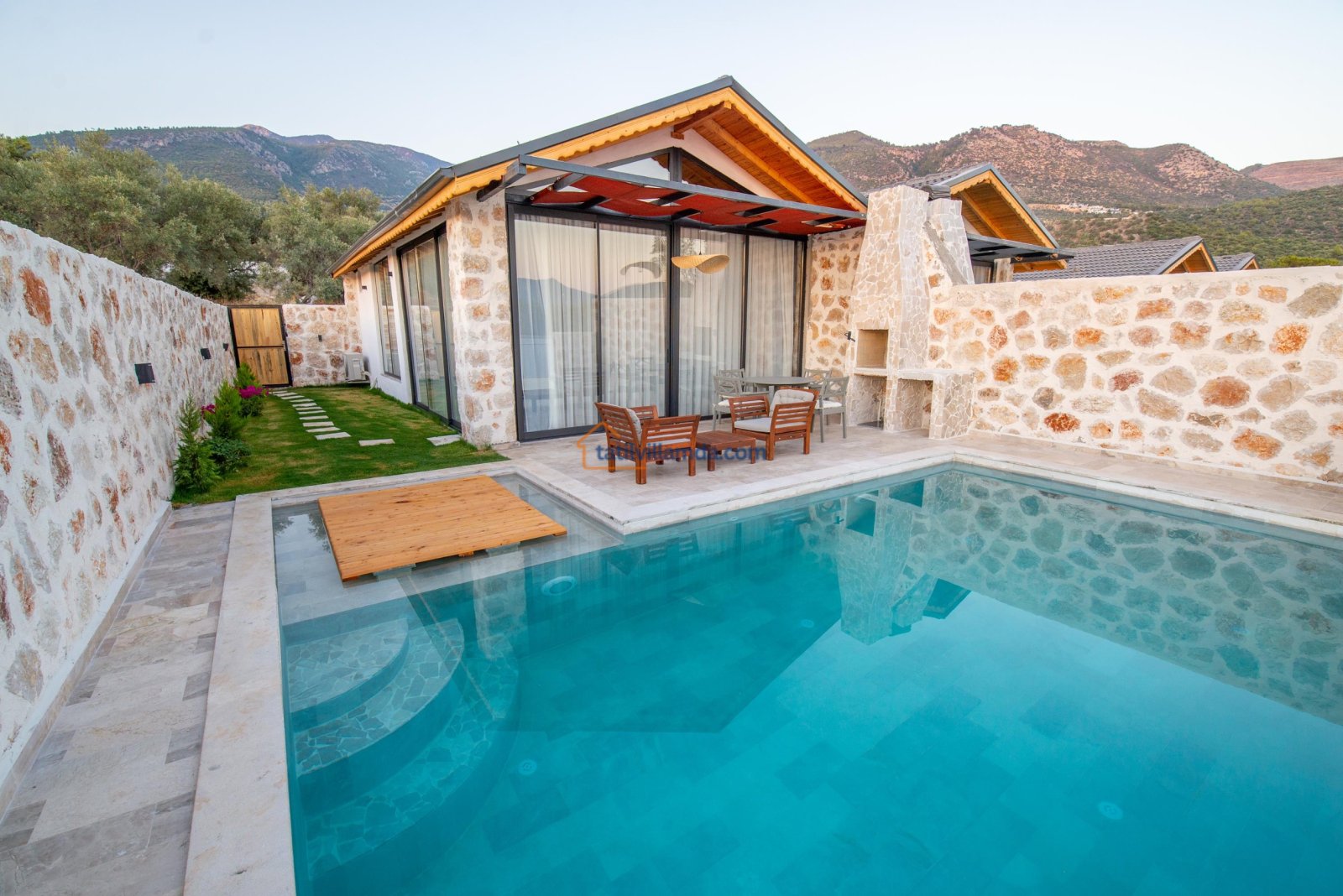 Villa Mavi , Kalkan’ın doğayla iç içe bölgesi Çayköy’de yer alan bu özel villa, balayı çiftleri ve çekirdek aileler için huzurlu ve konforlu bir tatil fırsatı sunar. Tamamen korunaklı özel havuzu sayesinde gözlerden uzak bir konaklama deneyimi yaşatır. Modern mimarisi ve şık iç tasarımıyla dikkat çeken villa, sessizlik ve mahremiyet arayan misafirler için idealdir.