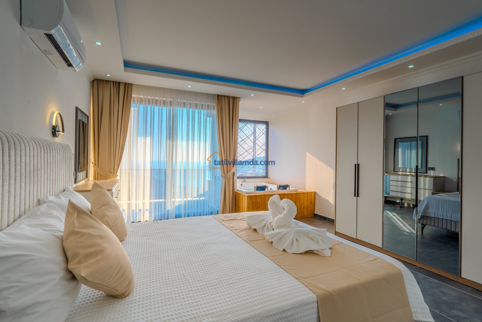 Villanın sunduğu lüks olanaklar arasında sauna, hamam ve jakuzi bulunmaktadır. Tatilinizi rahatlatıcı ve keyif dolu hale getirecek bu özellikler, hem bedeninizi hem de ruhunuzu dinlendirmenize yardımcı olur. Villanın geniş havuzu, dışarıdan görünmeyecek şekilde tasarlanmıştır, bu da mahremiyet arayan misafirler için idealdir.