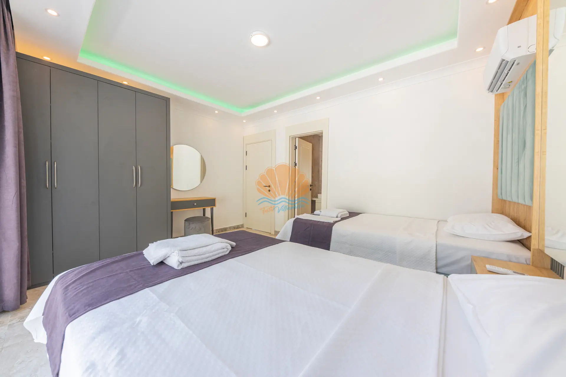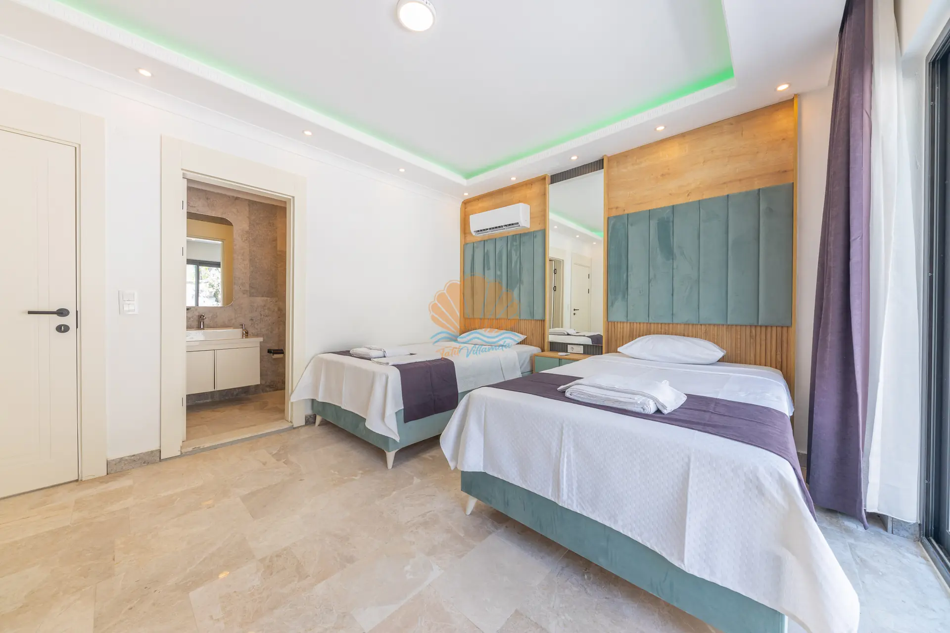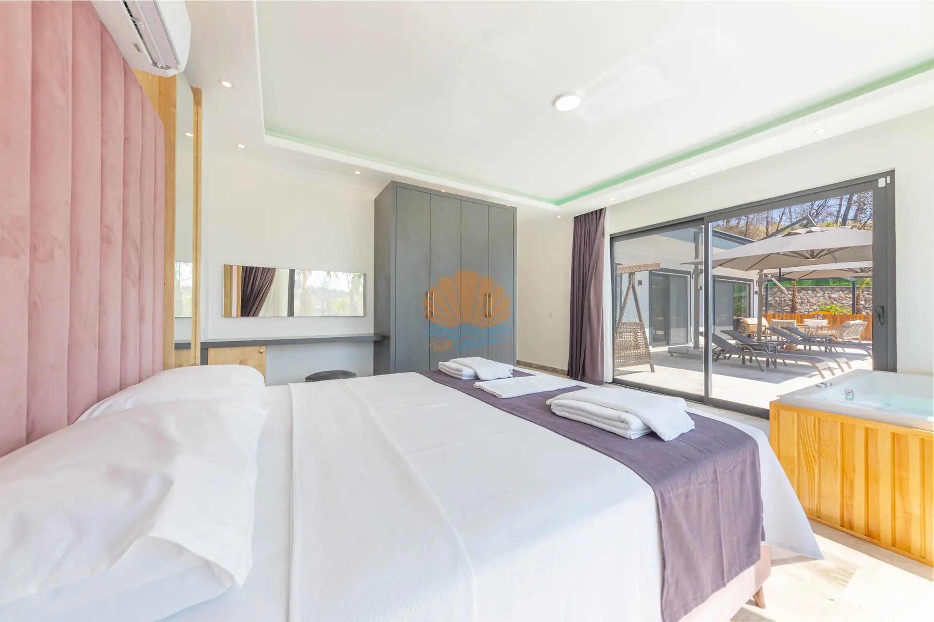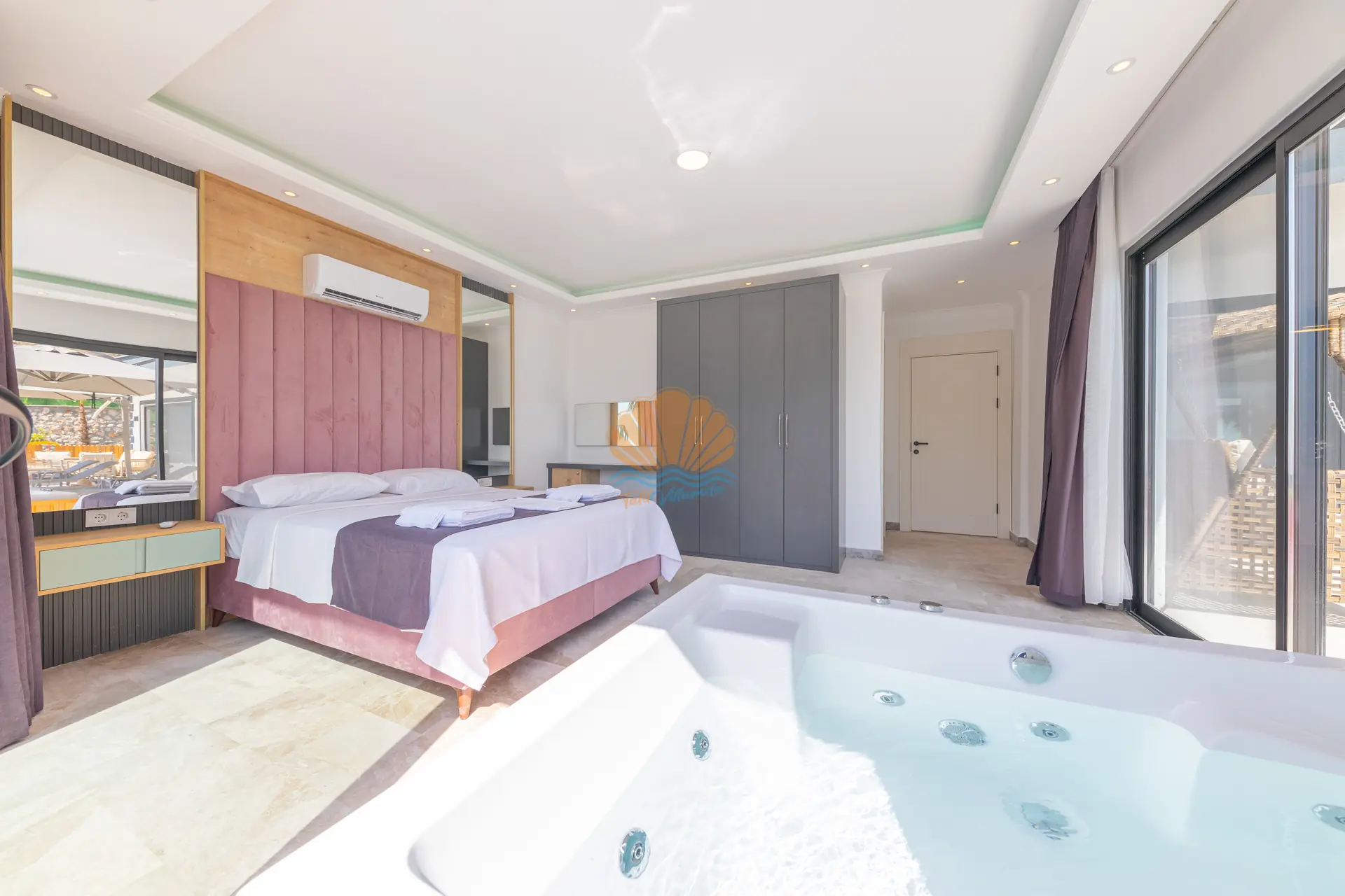 Toplamda 3 yatak odasına sahip olan Villa Mina Rio 3, 6 kişilik konaklama kapasitesi ile geniş aileler ve arkadaş grupları için rahat bir konaklama sunar. Modern ve şık detaylarla döşenmiş iç mekânları, konforun ön planda tutulduğu bir yaşam alanı oluşturur. Yatak odalarından birinde bulunan jakuzi, günün yorgunluğunu atabileceğiniz özel bir rahatlama alanı sunar.