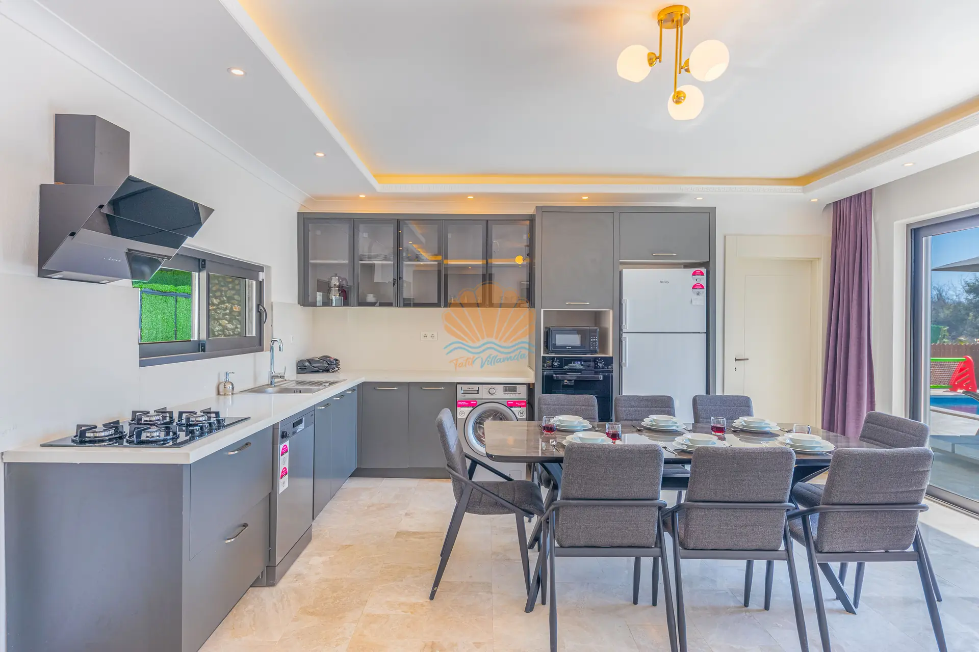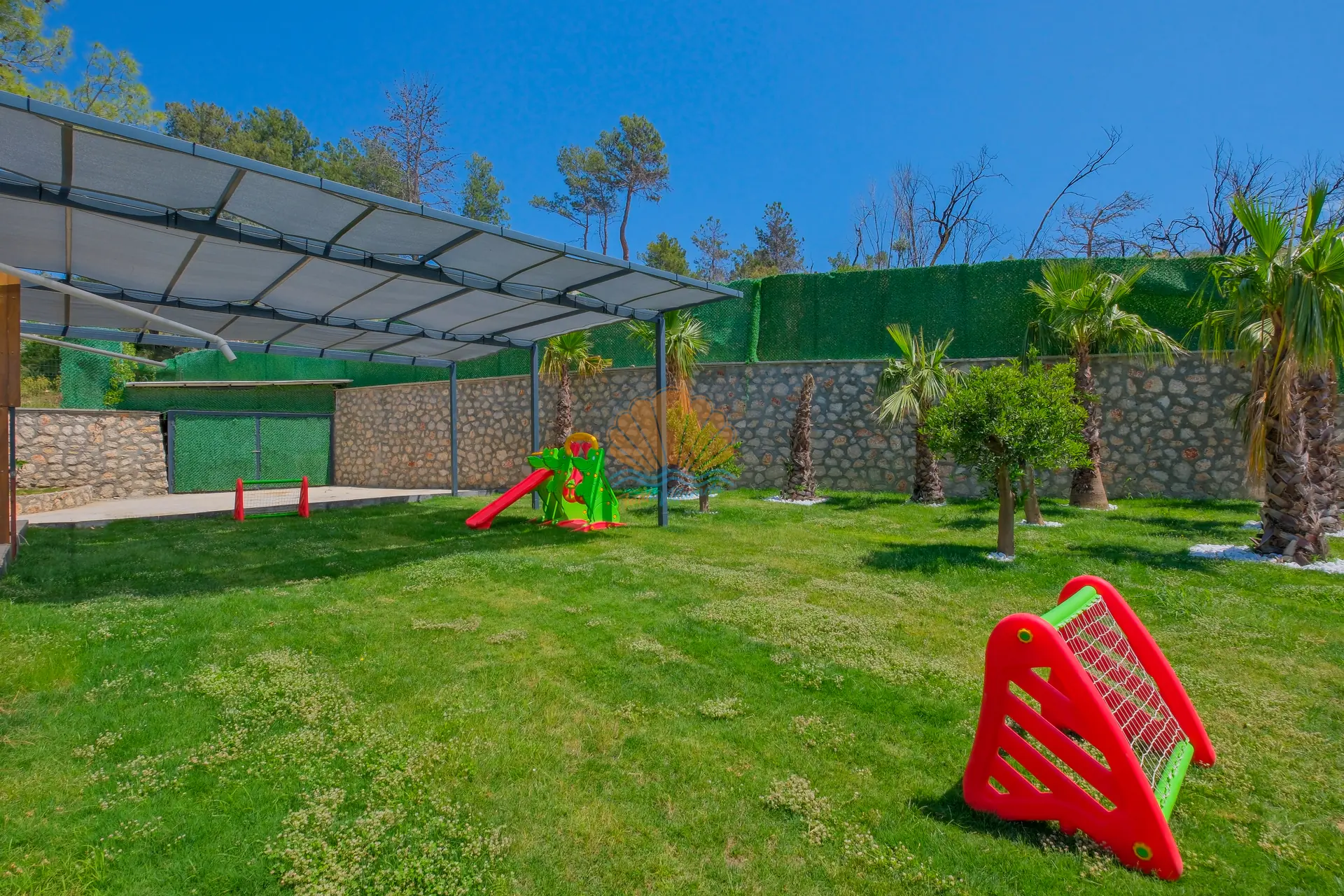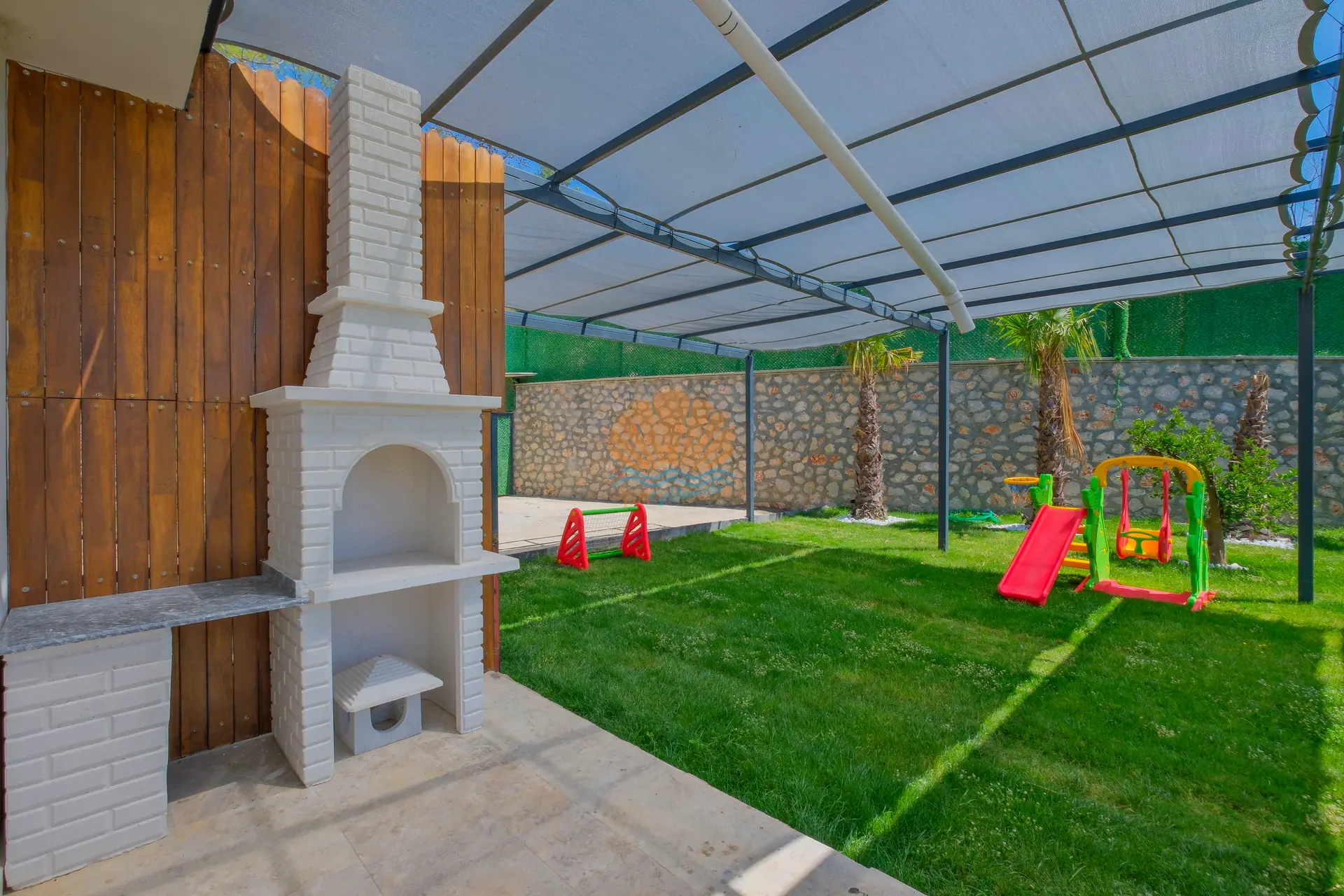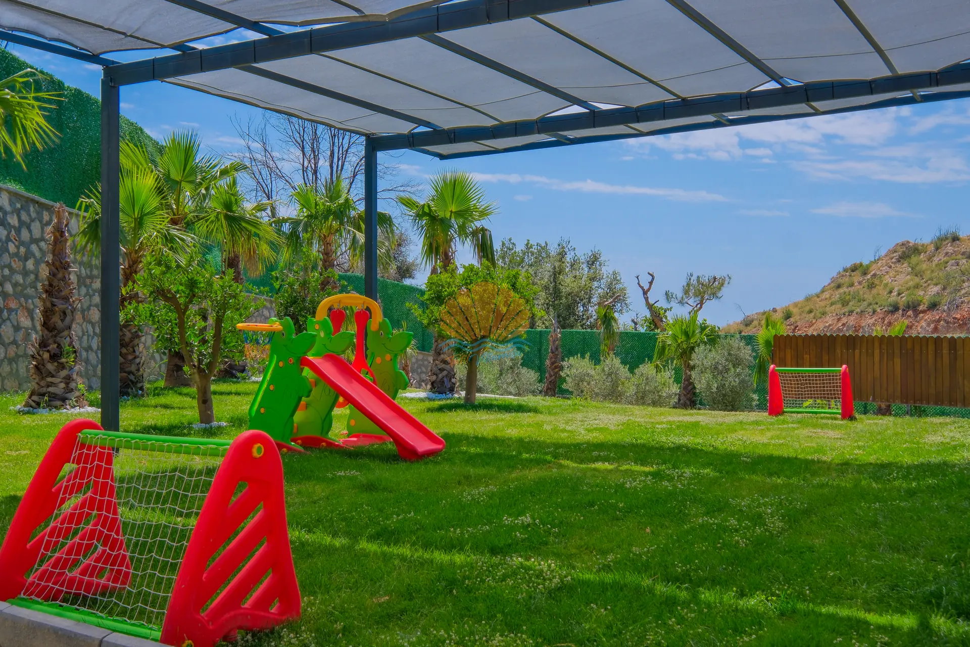 Bahçe alanında bulunan masa tenisi ve mini çocuk oyun parkı, hem yetişkinler hem de çocuklar için eğlenceli aktiviteler sunar. Bu sayede villa içerisinde vakit geçirirken sıkılmadan keyifli bir tatil deneyimi yaşayabilirsiniz.