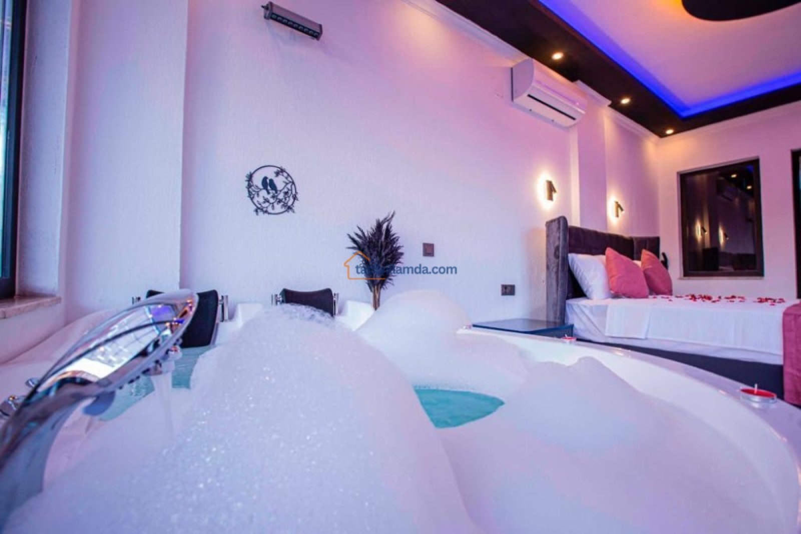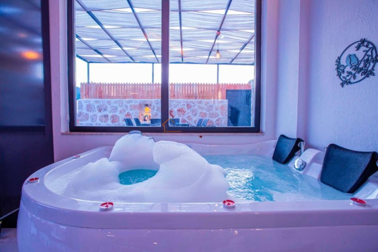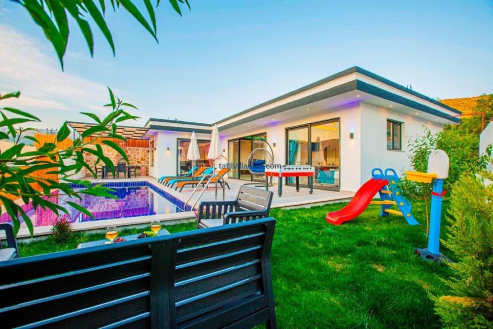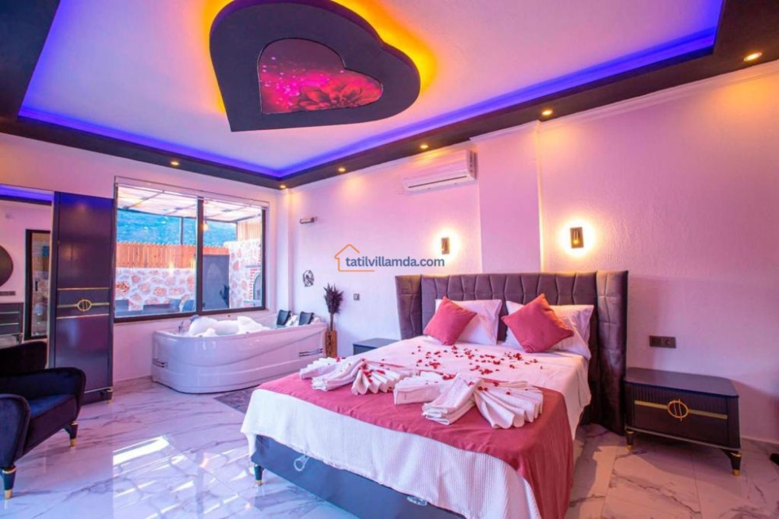 İç mekanda jakuzili bir yatak odası bulunur, böylece tatilinizi daha da konforlu hale getirebilirsiniz. Villanın bahçesi oldukça geniş olup, havuz başında langırt masası ve mini çocuk oyun alanı yer almaktadır. Bu sayede hem yetişkinler hem de çocuklar için keyifli bir ortam sunar.