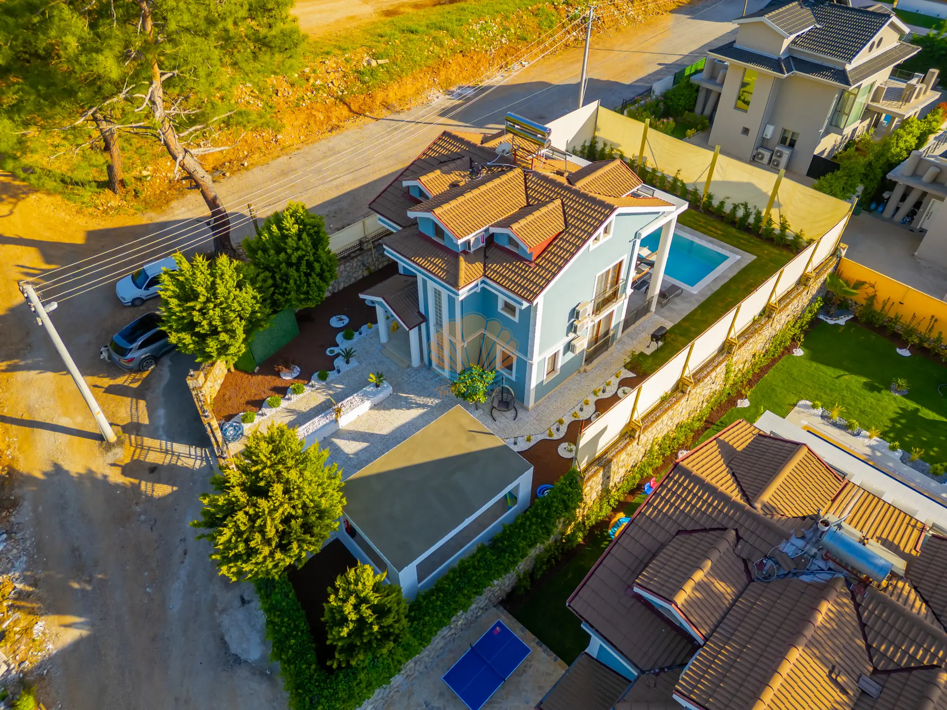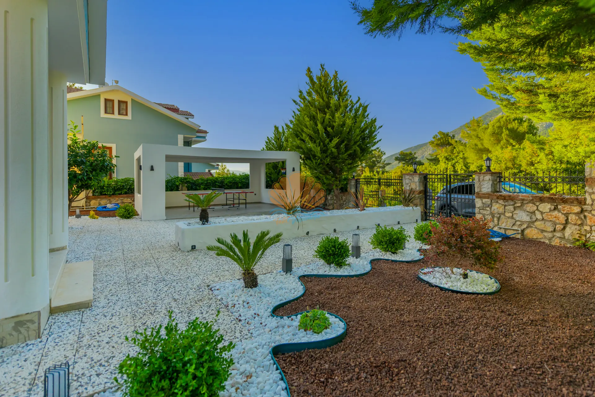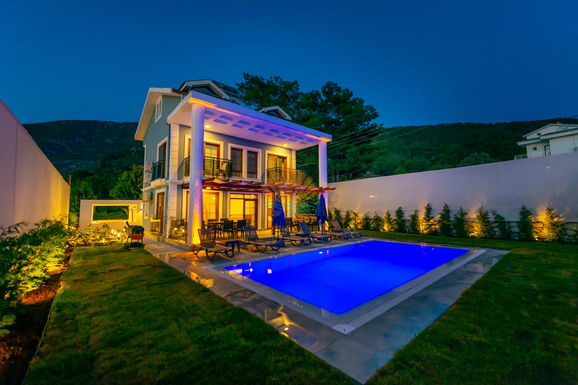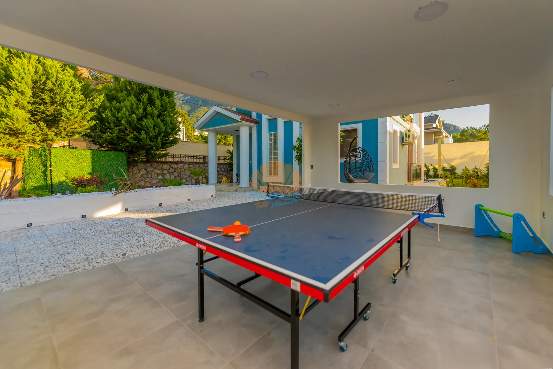 Villanın en dikkat çeken özelliklerinden biri, tamamen size özel geniş yüzme havuzudur. Havuz başında konforlu şezlonglar, şemsiye, bahçe oturma grubu ve keyifli akşam yemekleri için masa takımı yer almaktadır. Barbekü alanı sayesinde sevdiklerinizle birlikte lezzetli mangal keyfi yapabilirsiniz. Geniş ve düzenli bahçesi sadece yetişkinler için değil, çocuklar için de eğlenceli bir alan sunar. Bahçede yer alan masa tenisi ile keyifli vakit geçirebilir, mini çocuk oyun parkı sayesinde çocuklarınızın güvenle eğlenmesini sağlayabilirsiniz.