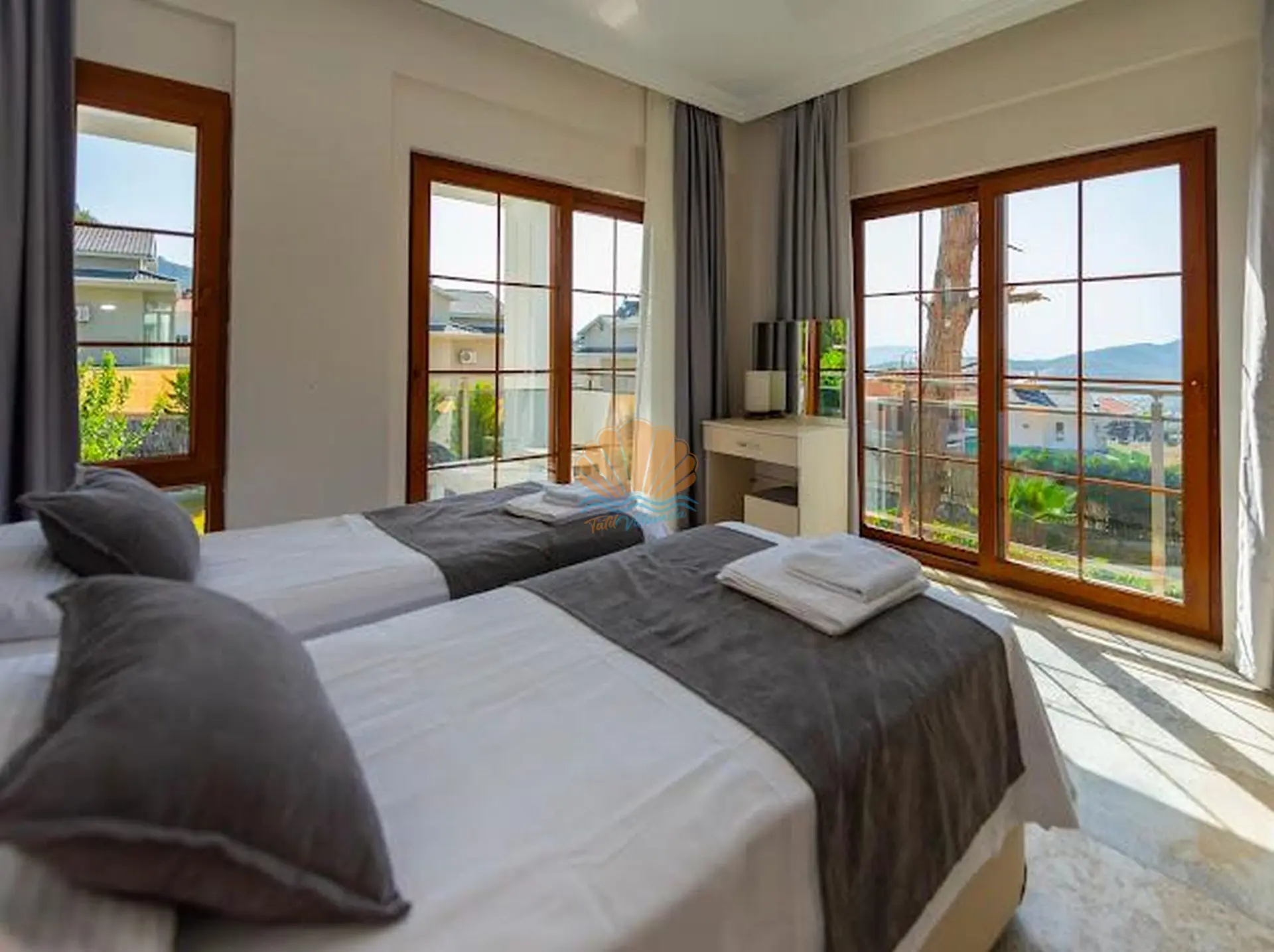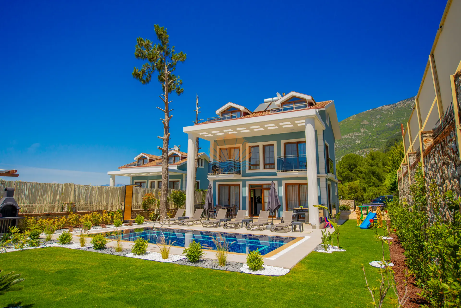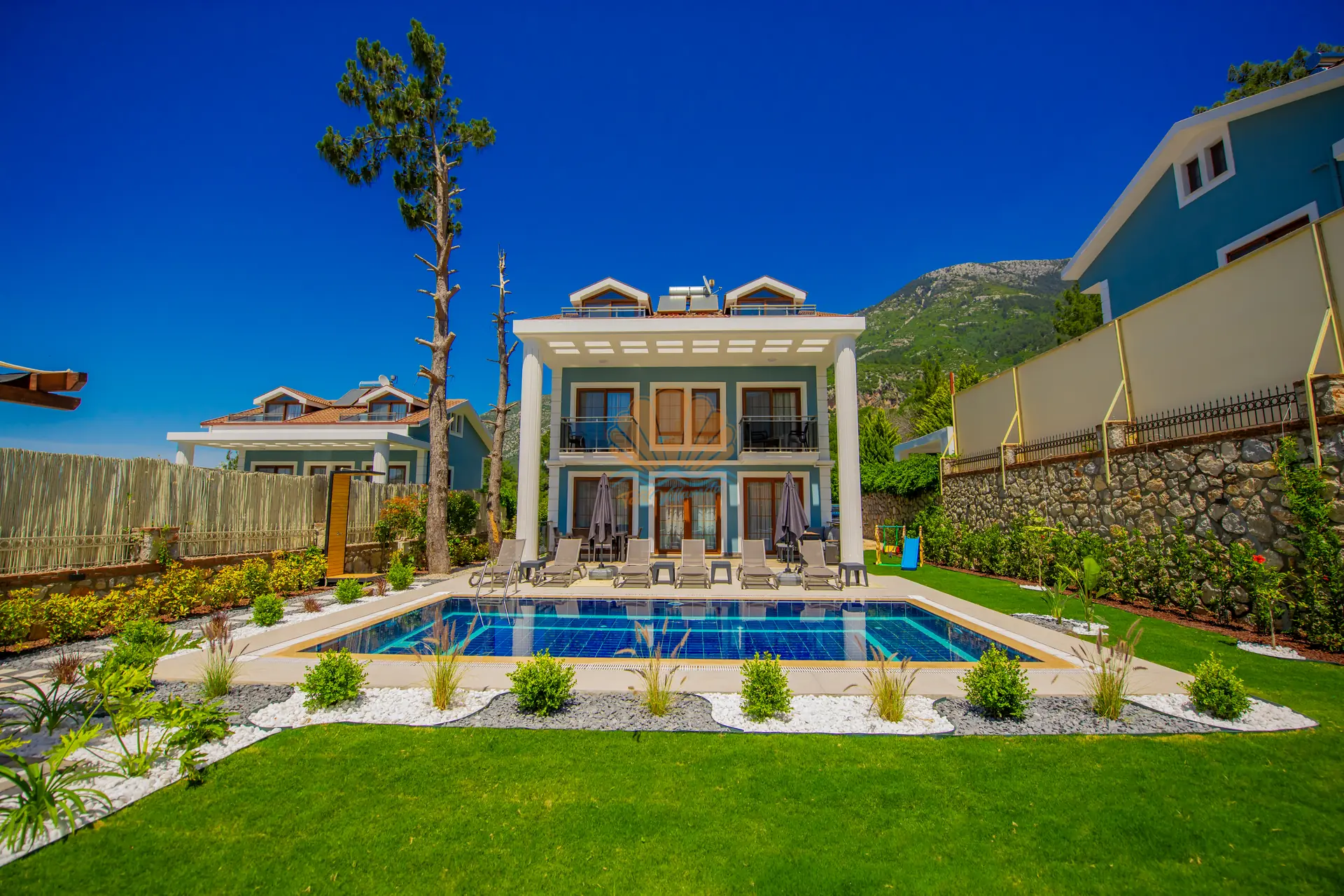 Fethiye’nin gözde tatil bölgelerinden Ölüdeniz mevkiinde konumlanan, geniş aileler ve kalabalık arkadaş grupları için ideal bir tatil villasıdır. Modern ve konforlu yapısıyla dikkat çeken villa, 4 yatak odasıyla toplamda 8 kişilik konaklama kapasitesine sahiptir. Ferah yaşam alanları ve kullanışlı dizaynı sayesinde misafirlerine rahat ve keyifli bir tatil deneyimi sunar.