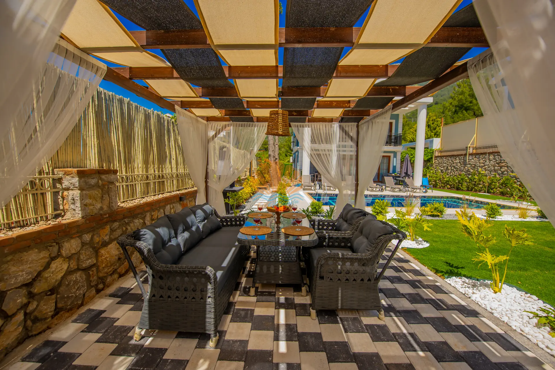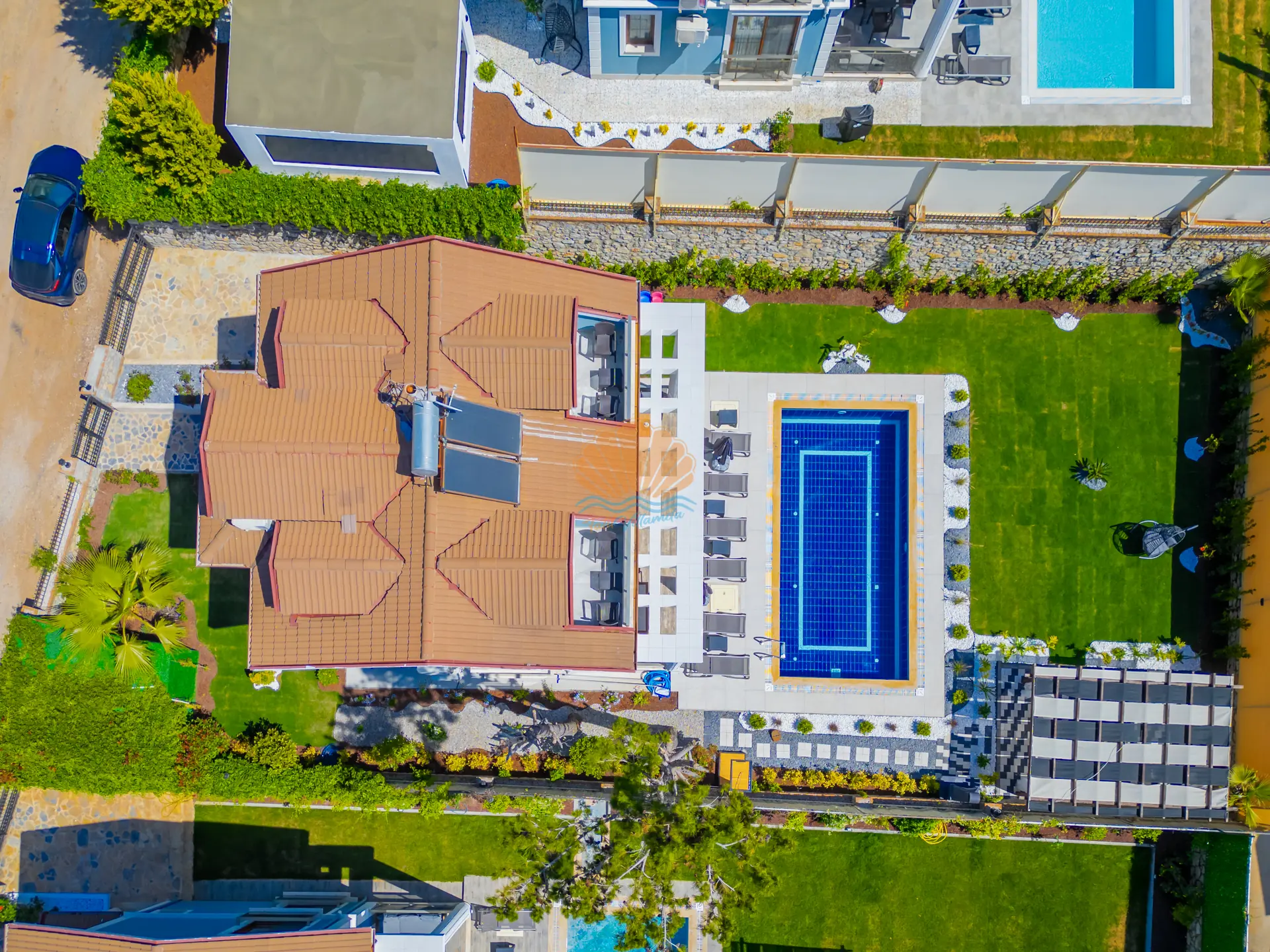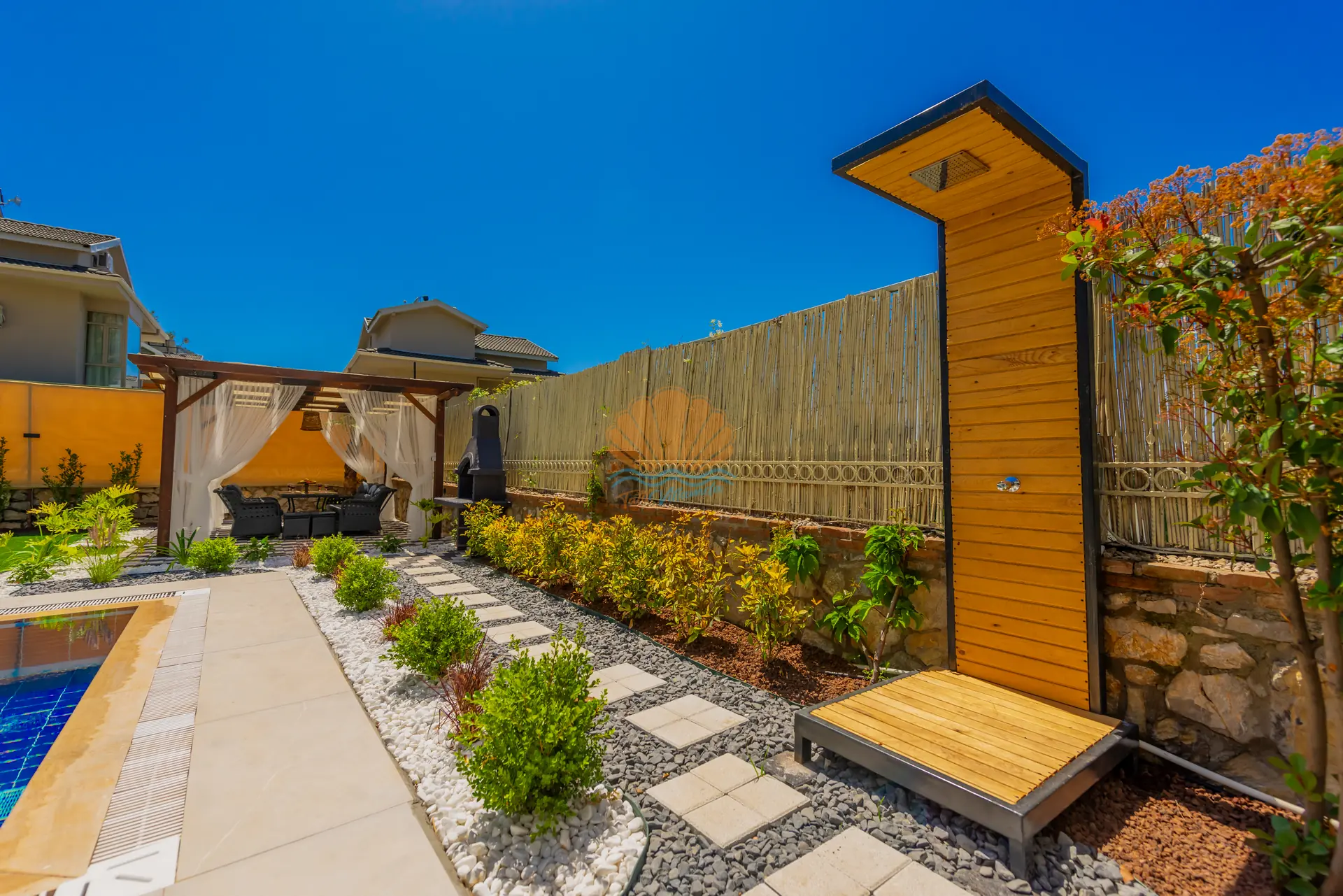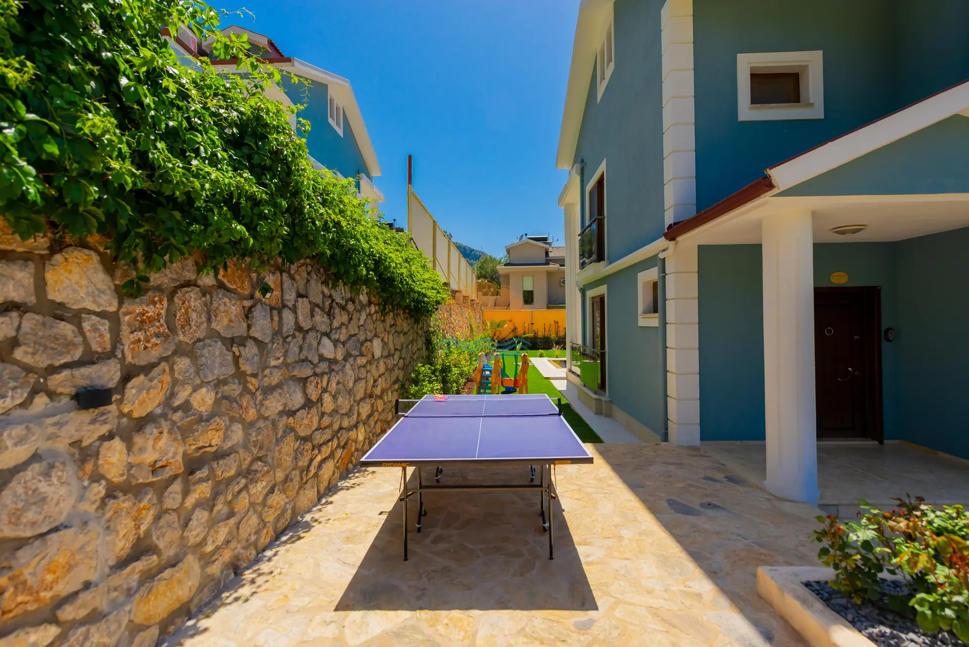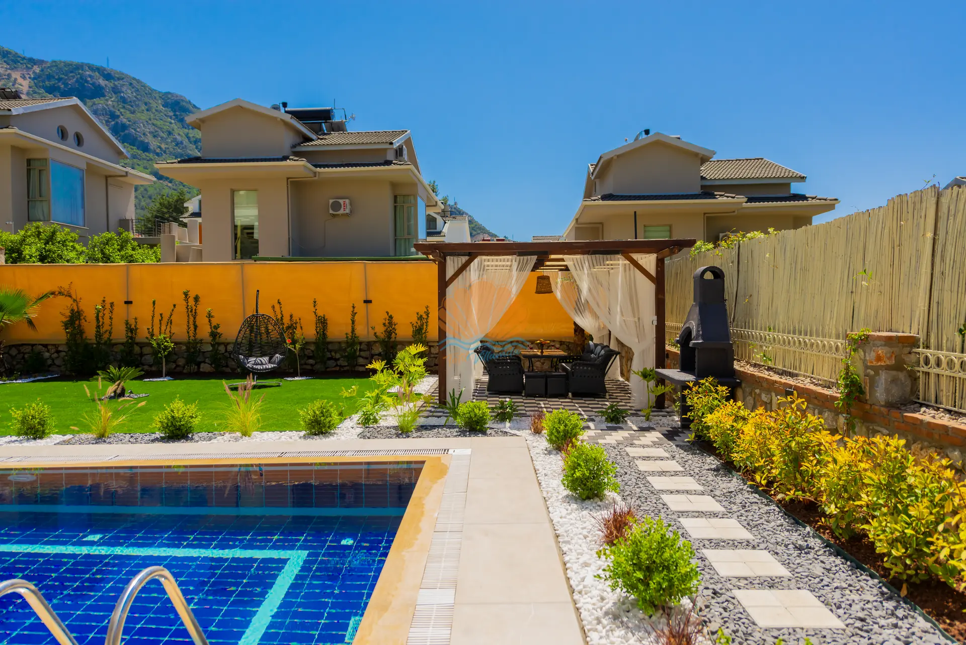 Villanın en dikkat çeken özelliklerinden biri, tamamen size özel geniş yüzme havuzudur. Havuz başında konforlu şezlonglar, şemsiye, bahçe oturma grubu ve keyifli akşam yemekleri için masa takımı yer almaktadır. Ayrıca çardak alanı, günün her saatinde dinlenebileceğiniz gölgelik bir ortam sunar. Barbekü alanı sayesinde sevdiklerinizle birlikte lezzetli mangal keyfi yapabilirsiniz. Geniş ve düzenli bahçesi sadece yetişkinler için değil, çocuklar için de eğlenceli bir alan sunar. Bahçede yer alan masa tenisi ile keyifli vakit geçirebilir, mini çocuk oyun parkı sayesinde çocuklarınızın güvenle eğlenmesini sağlayabilirsiniz.