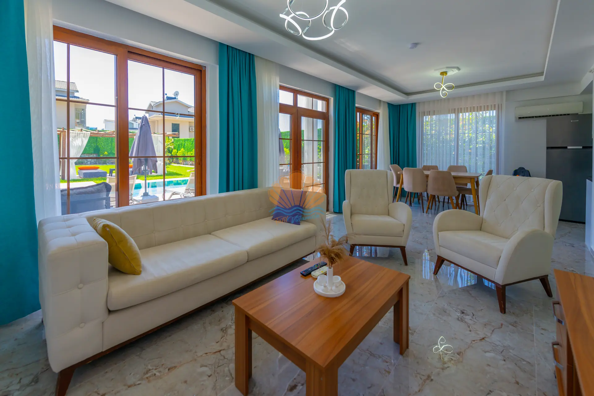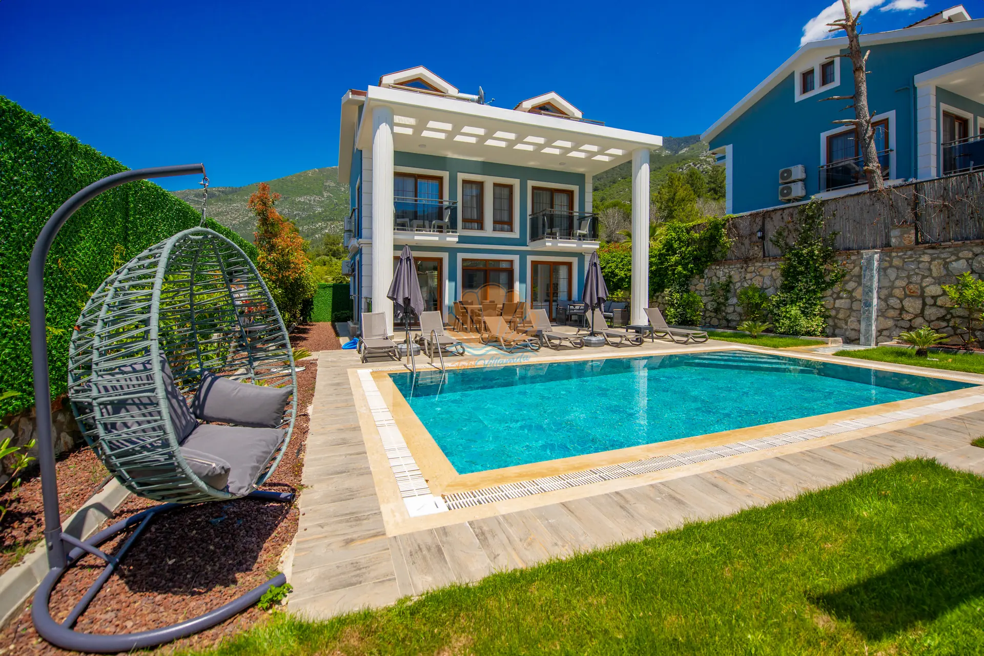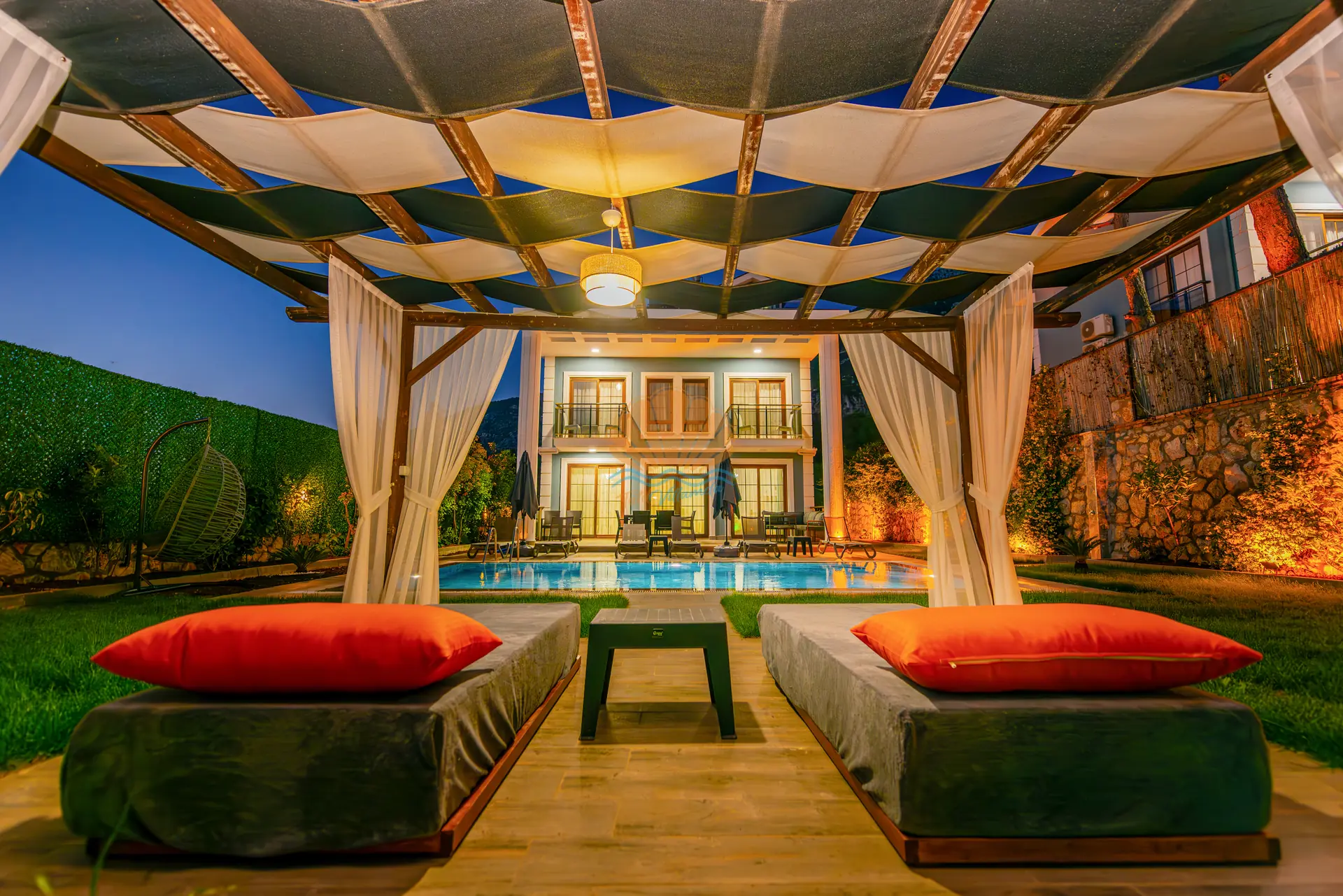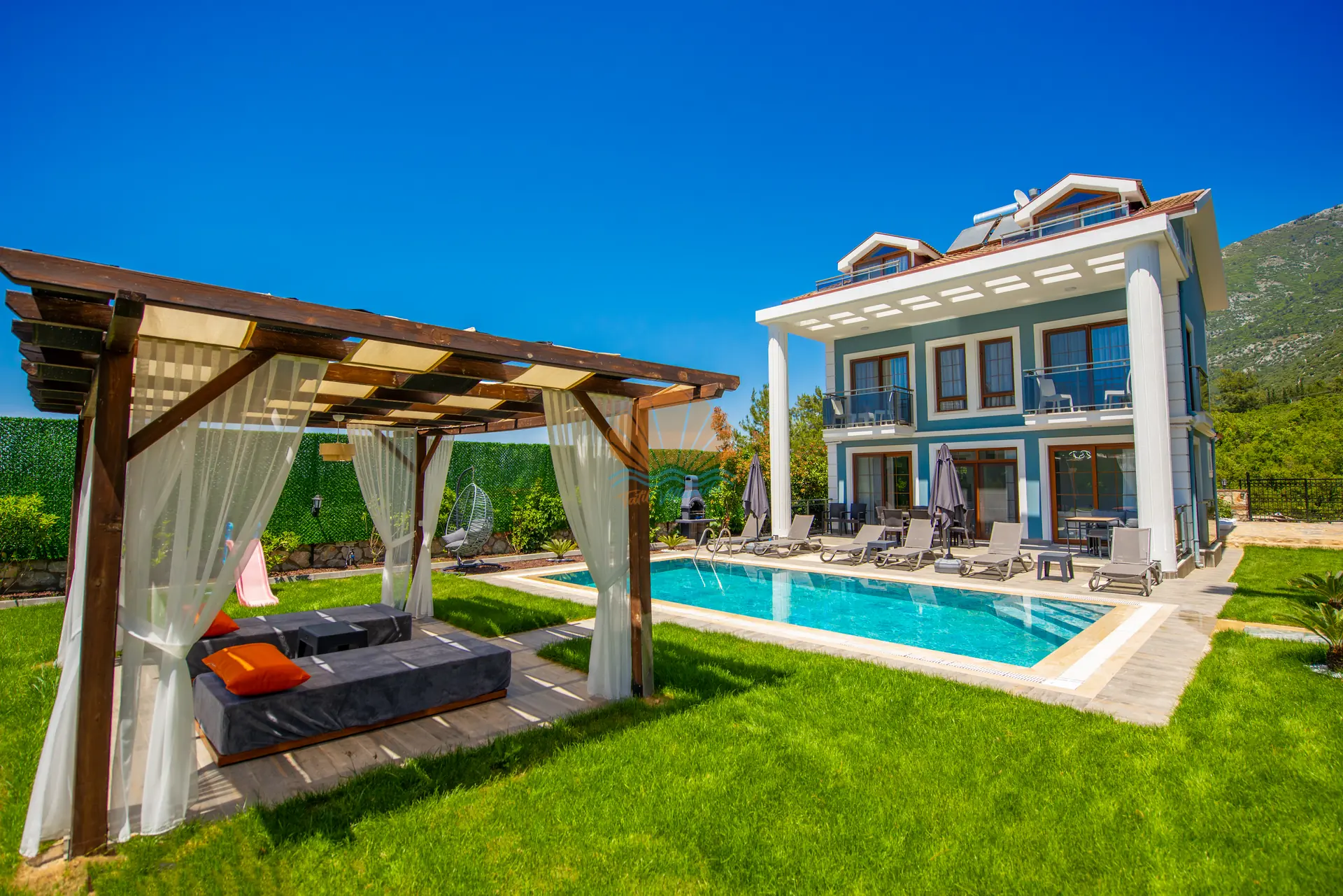 Ölüdeniz mevkiinde konumlanan, doğa ile iç içe huzurlu bir tatil imkânı sunan özel bir villadır. Korunaklı geniş havuzu ve yemyeşil bahçesi sayesinde özellikle gözlerden uzak, sakin bir tatil geçirmek isteyen aileler ve arkadaş grupları için ideal bir seçenektir. Modern mimarisi ve konforlu yaşam alanları ile dikkat çeken villa, 4 yatak odası kapasitesiyle toplamda 8 kişiye kadar konaklama imkânı sunmaktadır. Tüm odaların ebeveyn banyolu olması, misafirlerine ekstra konfor ve mahremiyet sağlamaktadır.