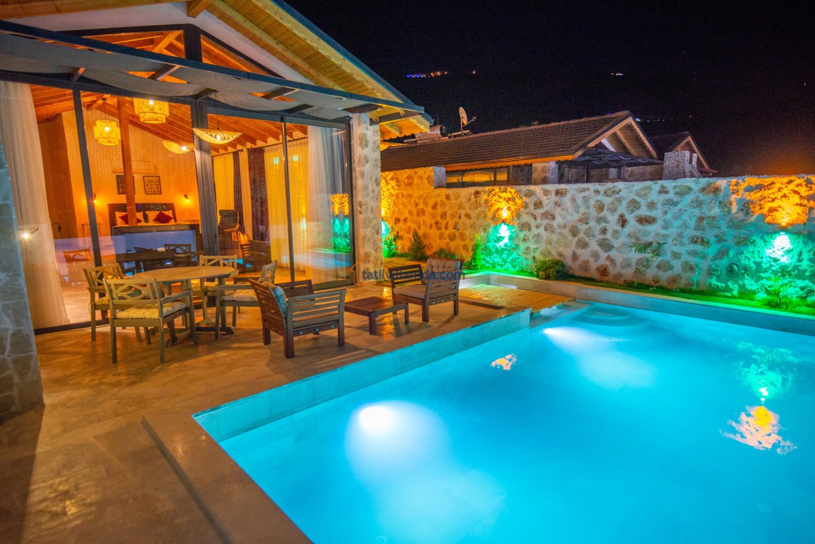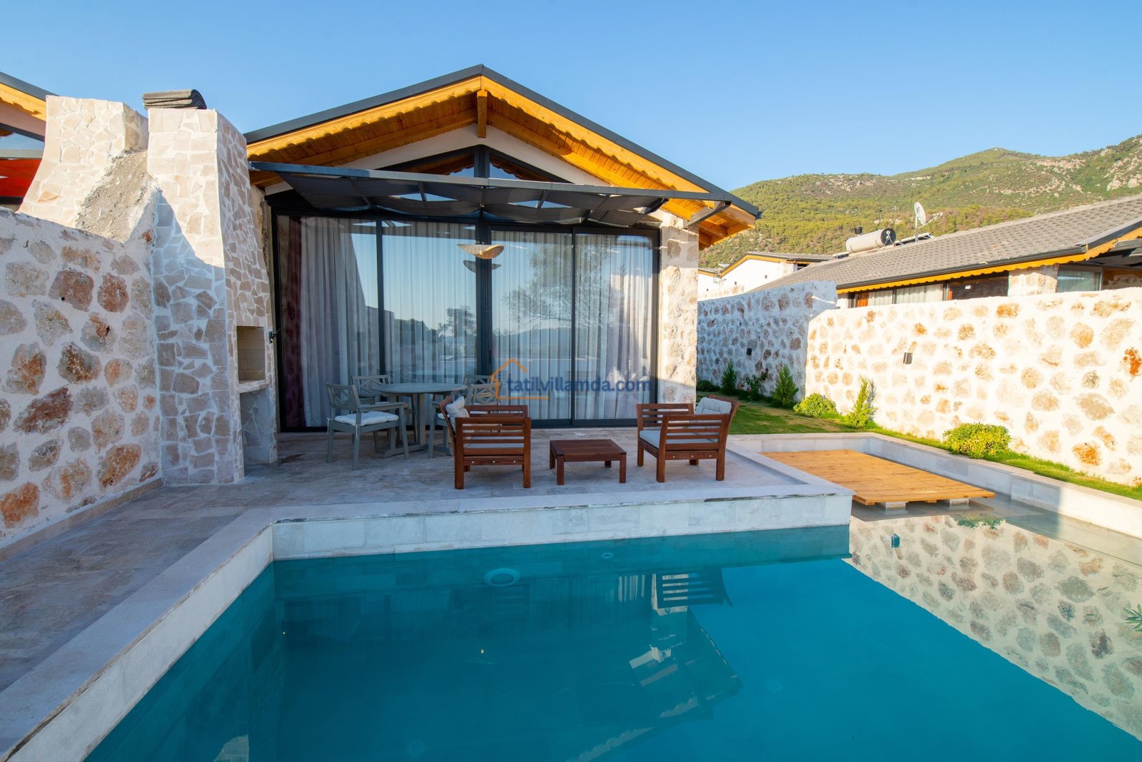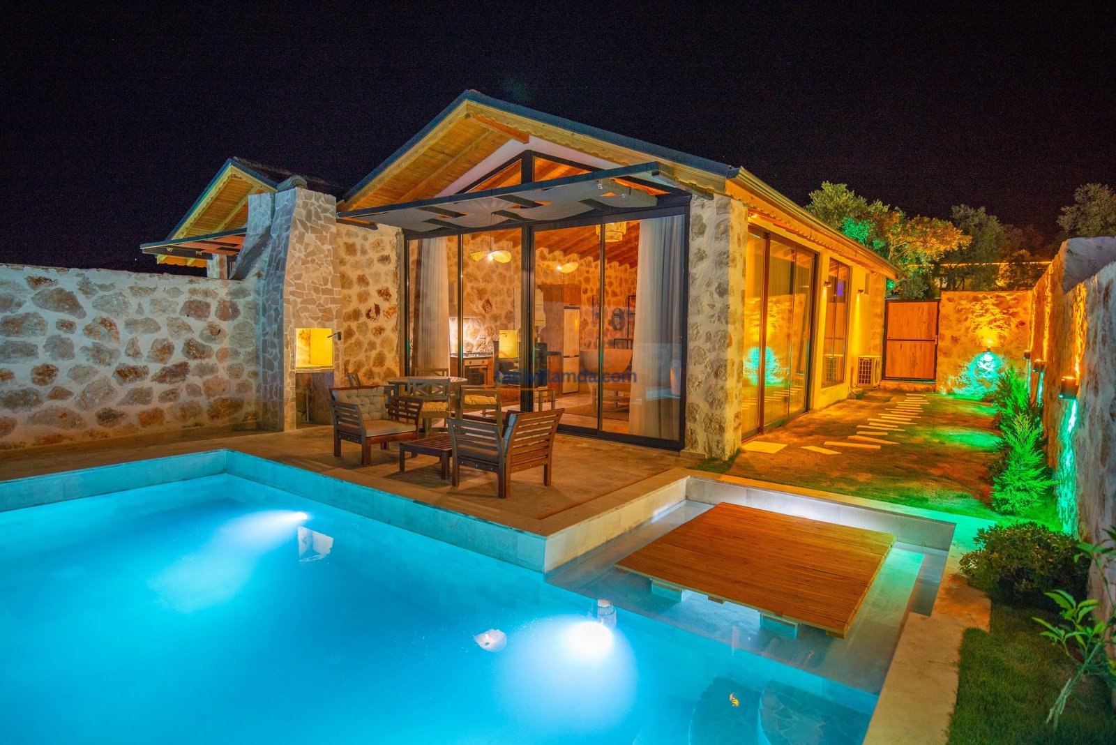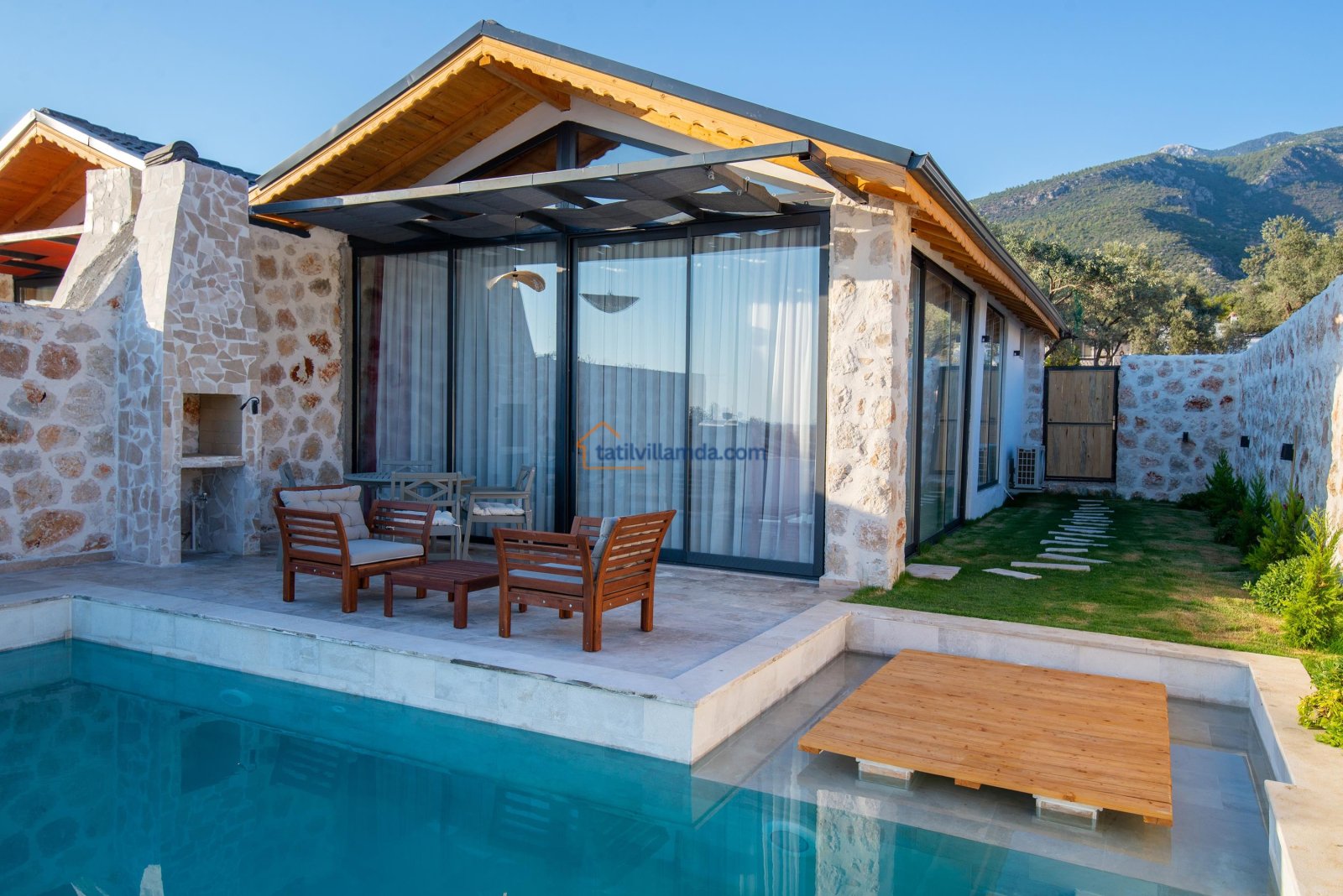 Villa Mürdüm, Kalkan’ın doğal güzellikleriyle öne çıkan Çayköy mevkiinde yer alır ve özellikle balayı çiftleri ile çekirdek aileler için sakin, huzurlu bir tatil imkânı sunar. Doğa manzaralı ve tamamen korunaklı özel yüzme havuzuyla dışarıdan görünmeyen bir alan sunarak misafirlerine tam anlamıyla mahremiyet sağlar. Taş ve ahşap detaylarla modern tarzda döşenmiş iç mekanı, konfor ve estetiği bir araya getirir. Sessiz ve sakin atmosferiyle, kalabalıktan uzak bir tatil arayanlar için idealdir.