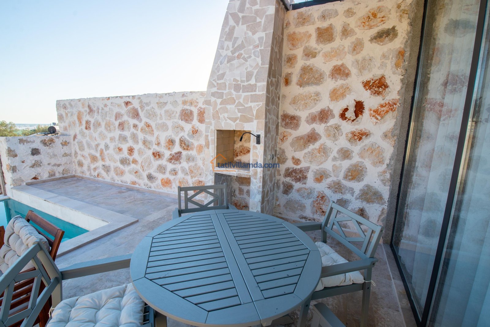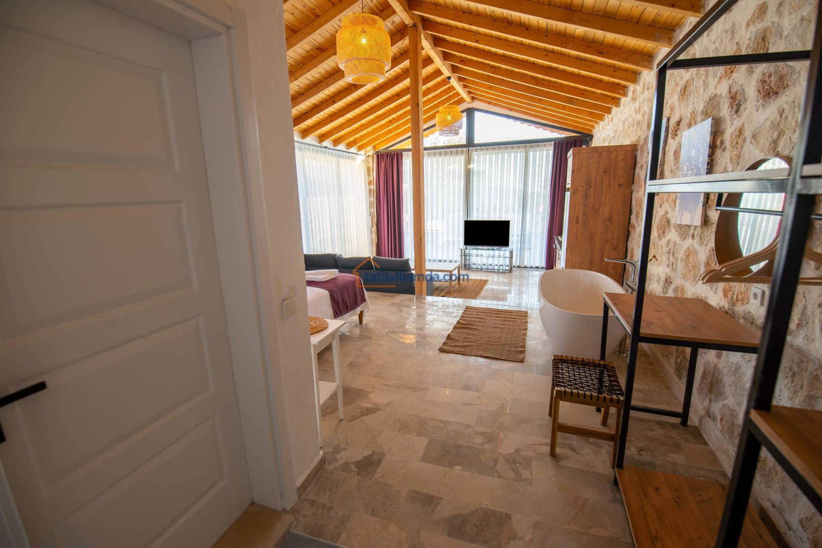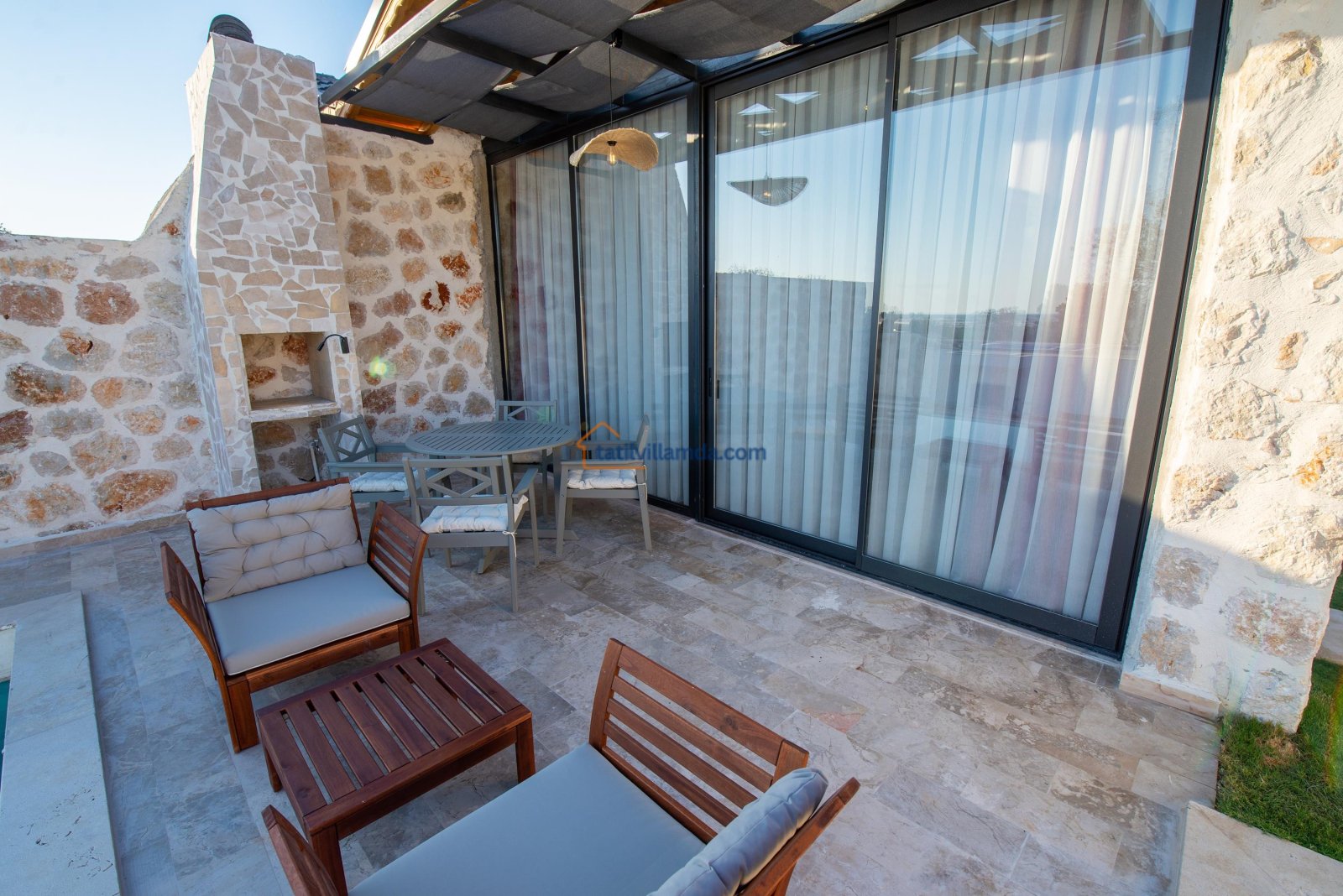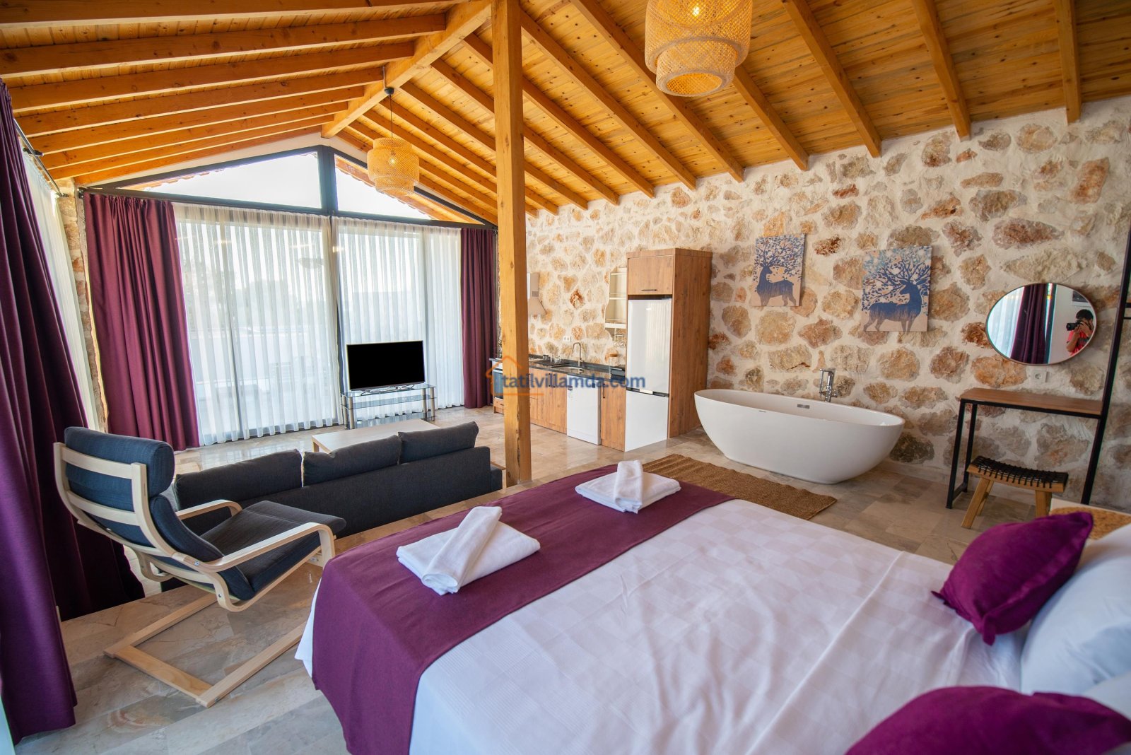 Villa Mürdüm, Kalkan’ın doğal güzellikleriyle öne çıkan Çayköy mevkiinde yer alır ve özellikle balayı çiftleri ile çekirdek aileler için sakin, huzurlu bir tatil imkânı sunar. Doğa manzaralı ve tamamen korunaklı özel yüzme havuzuyla dışarıdan görünmeyen bir alan sunarak misafirlerine tam anlamıyla mahremiyet sağlar. Taş ve ahşap detaylarla modern tarzda döşenmiş iç mekanı, konfor ve estetiği bir araya getirir. Sessiz ve sakin atmosferiyle, kalabalıktan uzak bir tatil arayanlar için idealdir.