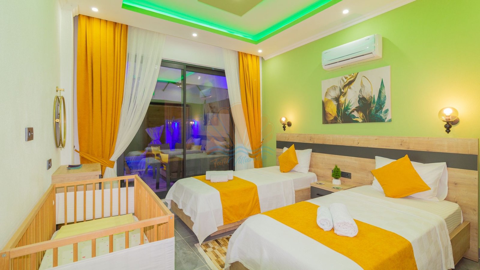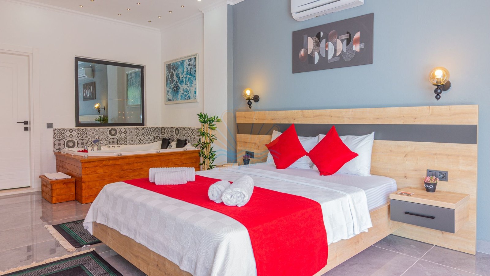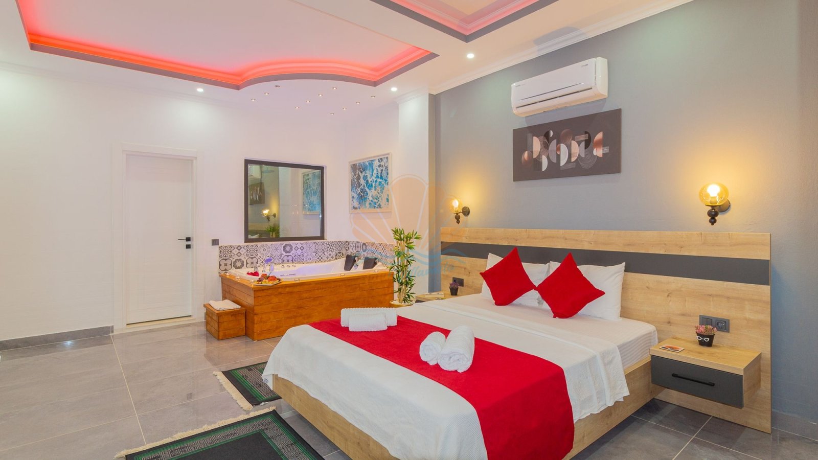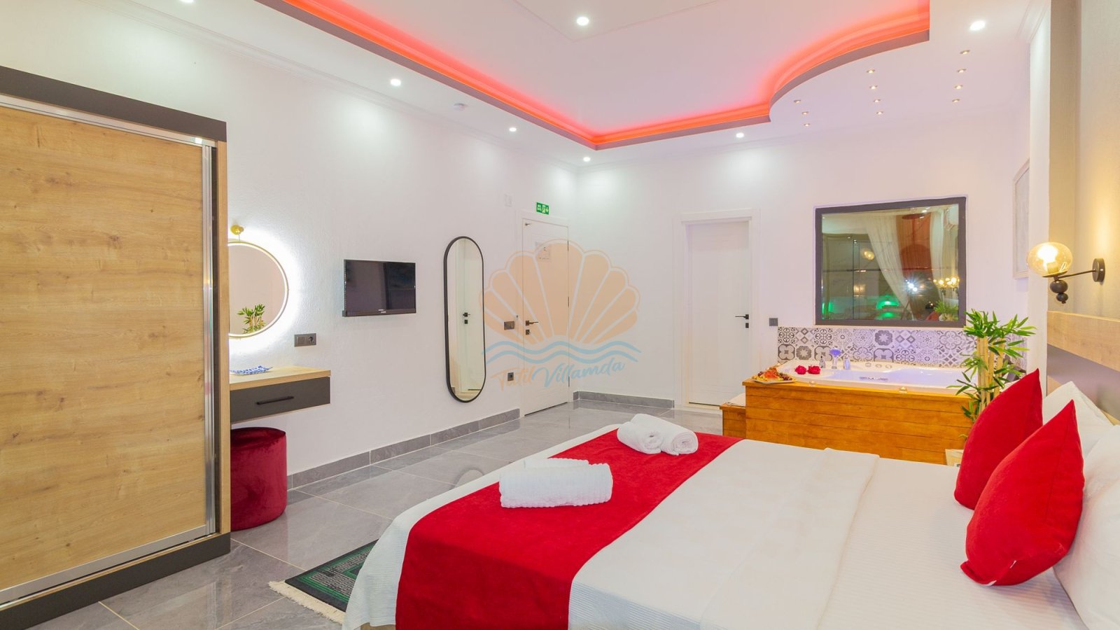 Toplamda 2 yatak odasına sahip olan Villa Nar Çiçeği 2, 4 kişilik konaklama kapasitesiyle aileler ve arkadaş grupları için uygundur. Modern ve konforlu bir şekilde dekore edilmiş yatak odalarında rahat bir tatil için ihtiyaç duyabileceğiniz tüm detaylar düşünülmüştür. Villada yer alan jakuzi, günün yorgunluğunu atmak ve tatilinize küçük bir lüks dokunuş katmak isteyen misafirler için hoş bir ayrıcalık sunar.