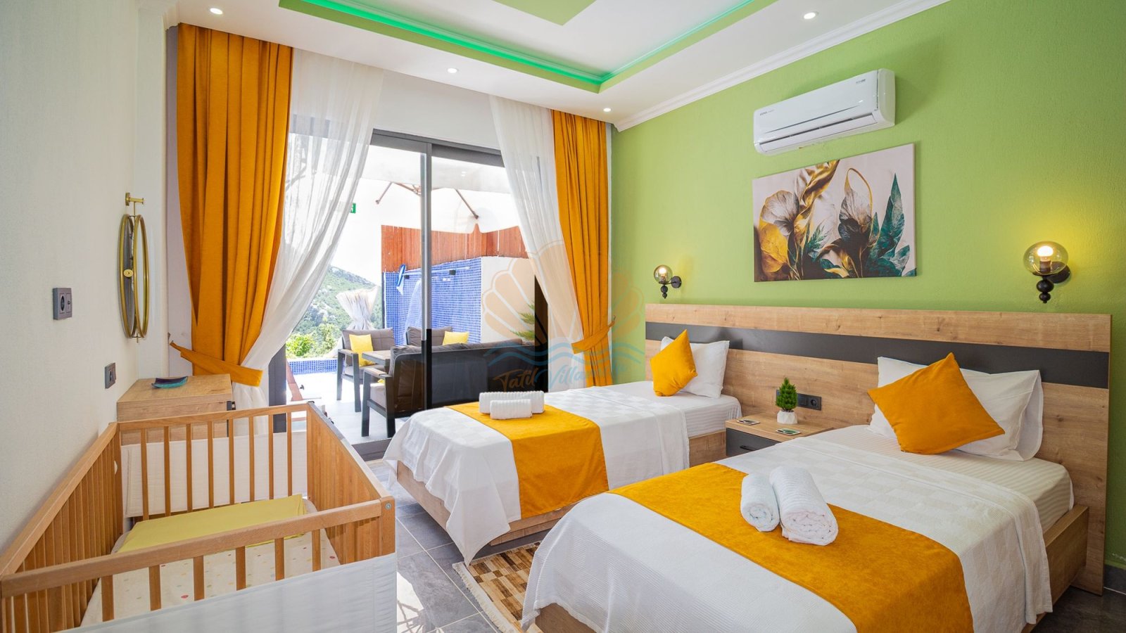 Kalkan’ın doğayla iç içe ve sakin atmosferiyle öne çıkan İslamlar mevkiinde konumlanmaktadır. Şehrin kalabalığından uzak, huzurlu bir tatil arayan misafirler için özenle tasarlanmış bu villa, korunaklı ve geniş havuz alanı sayesinde muhafazakâr aileler ve balayı çiftleri için ideal bir konaklama seçeneği sunar. Doğa manzarası eşliğinde güne başlamak, kuş sesleri arasında dinlenmek isteyenler için keyifli bir ortam sağlar.