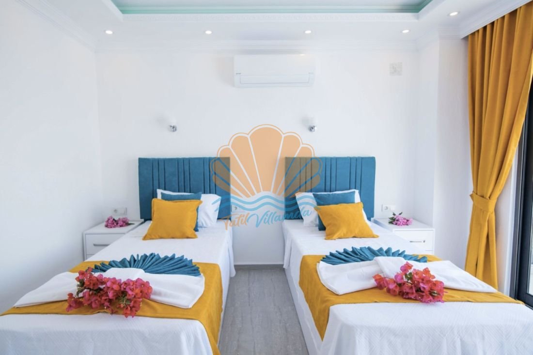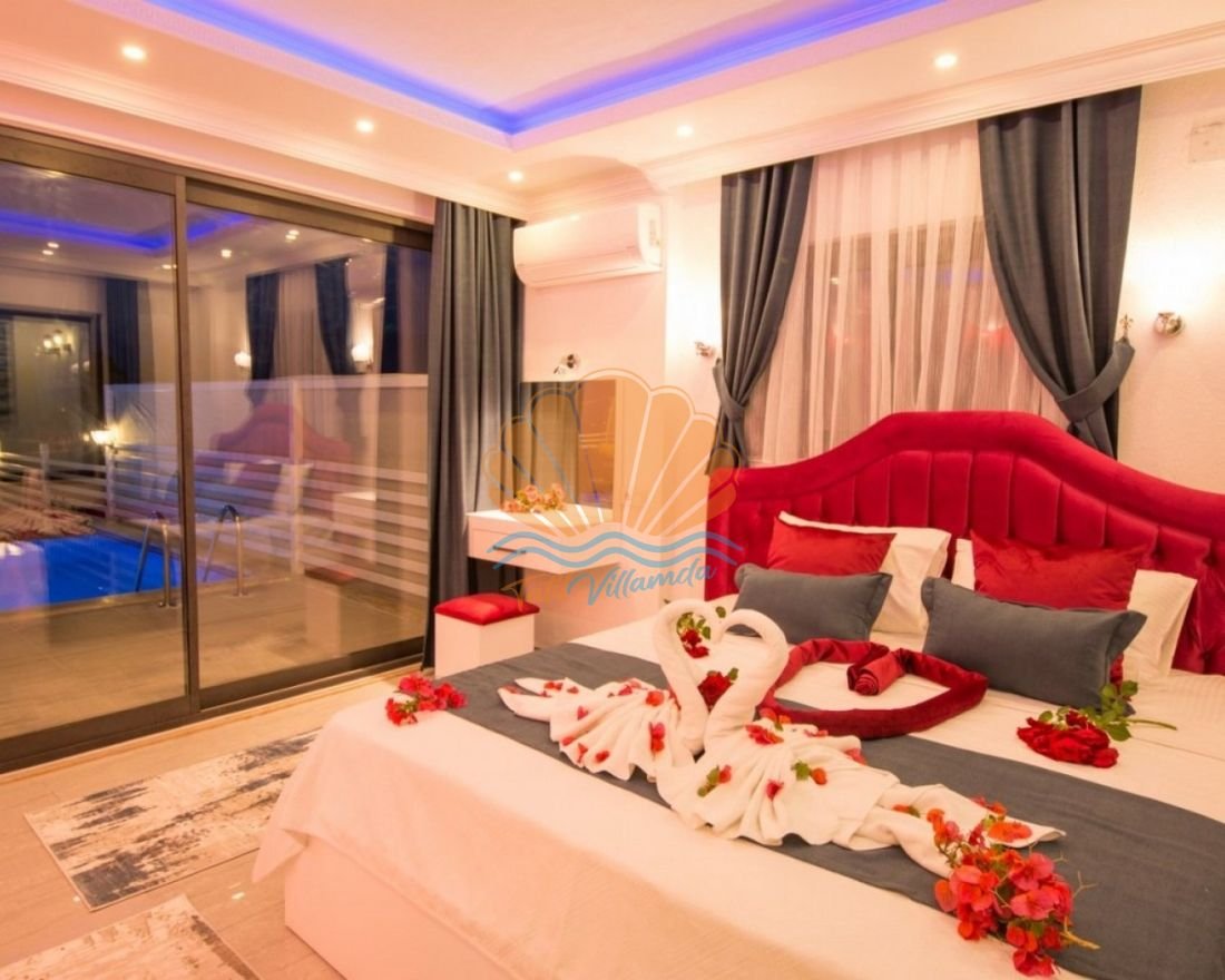 Villa 2 yatak odalı olup toplam 4 kişilik konaklama kapasitesine sahiptir. Odaların tamamı ebeveyn banyolu olarak tasarlanmıştır ve misafirlerin konforu ön planda tutulmuştur. Ana yatak odasında bulunan jakuzi, tatil süresince dinlenme ve rahatlama imkânı sunar. Modern ve şık detaylarla döşenmiş iç mekânı, ferah salonu ve kullanışlı mutfağı sayesinde ev konforunda bir tatil geçirmeniz hedeflenmiştir.