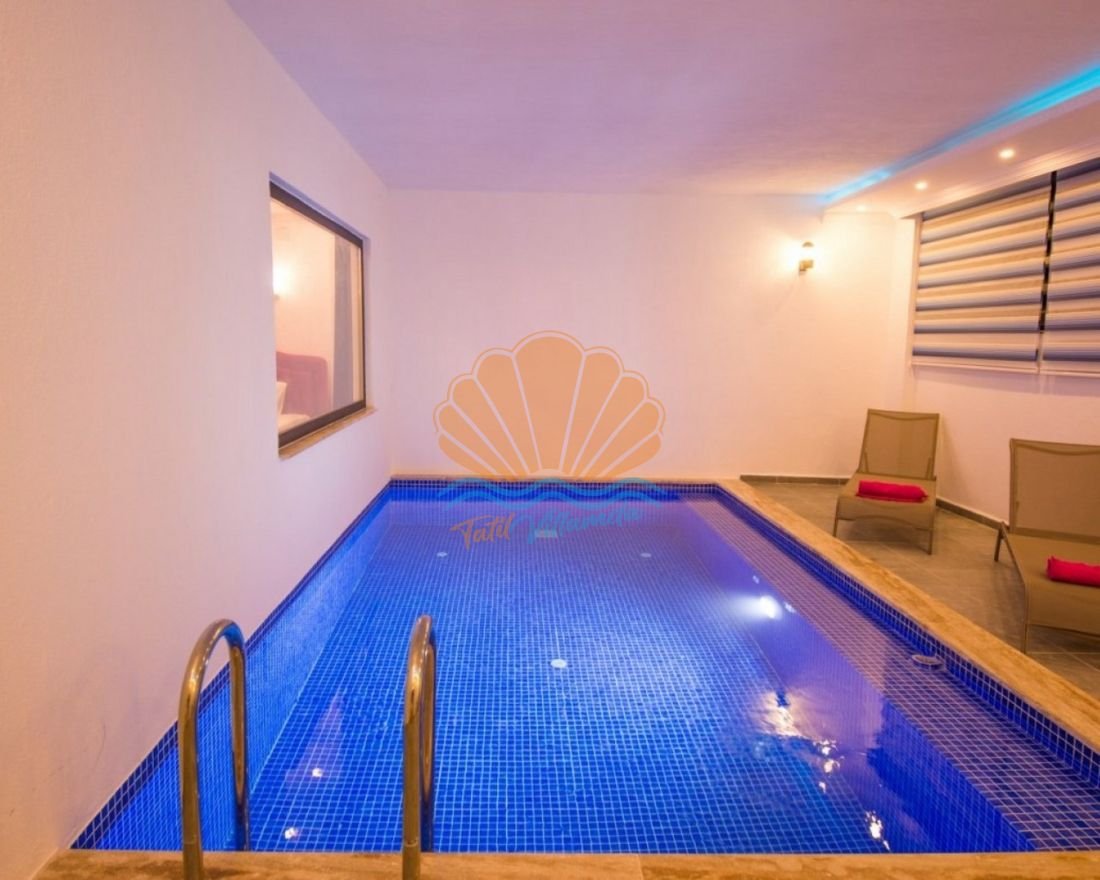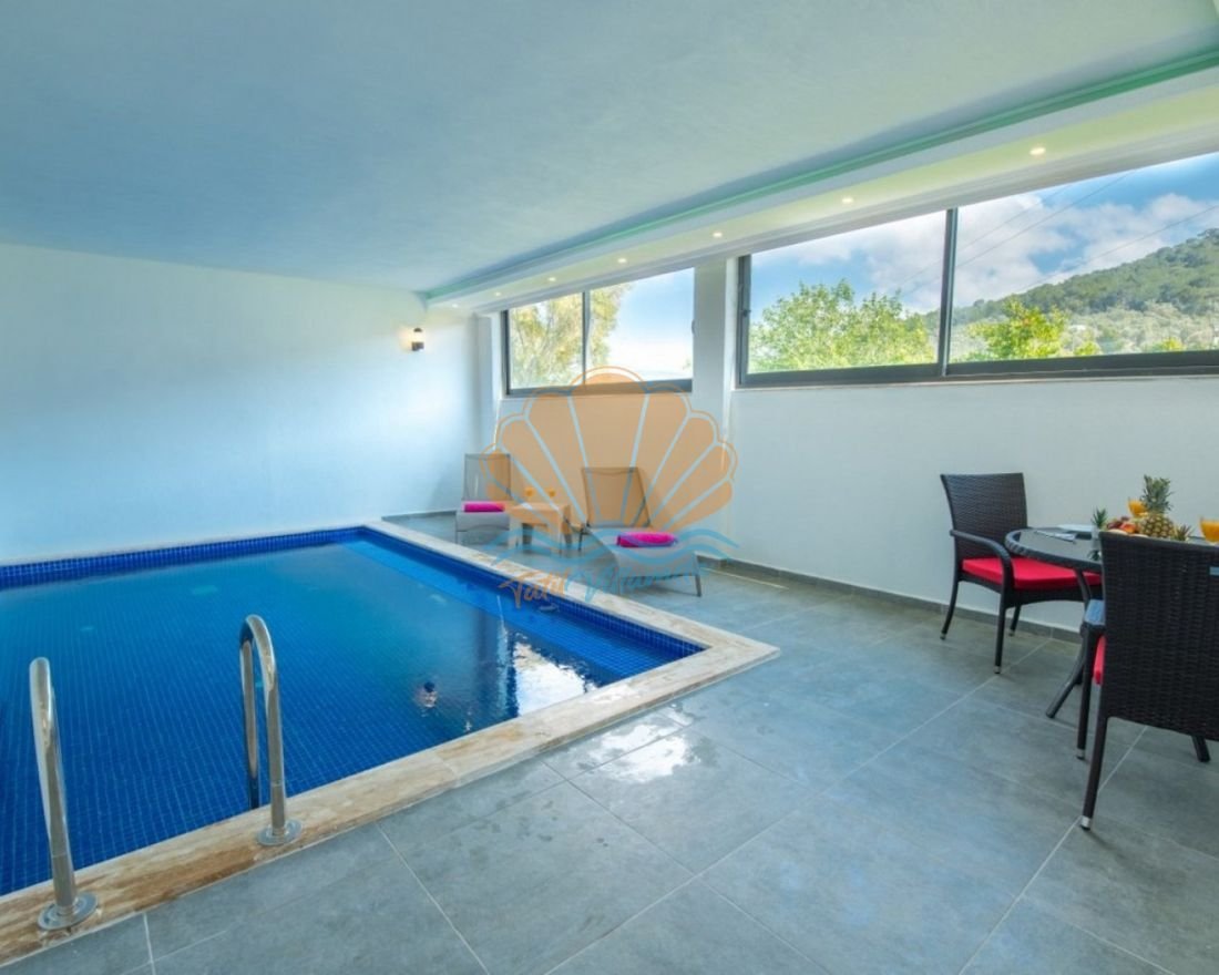 Villanın en dikkat çeken ayrıcalıklarından biri de ısıtmalı iç havuzunun bulunmasıdır. Bu sayede yılın serin dönemlerinde dahi yüzme keyfi devam eder ve villa dört mevsim tatil imkânı sunar. Dış alanda yer alan geniş yüzme havuzu ise korunaklı yapısıyla tamamen size özel bir kullanım sağlar.