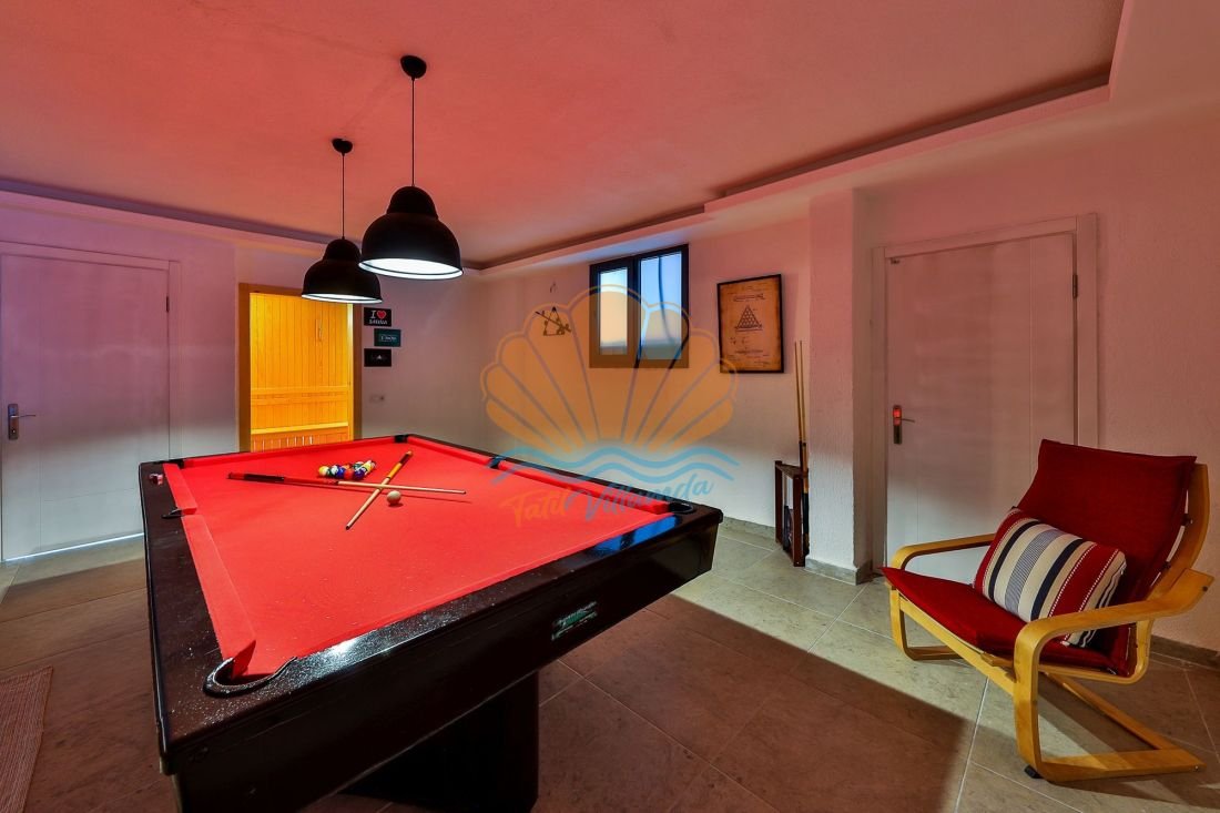 Eğlence olanaklarıyla da öne çıkan villada özel bir sinema odası bulunmaktadır. Sinema odasında langırt ve bilardo masası yer alır. Bu sayede hem yetişkinler hem gençler için keyifli vakit geçirebilecekleri sosyal bir alan oluşturulmuştur.