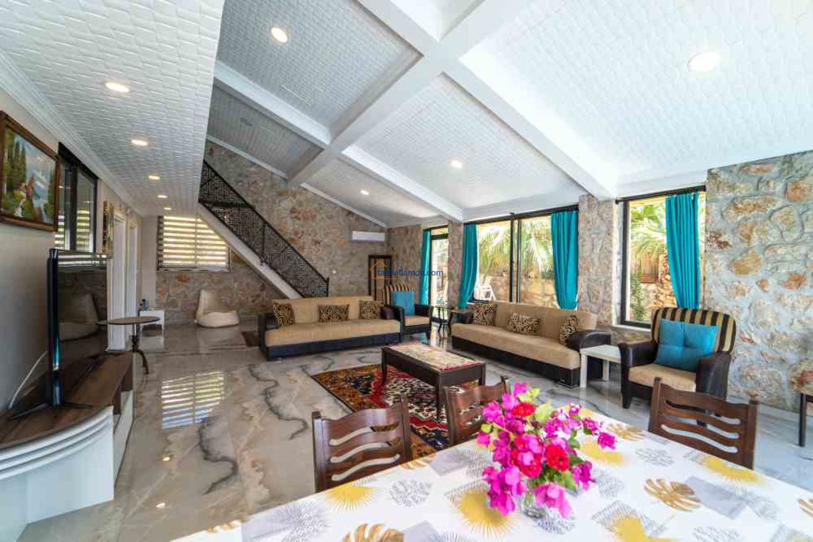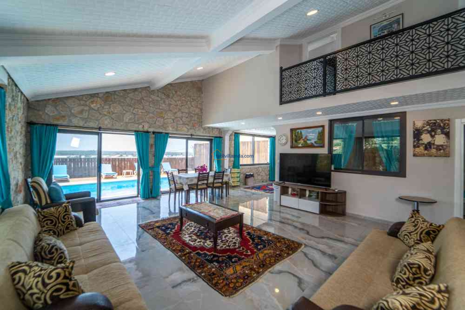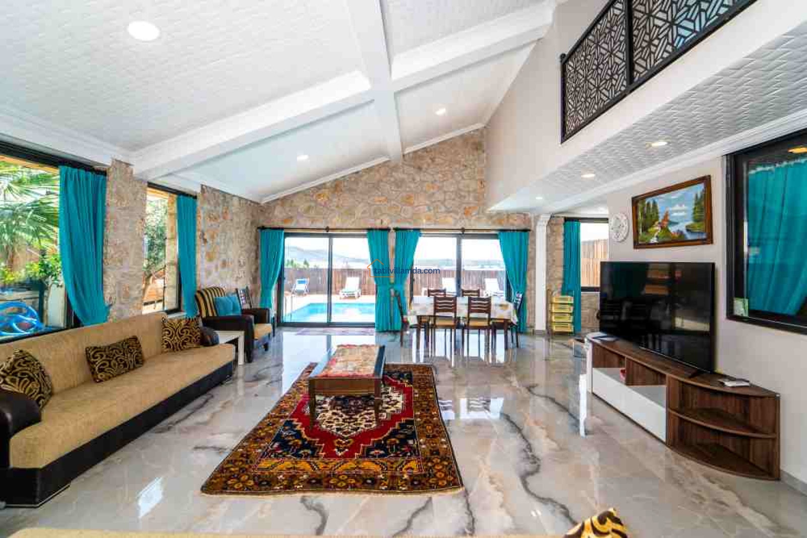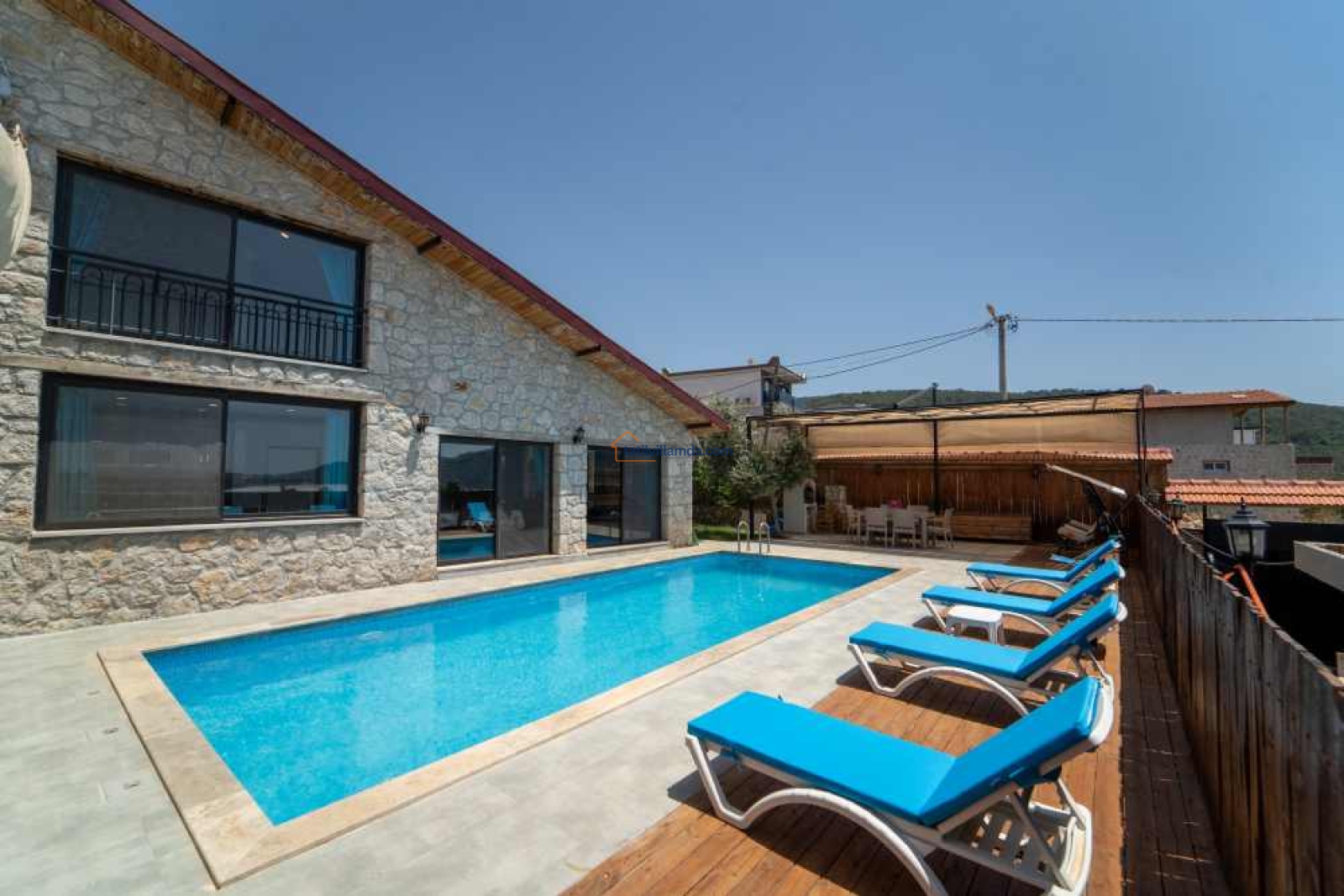 Villa, modern tasarımı ve geniş yaşam alanları ile dikkat çeker. Misafirlerine konforlu bir tatil deneyimi yaşatmak için geniş bir yüzme havuzuna sahip olan bu villada, ailenizle birlikte keyifli vakit geçirebilirsiniz. Ayrıca, Kalkan merkeze sadece 10 dakika uzaklıkta olması, alışveriş ve restoran gibi olanaklara kolay erişim imkanı sağlar.