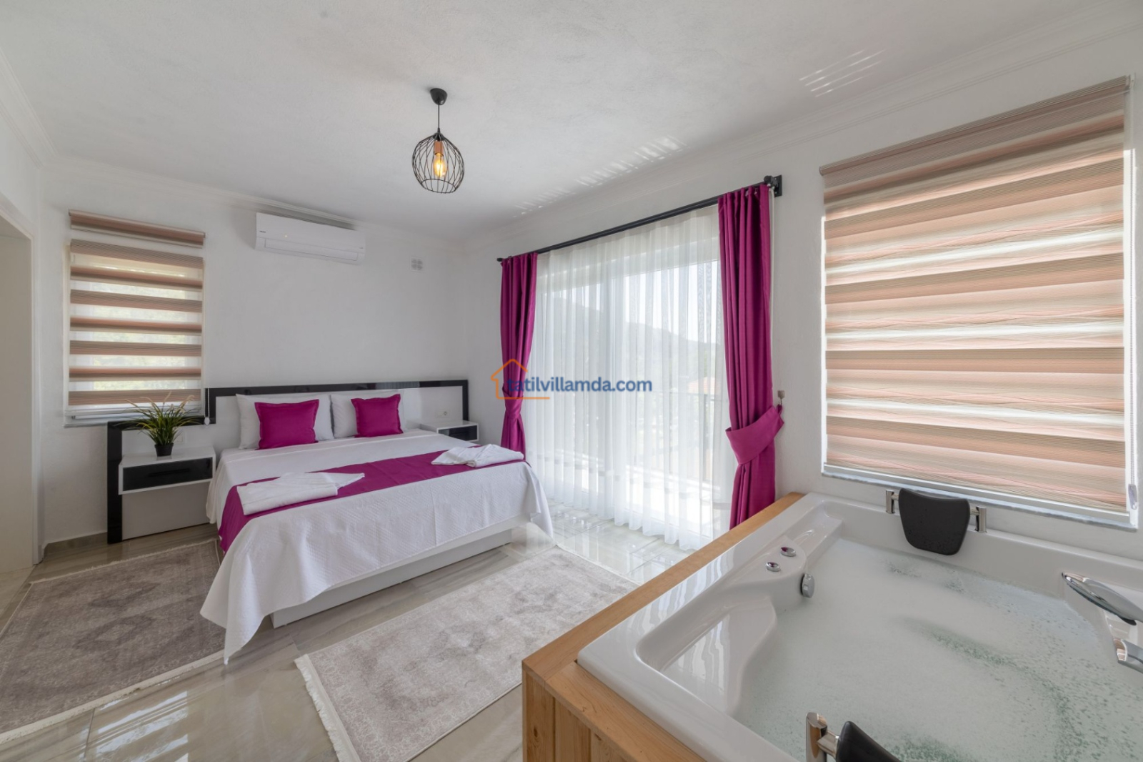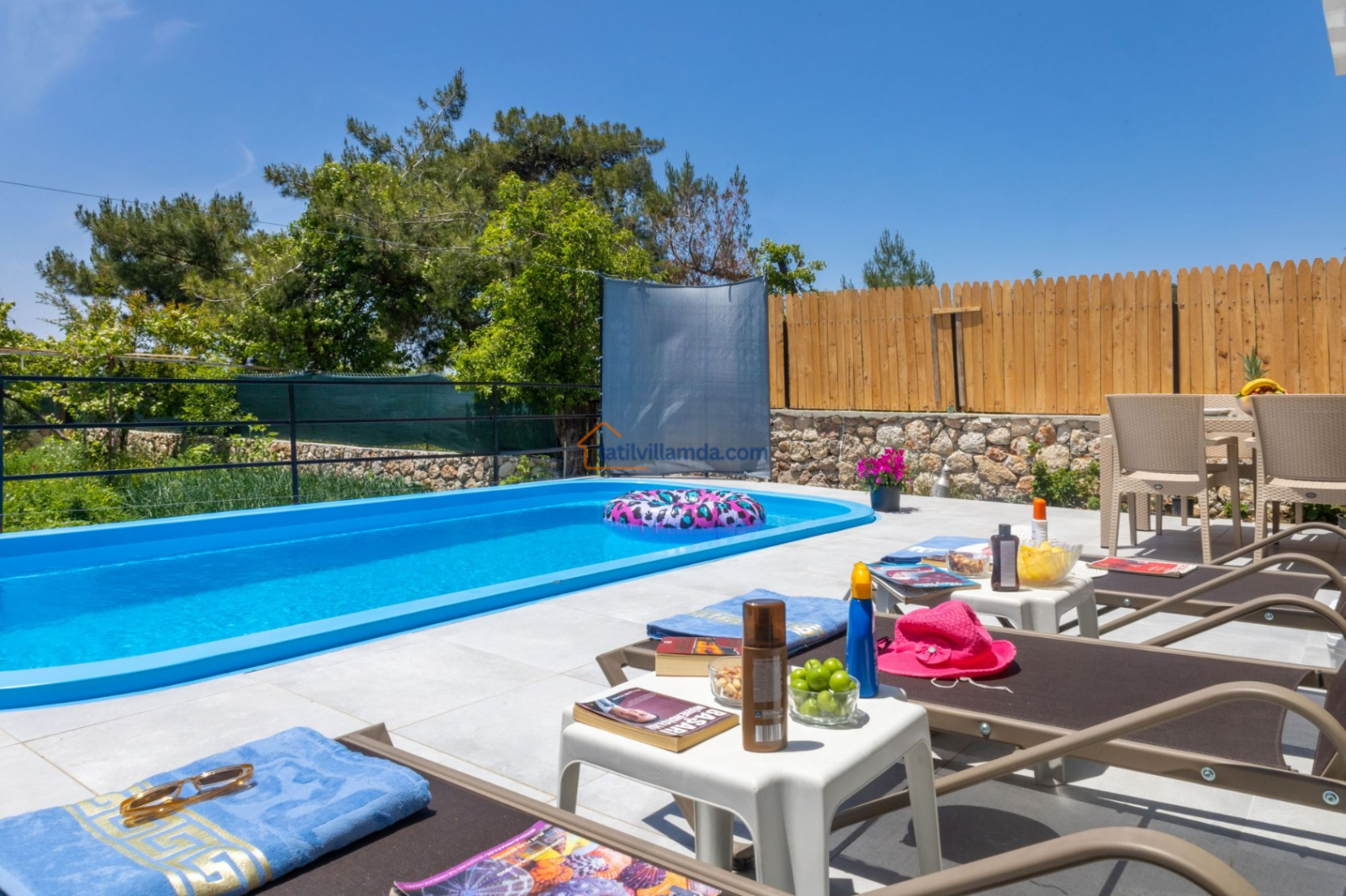 Kalkan’ın huzurlu İslamlar mevkiinde konumlanmış doğayla iç içe, korunaklı havuzlu lüks bir tatil villasıdır. 2 yatak odasıyla 4 kişiye kadar konaklama imkânı sunan villa, özellikle çekirdek aileler ve balayı çiftleri için ideal bir konaklama seçeneğidir. Villanın her odasında ebeveyn banyosu bulunmaktadır, ayrıca yatak odalarından birinde misafirlerin rahatlaması için özel jakuzi yer alır. Geniş ve tamamen korunaklı havuzu sayesinde dışarıdan görünmeyen bir ortam sunar; bu da muhafazakâr aileler için konforlu bir tatil deneyimi sağlar.