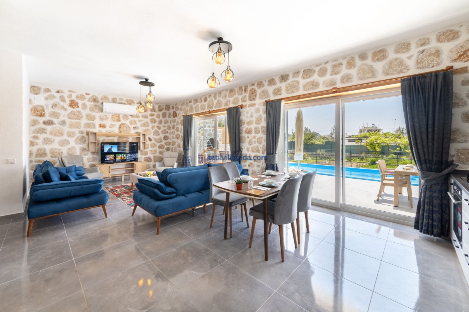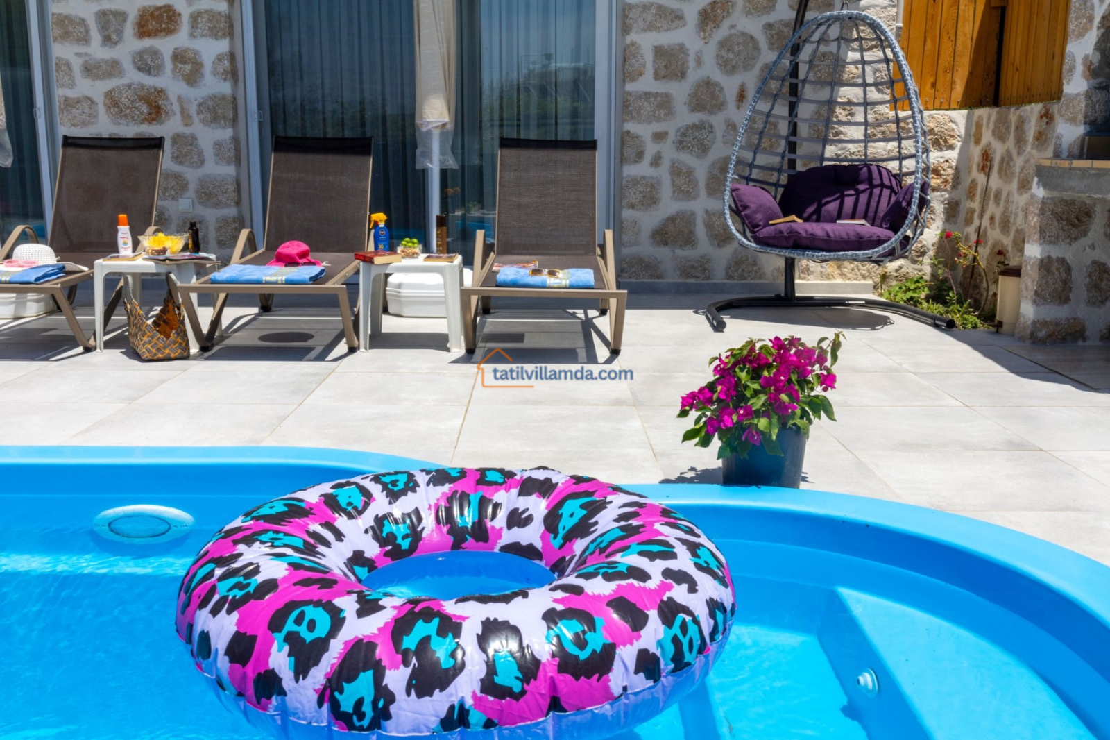 Havuz başında güneşlenme alanı, şezlonglar, masa takımı, salıncak ve barbekü alanı mevcuttur. Gün boyu güneşin tadını çıkarabilir, akşamları sevdiklerinizle keyifli barbekü partileri düzenleyebilirsiniz. Modern ve özenli tasarımıyla dikkat çeken Villa Petek 2, konforlu mobilyaları ve tam donanımlı mutfağıyla evinizin rahatlığını aratmaz. Villanın konumu, şehir merkezine ve plaja yaklaşık 9 km mesafededir; böylece hem sessiz bir doğa ortamında dinlenebilir hem de kısa bir yolculukla Kalkan’ın güzelliklerini keşfedebilirsiniz. Villa Petek 2, sakinlik, konfor ve mahremiyeti bir arada sunan kusursuz bir tatil için mükemmel bir tercihtir.