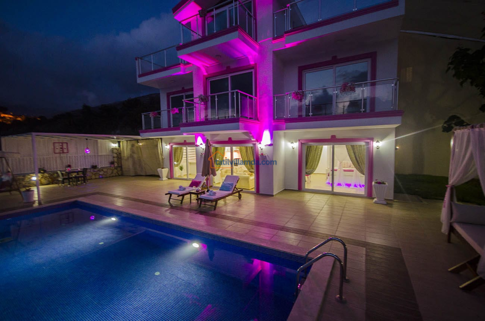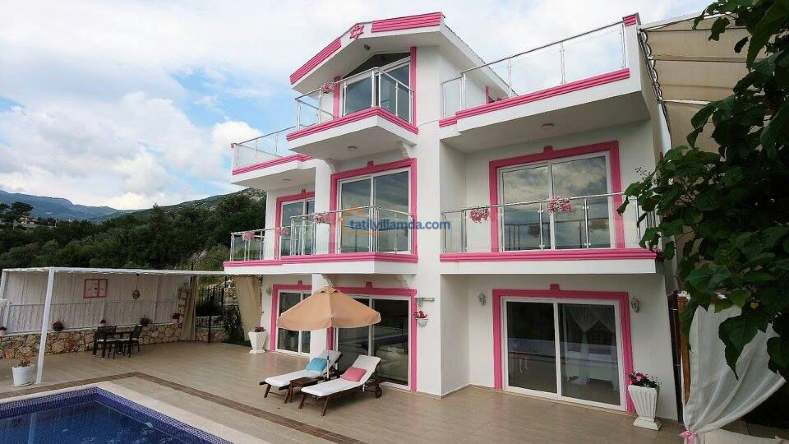 Villa Pinky, Kalkan Akbel mevkiindedir. 4 kişilik olup hem aileler hemde balayi çiftleri için çok özel bir villadır. Terasinda oturma grubu, barbekü, sezlonglar, sinirsiz internet, dinlenme ve keyif yatağı (daybed) bulunur. Havuzu 9*4 uzunlugunda 1.50mt derinliktedir. Teras katında mutfak ve oturma salonu yan odada ilk odasi ve oyun odasi bulunmaktadır. Odada langırt, tavla, isbambil, jenga,okey vs.. oyunlar mevcuttur. Yukari katta ana yatak odasi buyuk lüks suit şeklinde döşenmiştir. İcerisinde maxi boy , neredeyse iç havuz buyuklugunde jakuzisi mevcuttur.