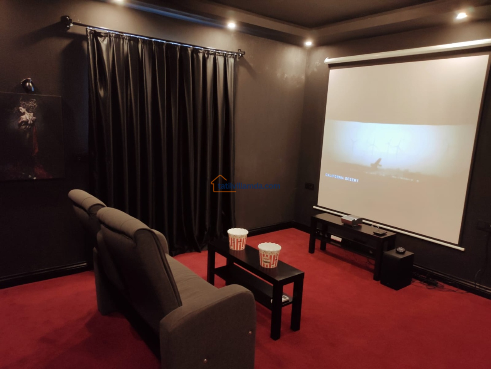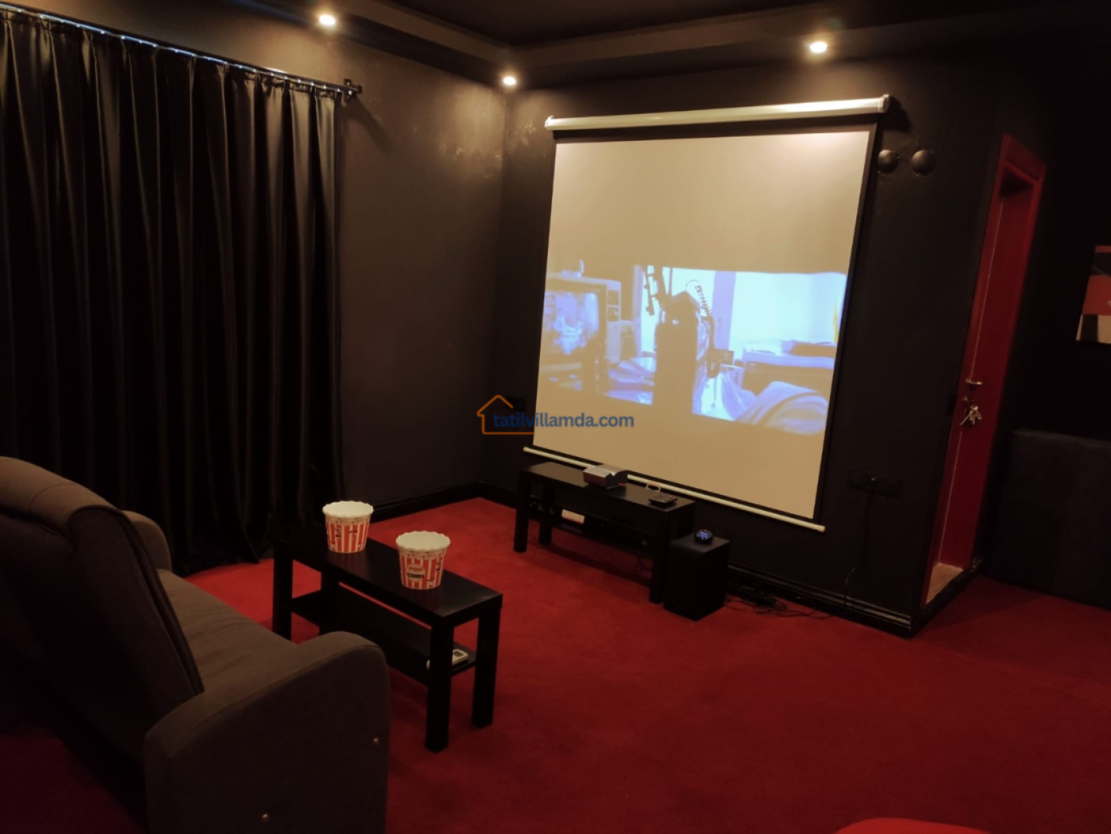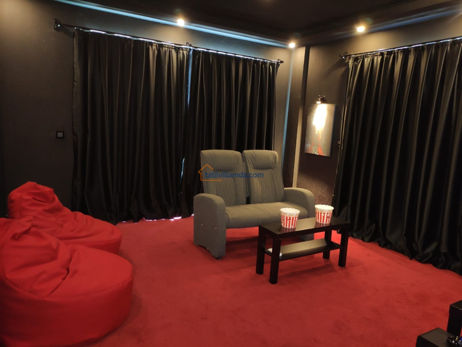 Yan odada sinema salonu vardir. Gercek sinema keyfi için ses sistemi ve lazer yansitici vardır.