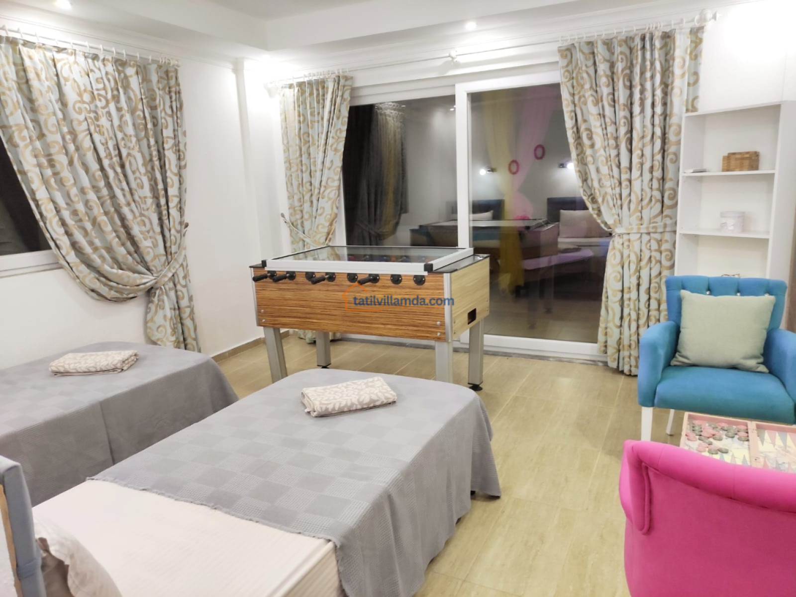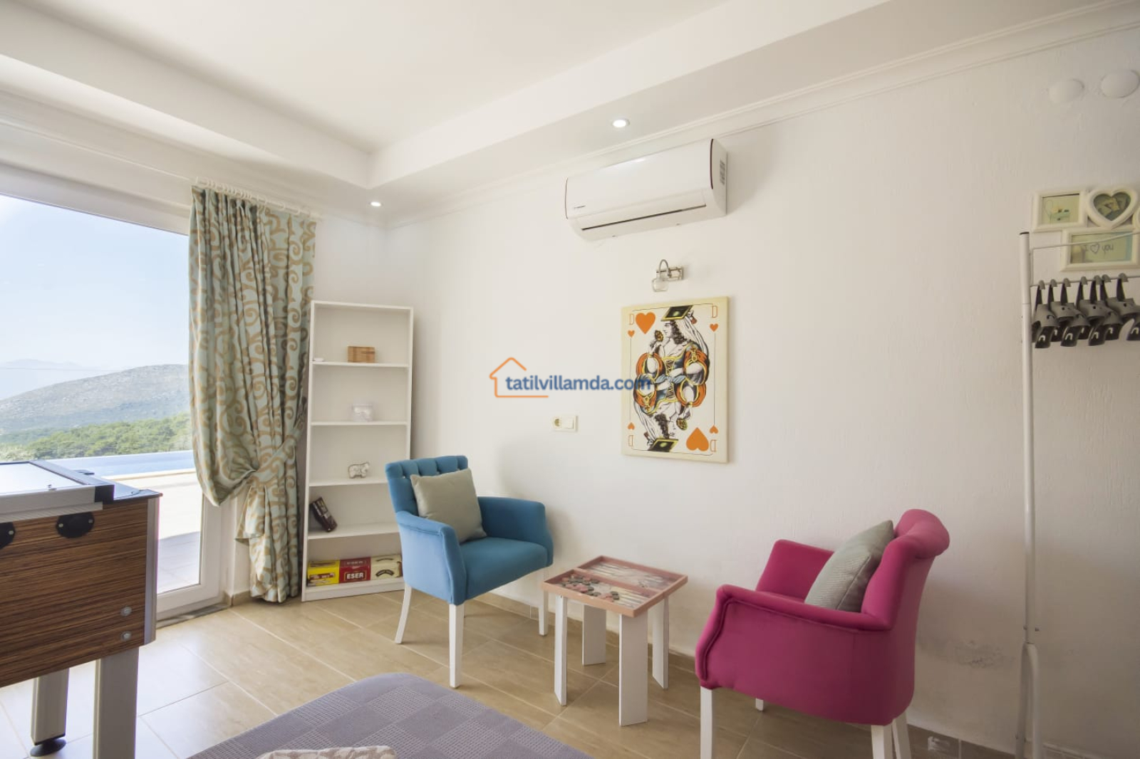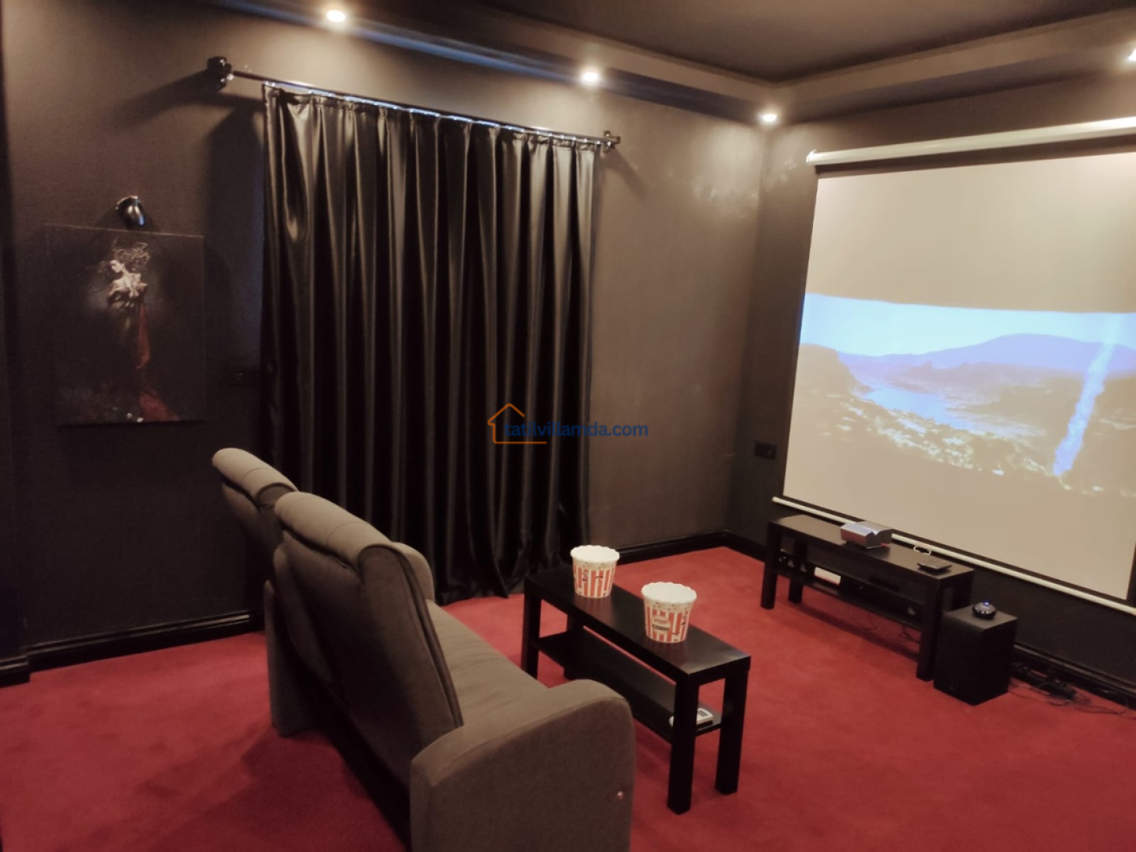 Yan odada sinema salonu vardir. Gercek sinema keyfi için ses sistemi ve lazer yansitici vardır.