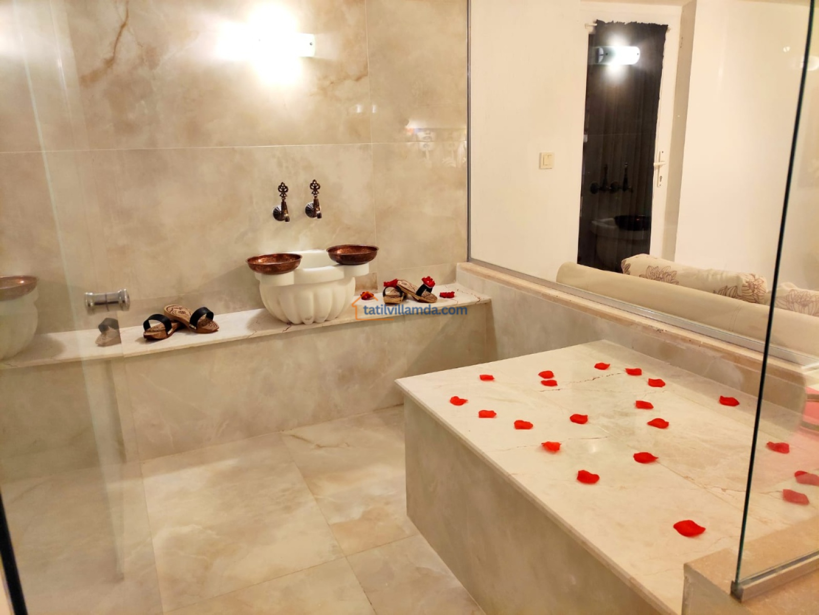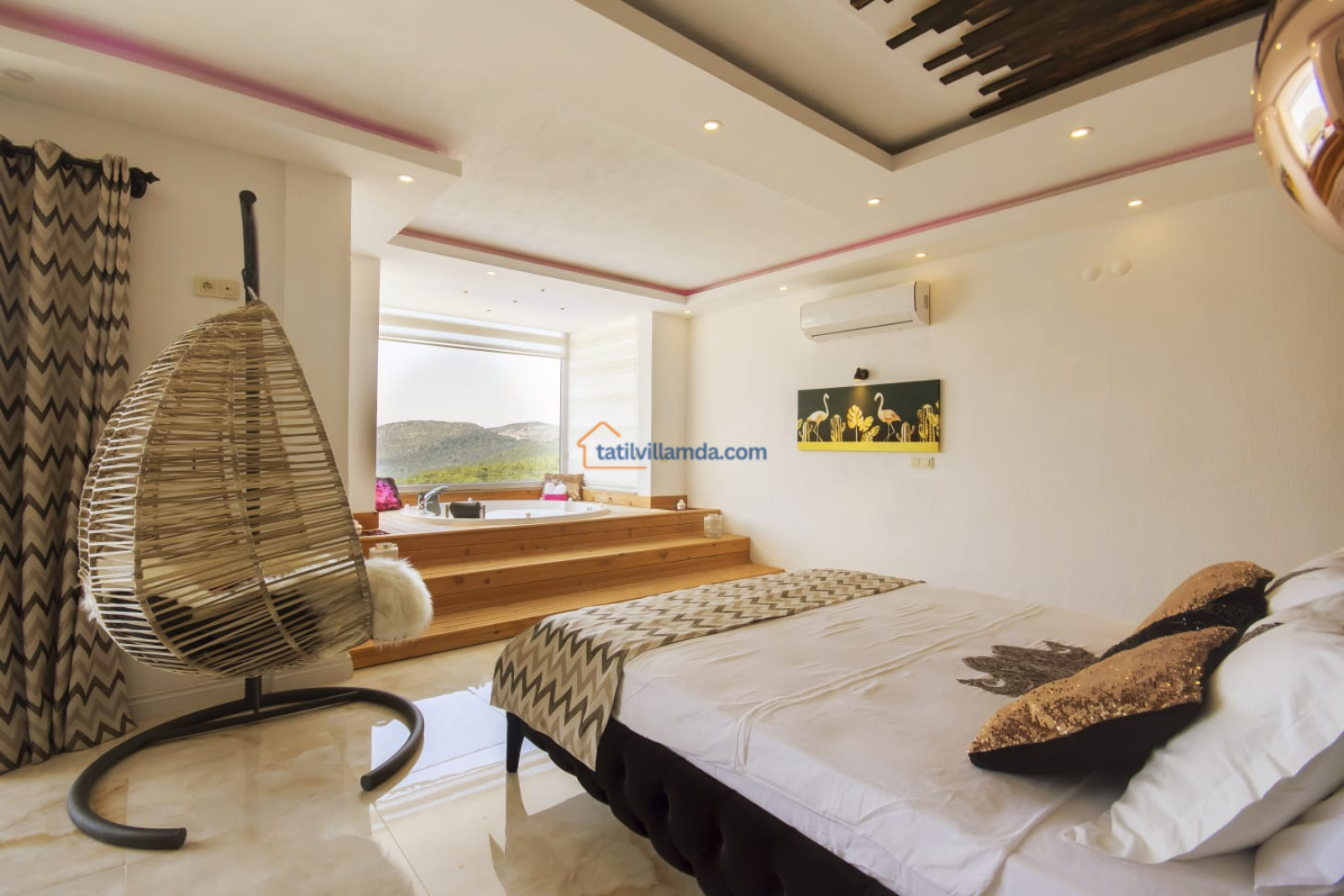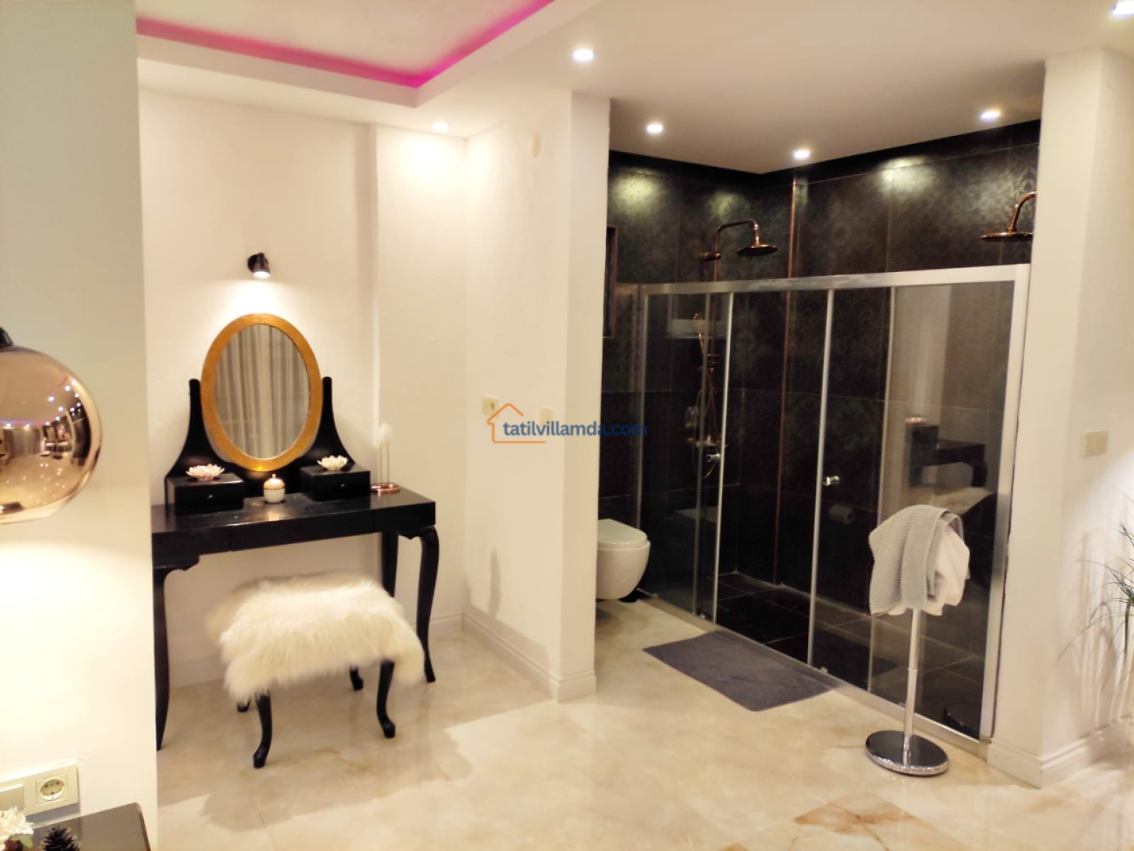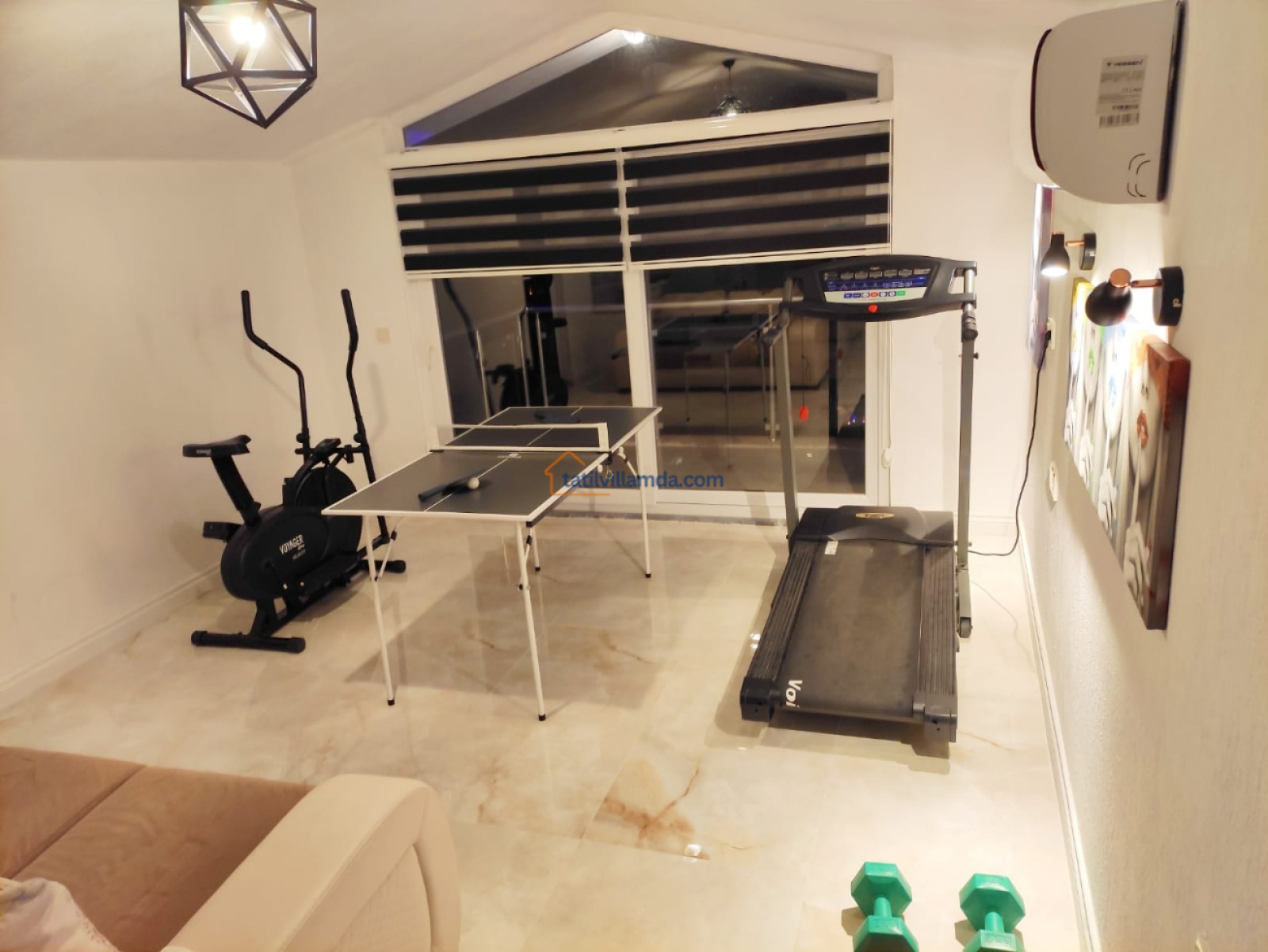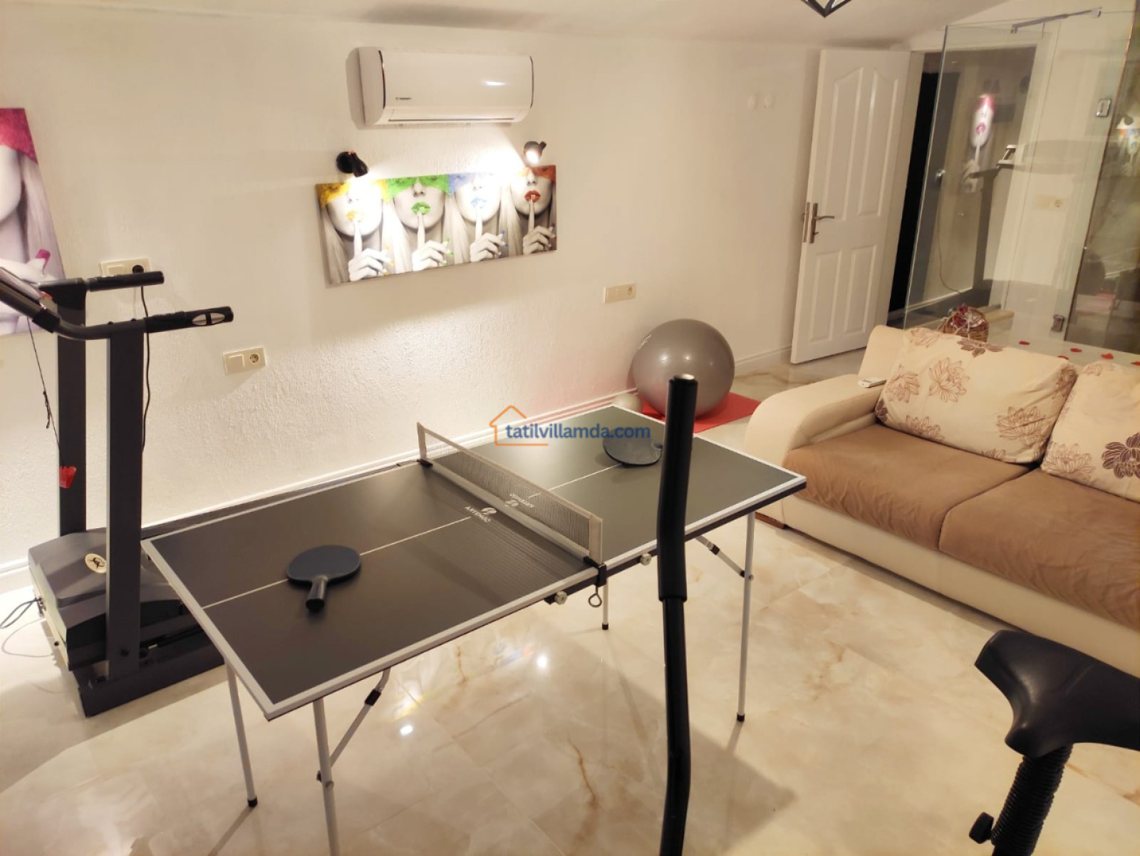 En ust katta, hamam ve fitness icin spor odasi bulunur. Bu villamızda icinden çıkmadan neredeyse bir tatil köyündeki tum aktiviteleri gerceklestirecegi bir konsept sunulmuştur.