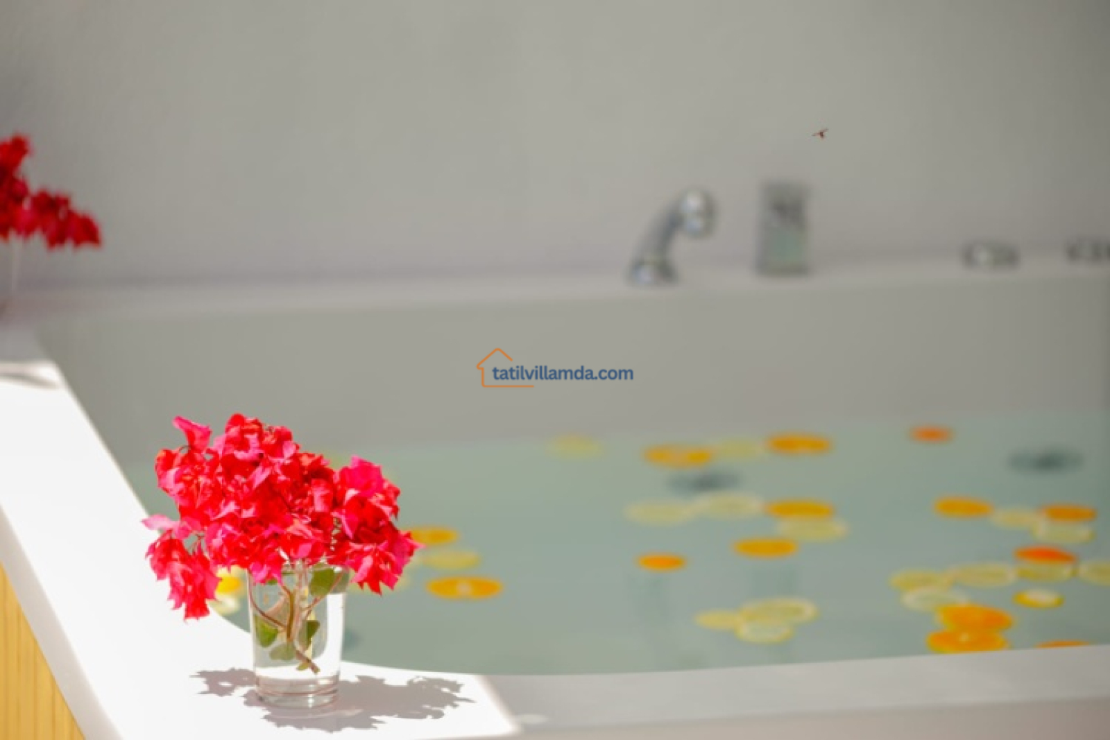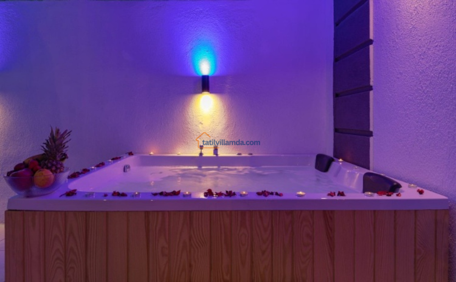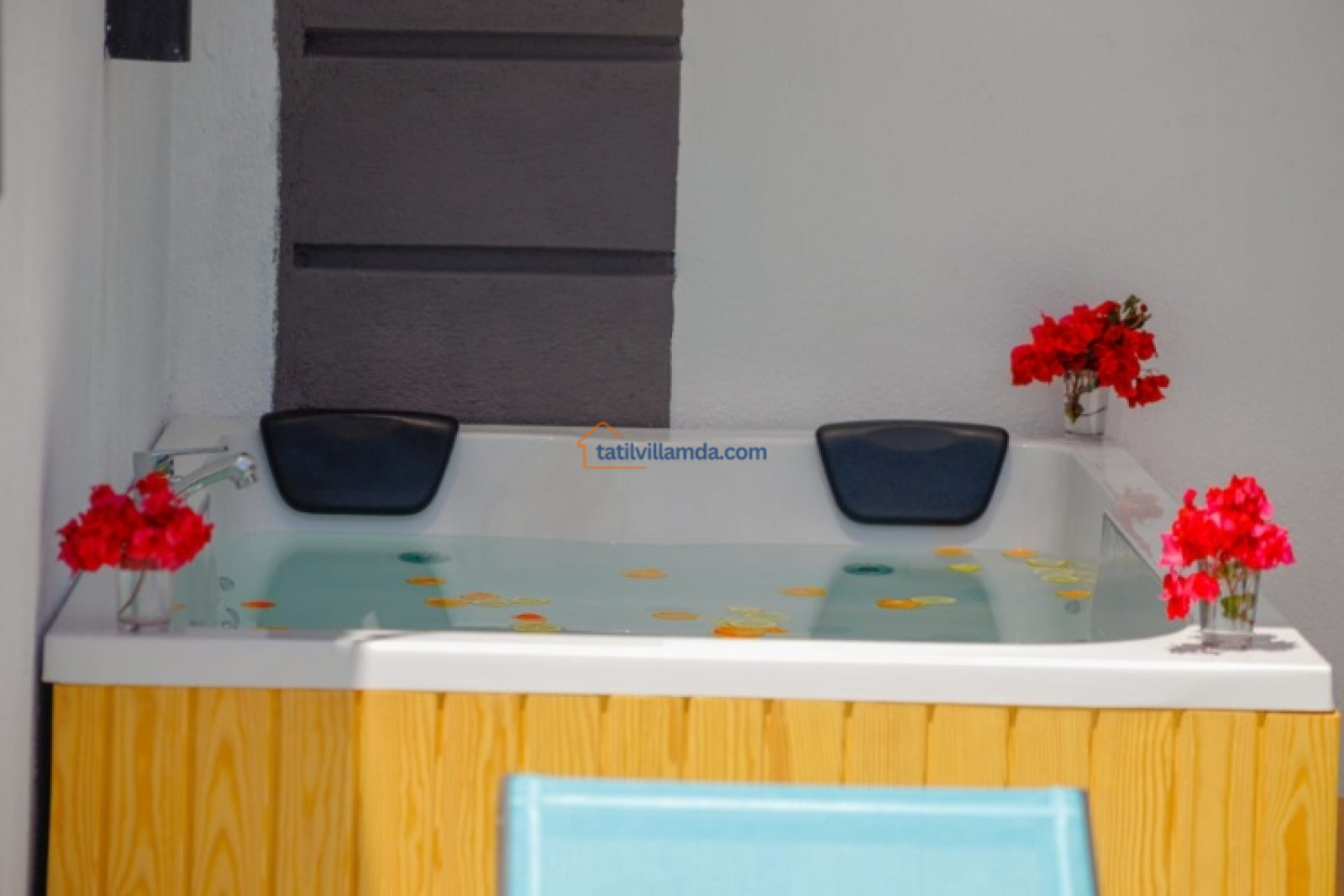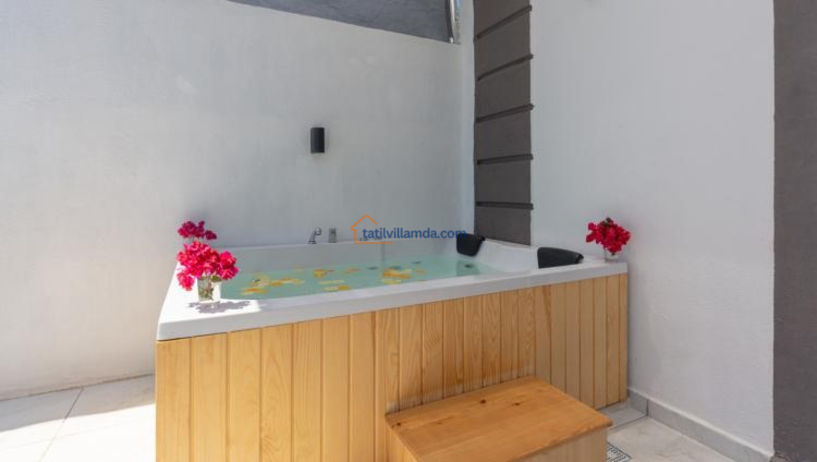 2 yatak odalı bu şık ve konforlu villa, 4 ila 5 kişilik konaklama kapasitesiyle ister ailece, ister arkadaş grubunuzla harika bir tatil için ideal. En güzel kısmı mı? Gözlerden uzak, tamamen size özel bir havuzu ve keyifli bir jakuzisi var. Yani dilediğiniz an serinleyin, dinlenin, rahatlayın.