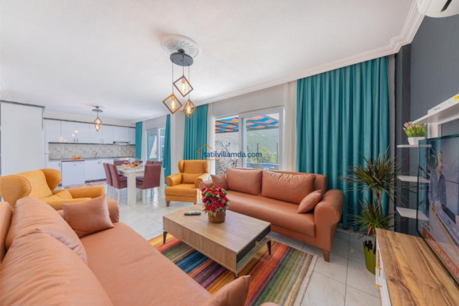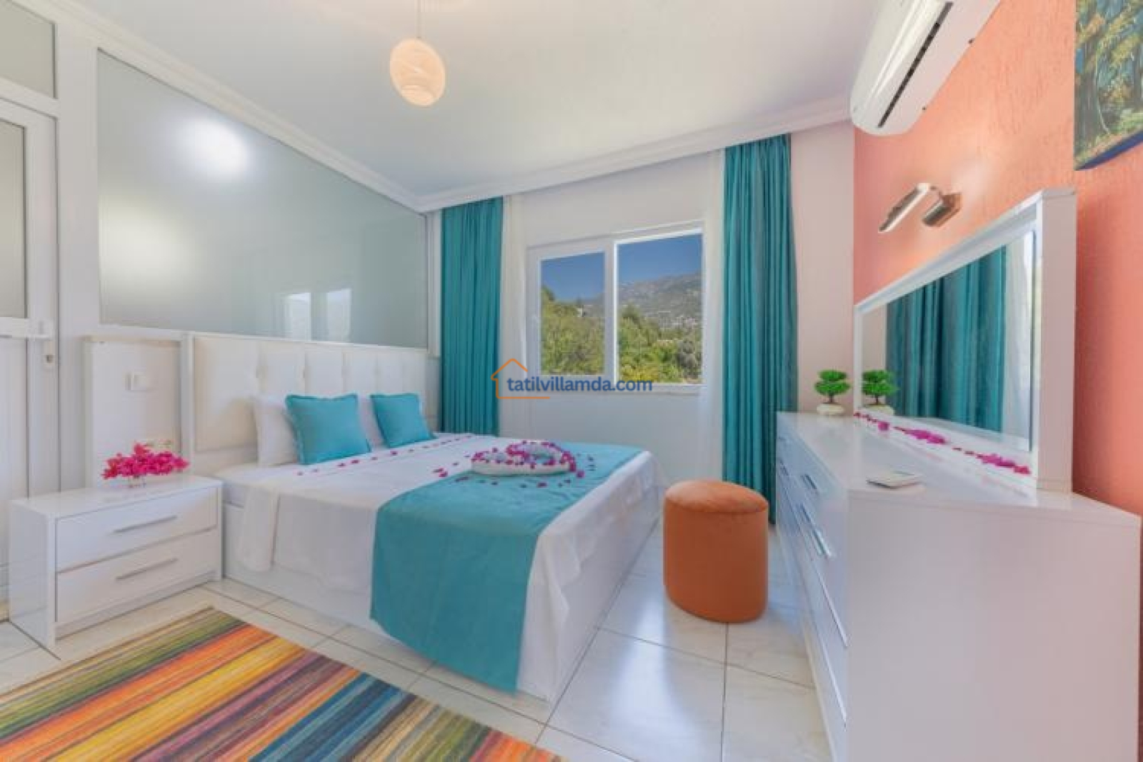 Kalkan merkeze ve plajlara sadece 5 dakikalık mesafede olması sayesinde, hem sakinliği yaşayabilir hem de dilediğiniz an şehir havası alabilirsiniz.