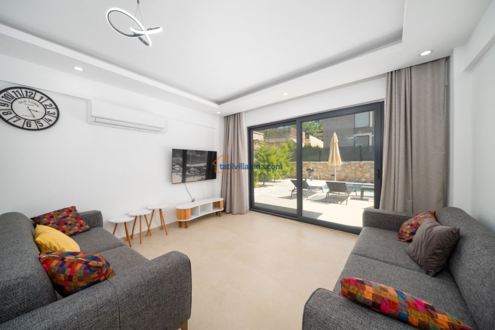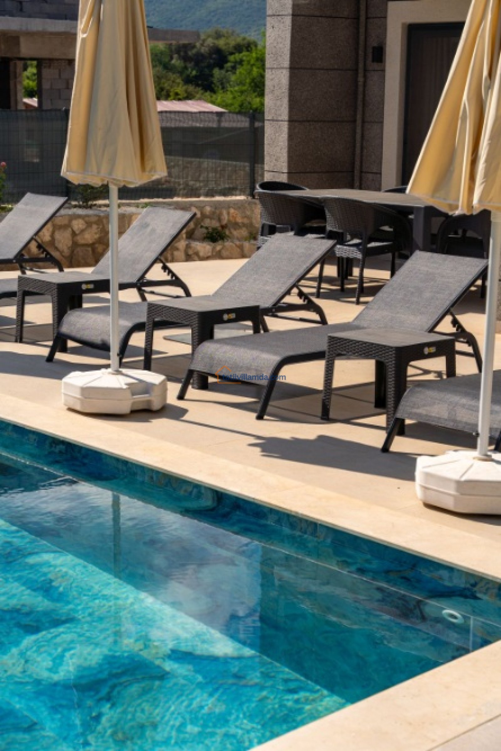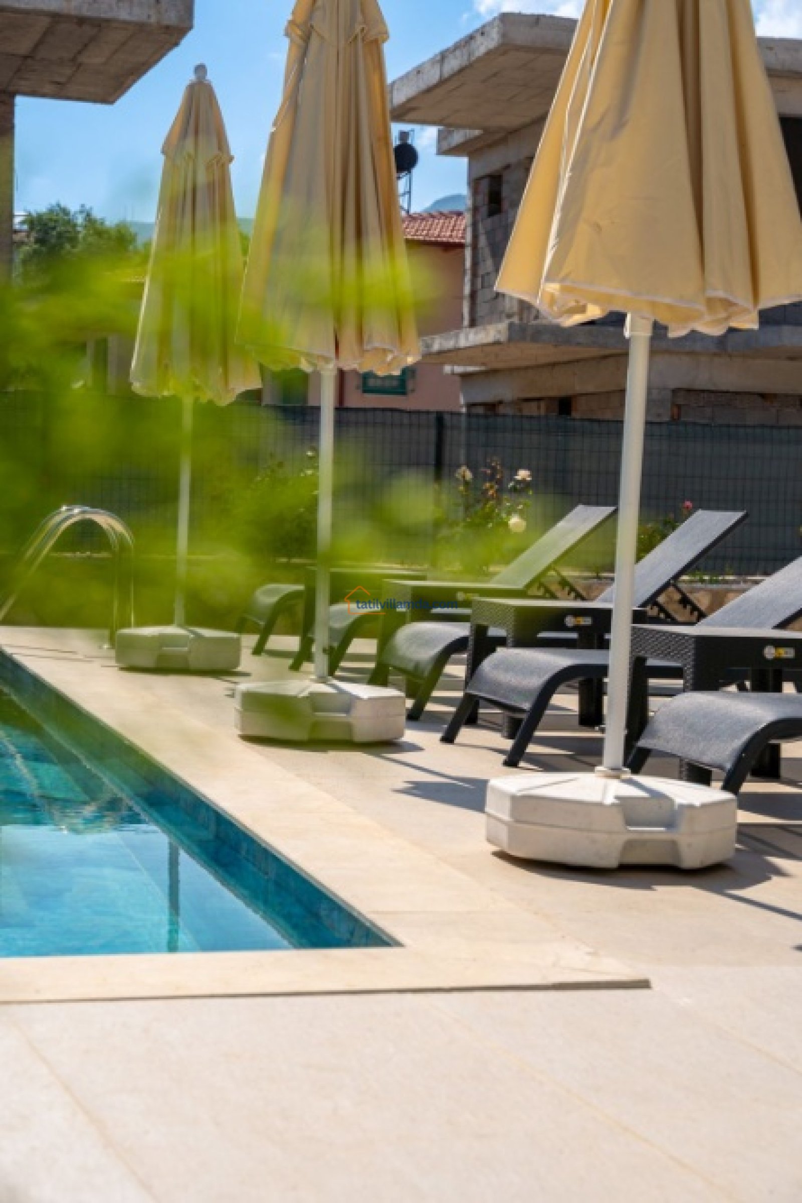 Modern ve kullanışlı bir şekilde döşenen villa, ihtiyacınız olan tüm detayları düşünülerek hazırlanmıştır. Geniş terası ve doğayla bütünleşen bahçesi sayesinde gün batımının keyfini çıkarabilir, Kaş’ın eşsiz manzarasında dinlenebilirsiniz. Sessiz ve sakin bir ortamda, şehir kalabalığından uzakta, sadece sevdiklerinizle vakit geçirebileceğiniz bu villada kendinizi yenilenmiş hissedeceksiniz.