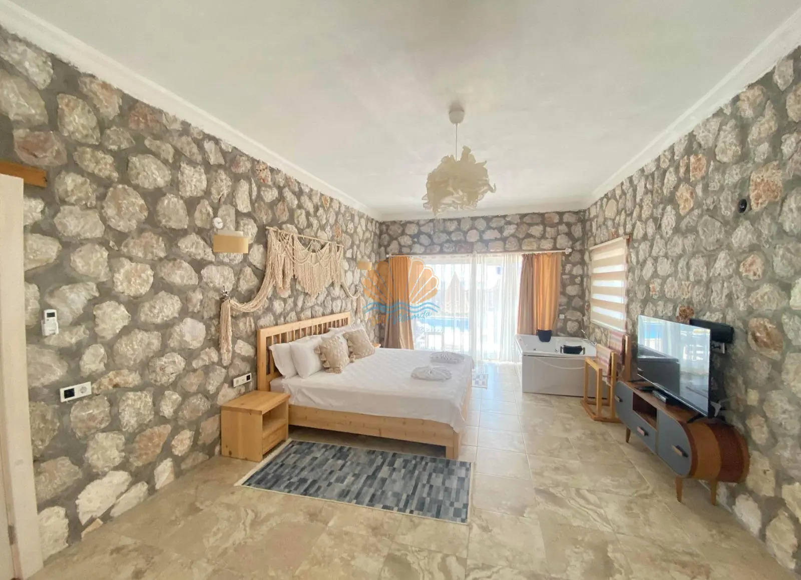 Kalkan’ın huzurlu ve doğayla iç içe bölgesi Çayköy mevkiinde konumlanan, balayı çiftleri için özel olarak tasarlanmış şık ve romantik bir villadır. Tek yatak odasına sahip olan villa, 2 kişilik konaklama kapasitesiyle mahremiyet ve konforu bir arada sunar. Taş mimarisi sayesinde hem estetik bir görünüme sahip hem de yaz aylarında serin bir ortam sağlar.