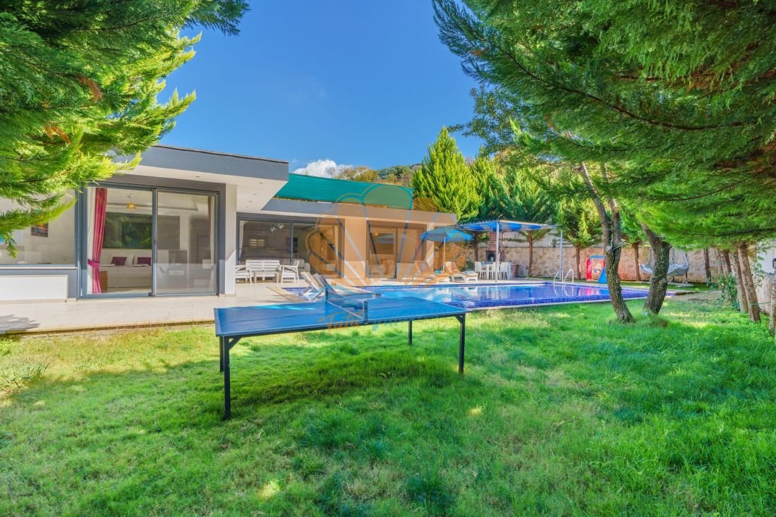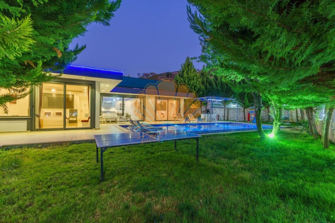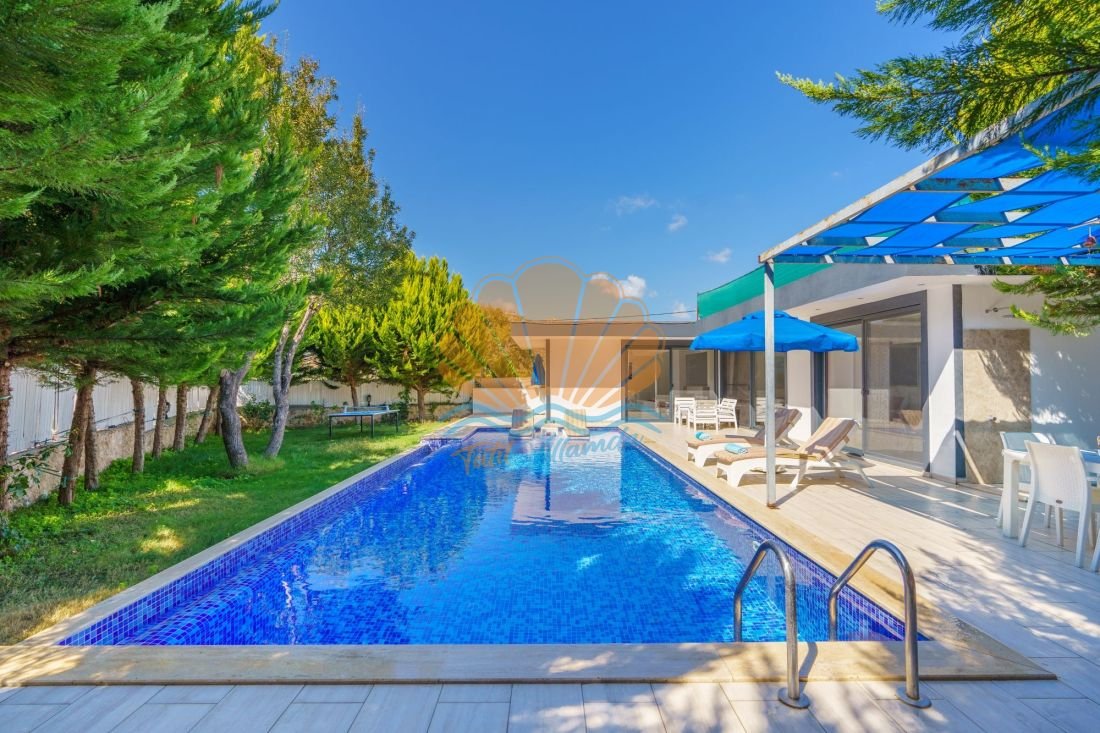 Geniş havuz terası tatil keyfinizi dış mekâna taşır. Havuz başında şezlong, şemsiye ve bahçe oturma grubu yer alırken; salıncak alanı dinlenmek isteyen misafirler için hoş bir köşe sunar. Barbekü alanı ve masa takımı sayesinde akşam yemeklerinizi açık havada, keyifli sofralar eşliğinde değerlendirebilirsiniz. Ayrıca masa tenisi ile eğlenceli vakit geçirebilir, mini çocuk oyun parkı sayesinde küçük misafirlerinizin de güvenle eğlenmesini sağlayabilirsiniz.