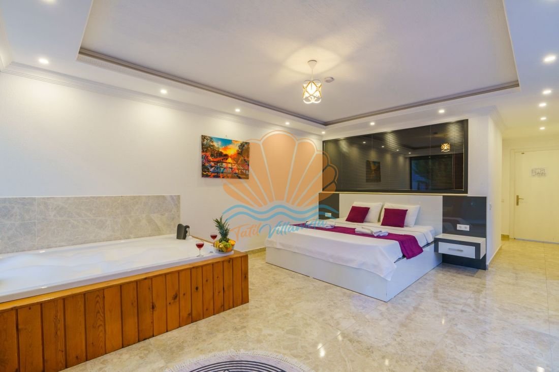 Villa Saha, 2 yatak odası ile toplam 4 kişilik konaklama kapasitesine sahiptir. Modern ve kullanışlı şekilde tasarlanan odalar, konforlu yatakları ve ferah yapısıyla tatiliniz boyunca rahat etmenizi sağlar. Villada bulunan jakuzi, günün yorgunluğunu atmanız ve tatilinize ekstra keyif katmanız için özel olarak düşünülmüştür. Salon ve mutfak bölümü açık planlı olup ihtiyaç duyacağınız temel ekipmanlarla donatılmıştır.