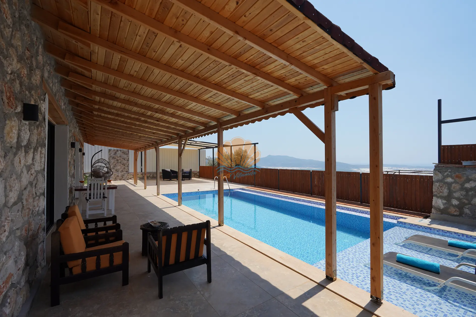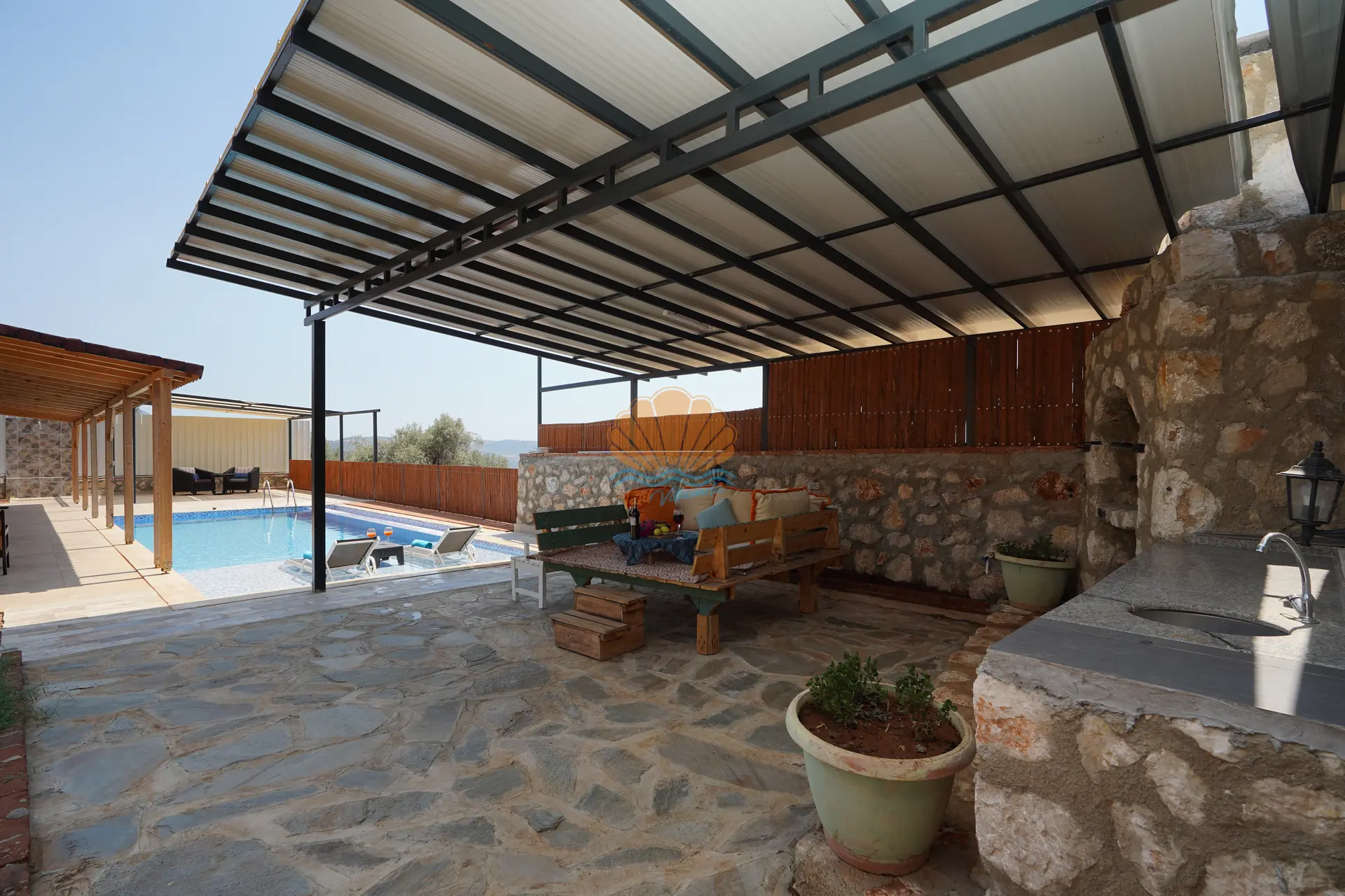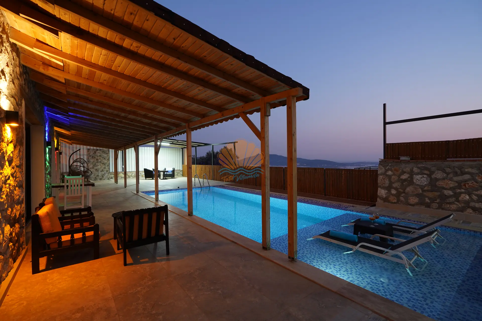 Villanın geniş ve korunaklı özel havuzu, dışarıdan görünmeyecek şekilde tasarlanmıştır. Bu sayede gözlerden uzak, özgürce yüzme ve güneşlenme imkânı sunar. Havuz başında yer alan şezlonglar, gün boyu güneşin tadını çıkarmanıza olanak tanırken; çardak, salıncak ve oturma köşesi ise sevdiklerinizle keyifli vakit geçirebileceğiniz alanlar sunar. Ayrıca barbekü alanı sayesinde akşam yemeklerinizi açık havada, doğa eşliğinde hazırlayabilirsiniz.