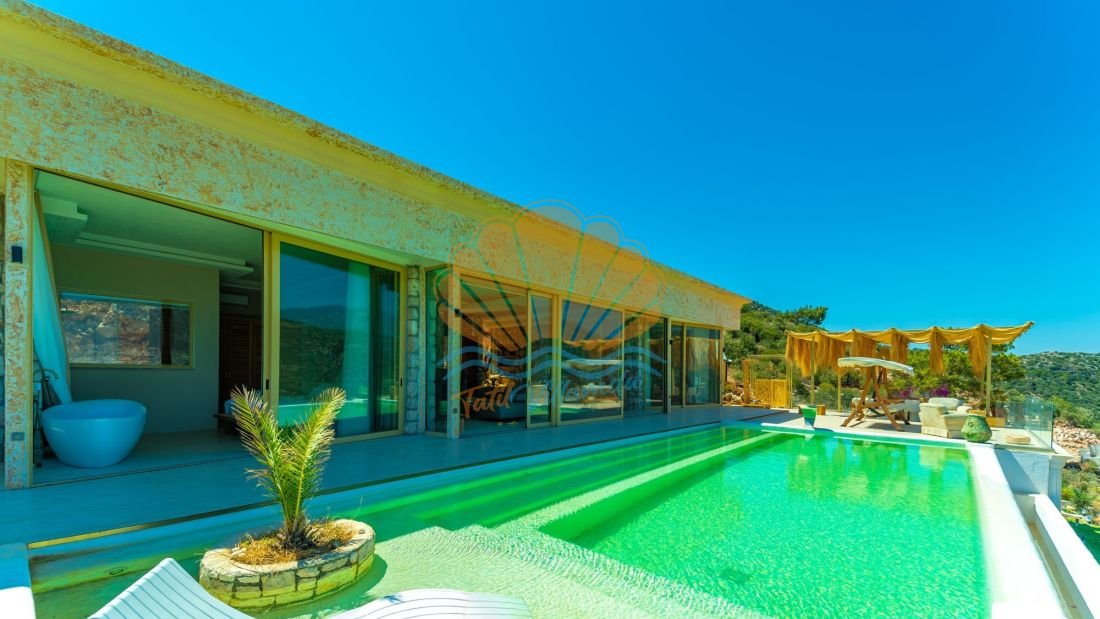 Dış alanda Akdeniz modeli beyaz geniş özel havuz yer alır. Havuz terası, manzaraya karşı yüzme ve güneşlenme keyfi sunacak şekilde konumlandırılmıştır. Doğayla iç içe bu alanda dinlenme köşeleri ve oturma alanları bulunur. Sessizlik, temiz hava ve panoramik manzara villanın en güçlü özelliklerindendir.